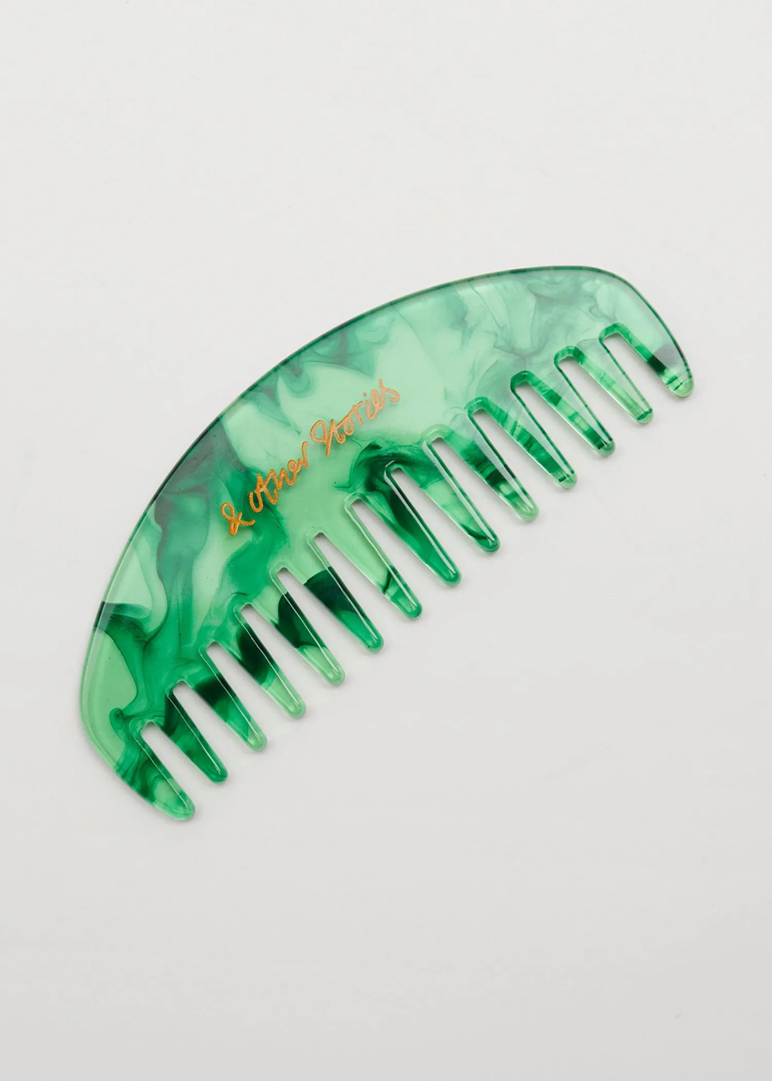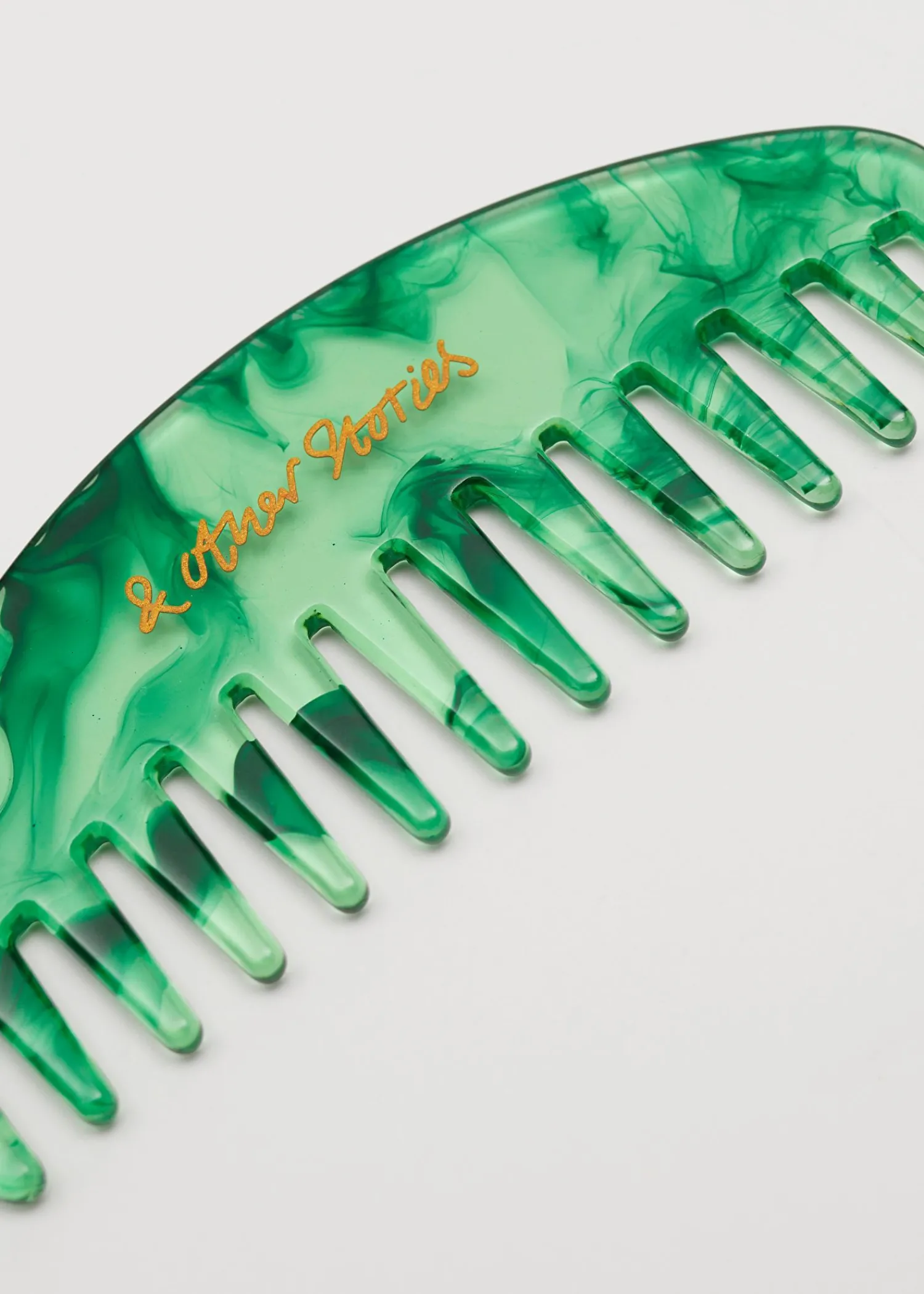 Dekorativ Hårkam I Acetat Med En Marmoreret Finish Og Et Gyldent Logo. Længde: 12 Cm / 4,7″
