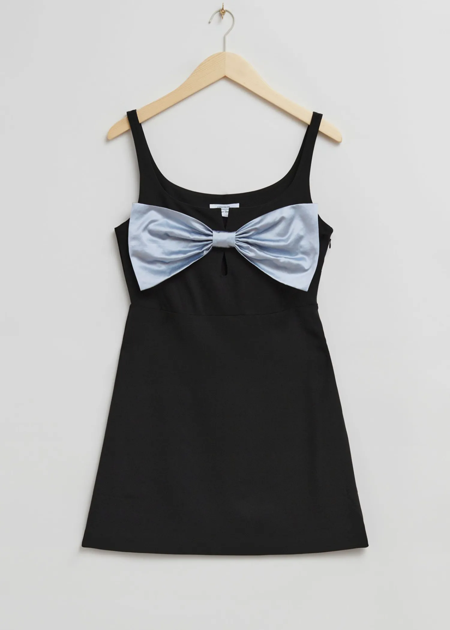 Stor Sløjfedetaljeret Minikjole Lavet Af En Blanding Af Materialer. Denne Minikjole Med Stropper Har En Legende Stor Sløjfeudsmykning På Det Monterede Toppanel I Midten, Som Fremhæves Af En Kontrastfarve. Formet Med En Central V-Udskæring, Rund Halsudskæring Og Nederdel Med Udsving Forneden. Kjolens Længde: 67 Cm / 26,4″ (Eu 36 / Uk 8 / Us 4)