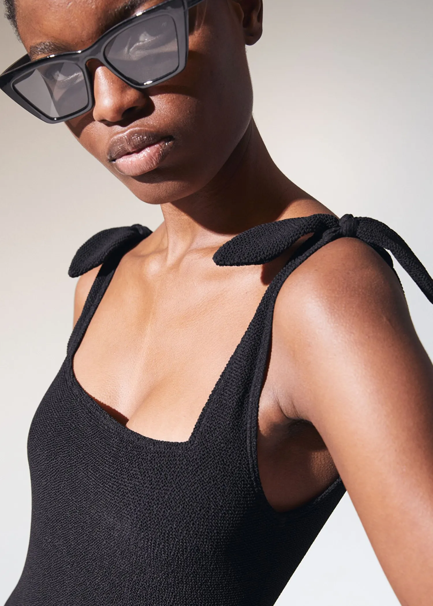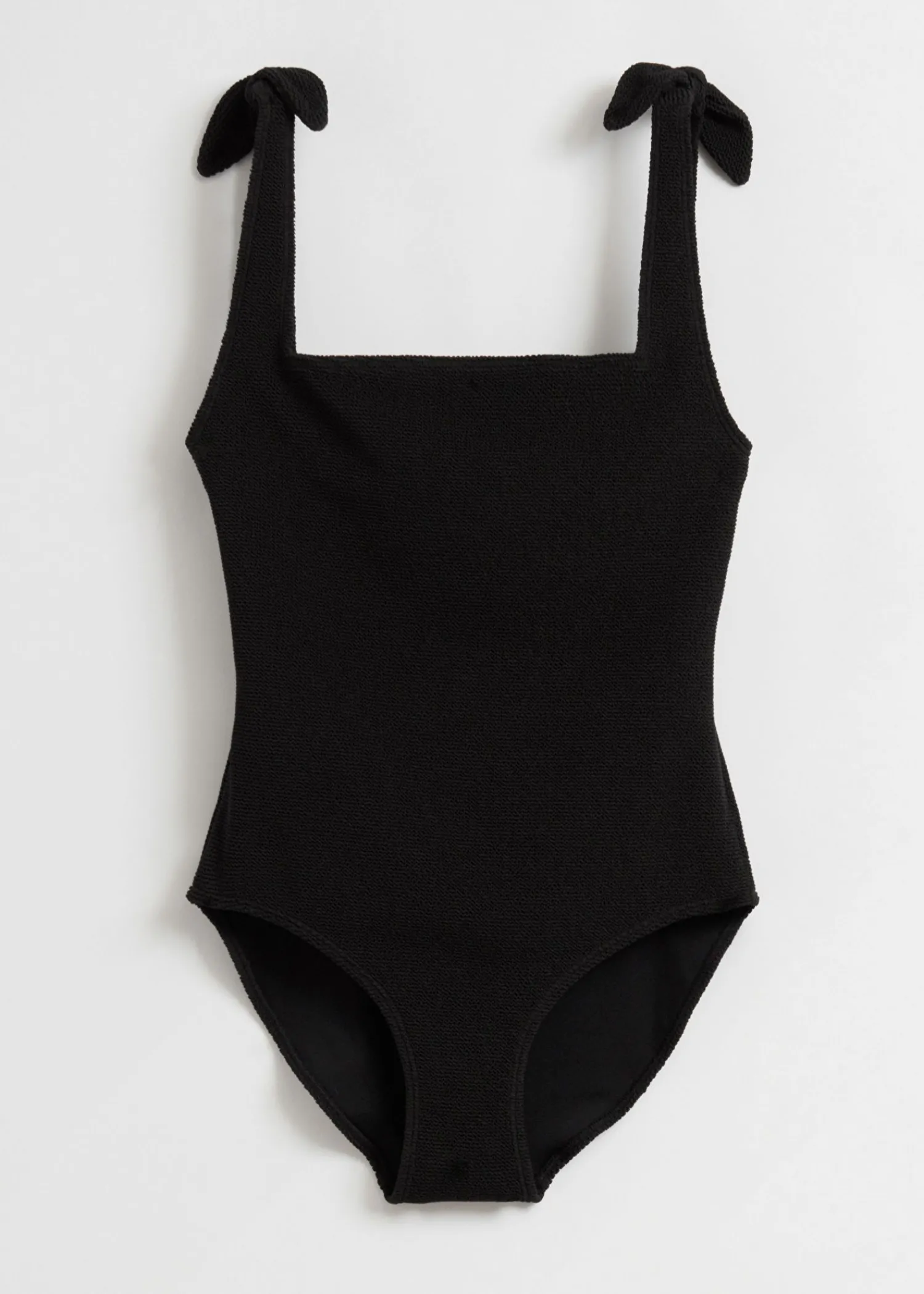 Tekstureret Badedragt I Ét Stykke Med Dekorative Sløjfebånd Ved Skuldrene Og En Firkantet Halsudskæring. Længde På Forhøjning: 54,5 Cm / 21” (Størrelse 36)