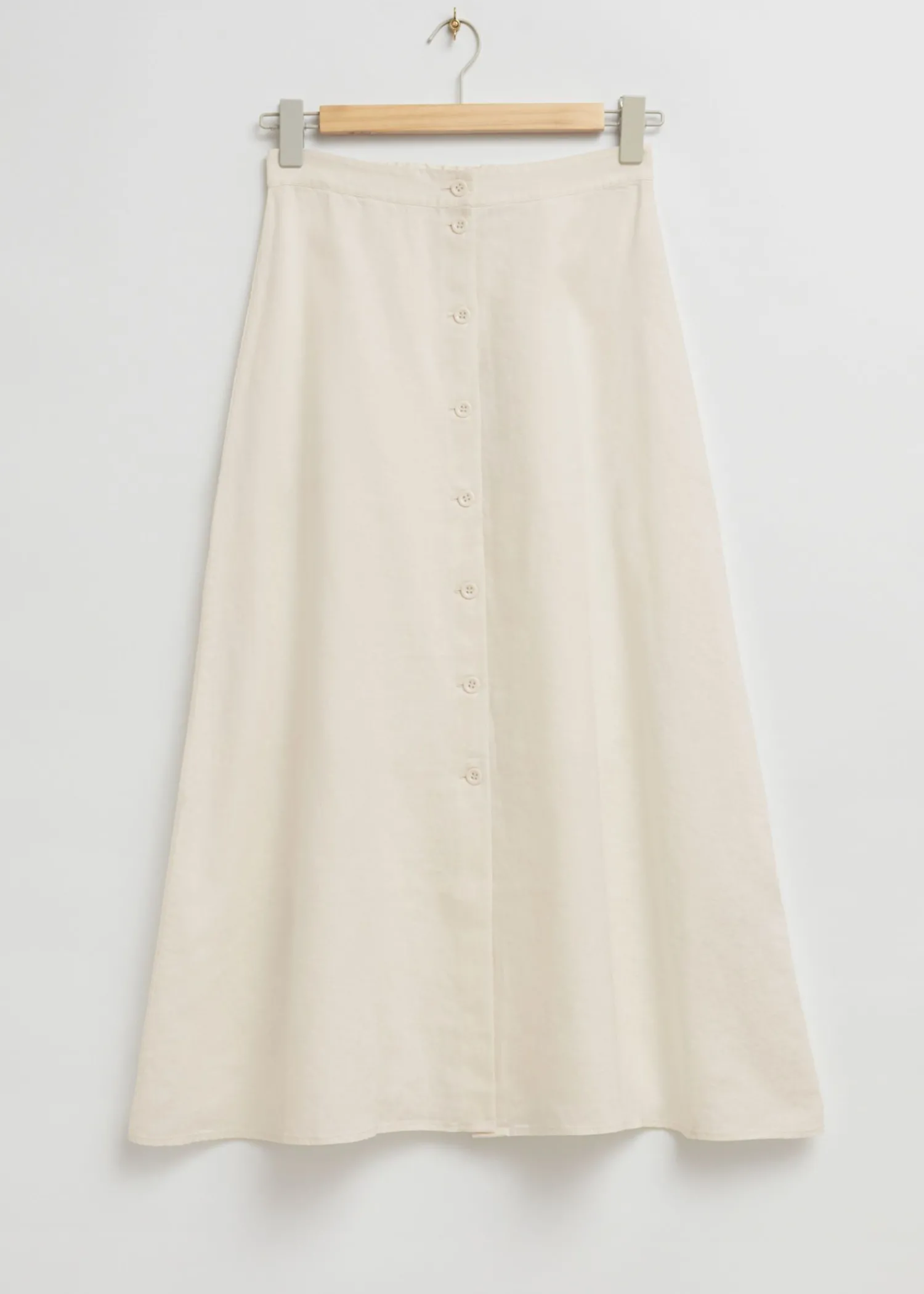 A-Line Midi-Nederdel Med Knapper Lavet Af Vævet Hør Med En Knappet Stolpe Foran Og Høj Elastisk Talje, Skåret I En Midi-Længde, A-Line Silhuet. Længde På Nederdel: 85 Cm / 33,5″ (Eu 36 / Uk 8 / Us 4)