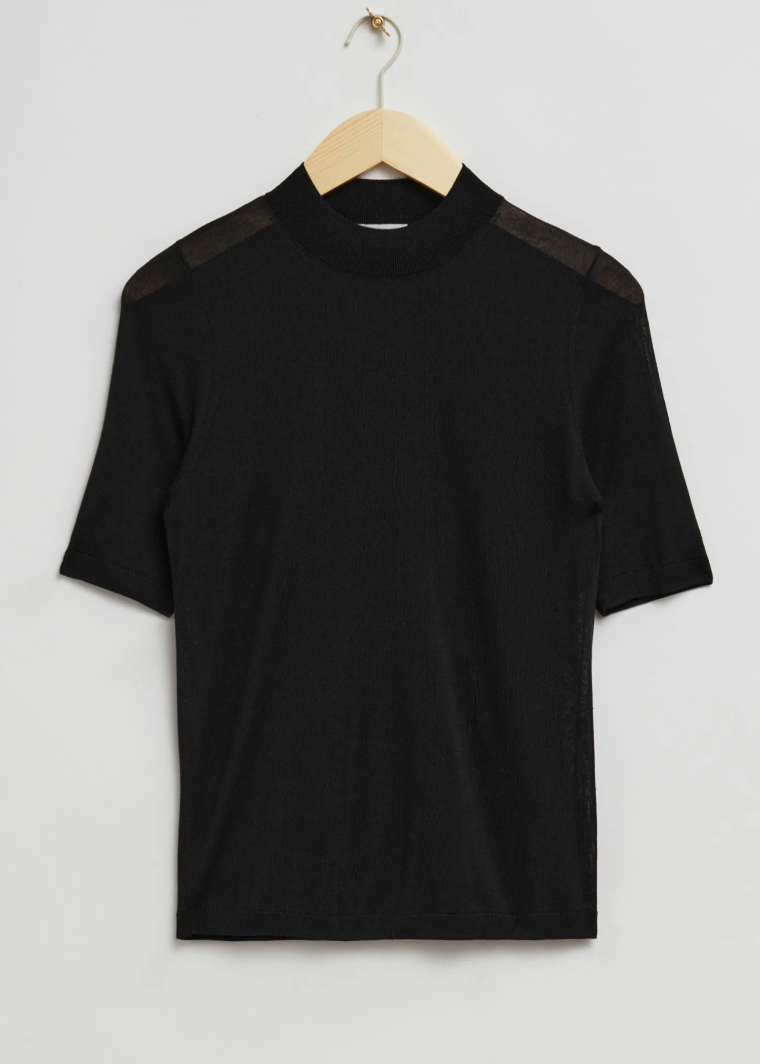 Delikat Strik T-Shirt Lavet Af En Strikket Blanding Af Materialer. Den Kortærmede T-Shirt Har En Rund Halsudskæring Og Afsluttes Med Rib I Hals, Ærmer Og Kant. Længde På T-Shirt: 59 Cm / 23,2″ (Størrelse S)