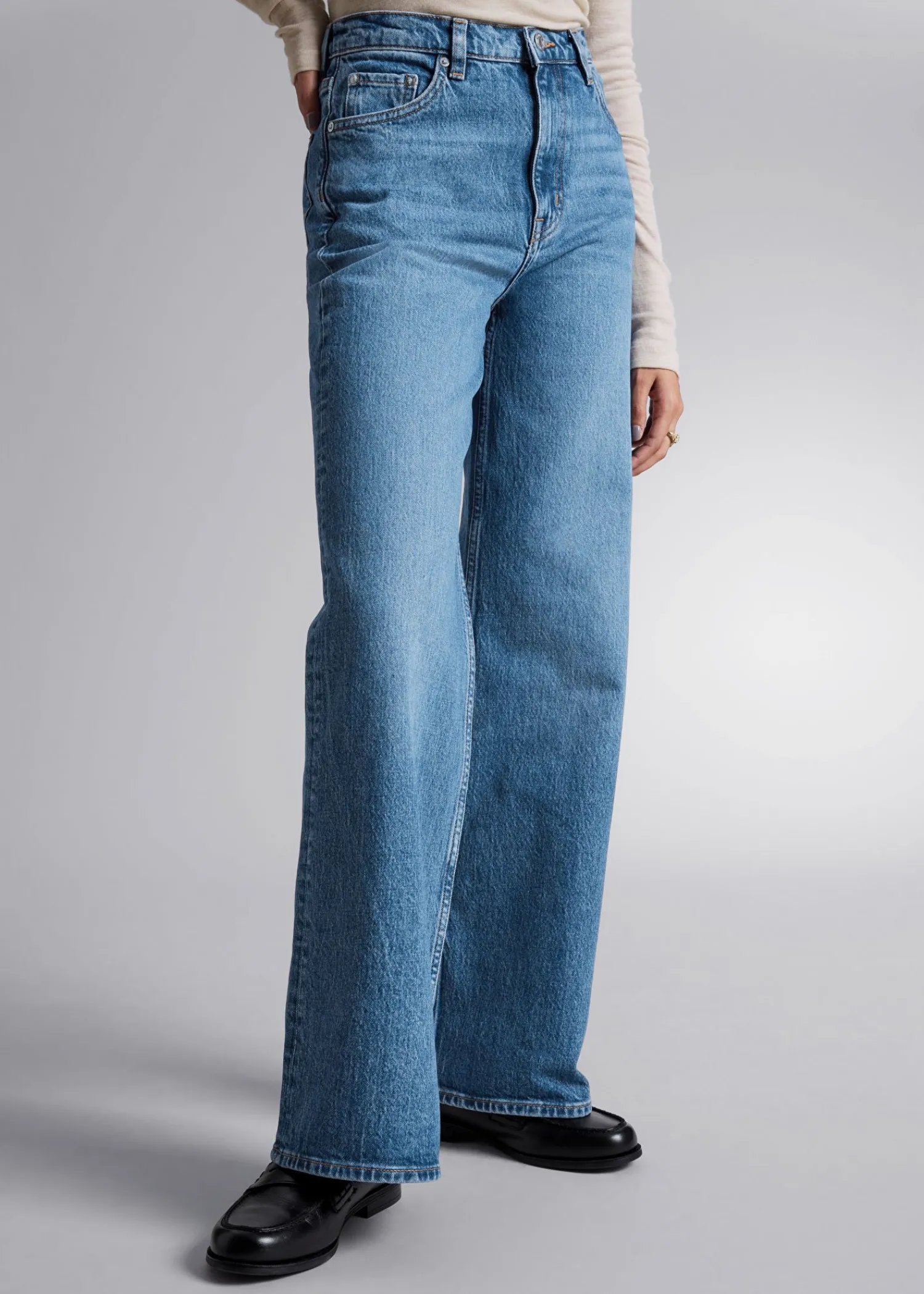 Disse 5-Lommers Jeans Er En Garderoberedning, Der Passer Godt Til Ethvert Look Eller Humør, Og Har Høj Talje Og Brede Ben. Høj Talje Bredt Ben Comfort Stretch Lynlås Og Knapgylp