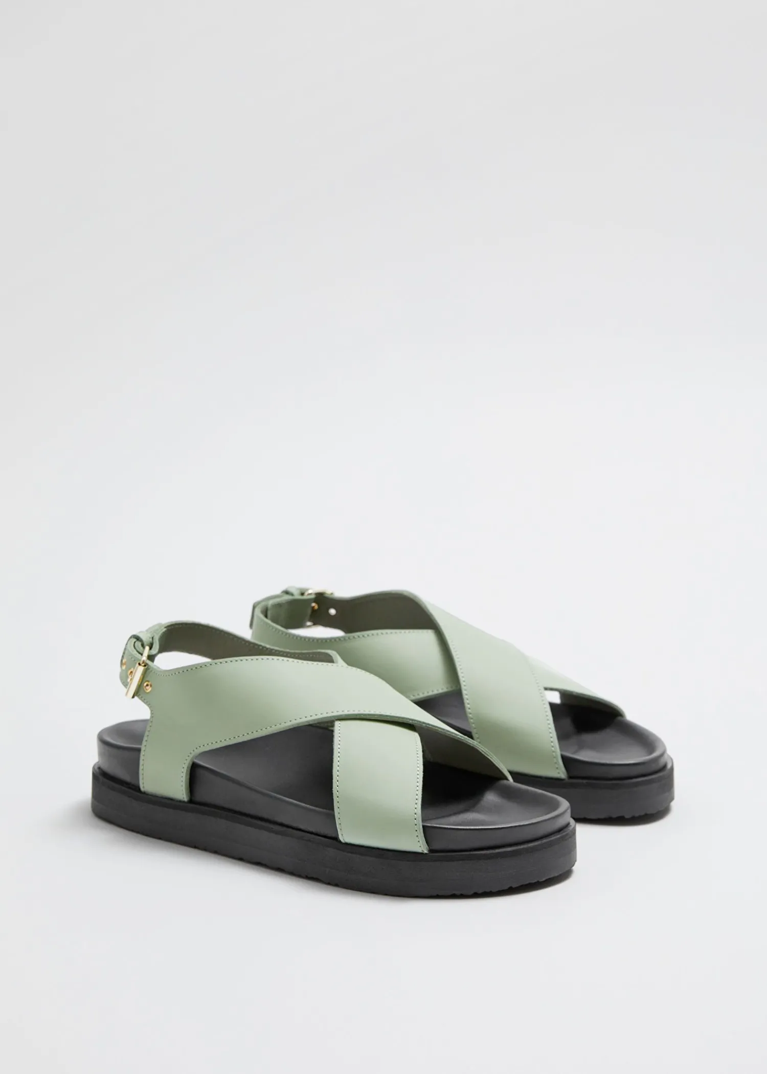 Lædersandaler Med Krydsende Stropper Sikret Med En Justerbar Spændelukning. Chunky Gummisåler Sålhøjde: 2 Cm / 0,8″