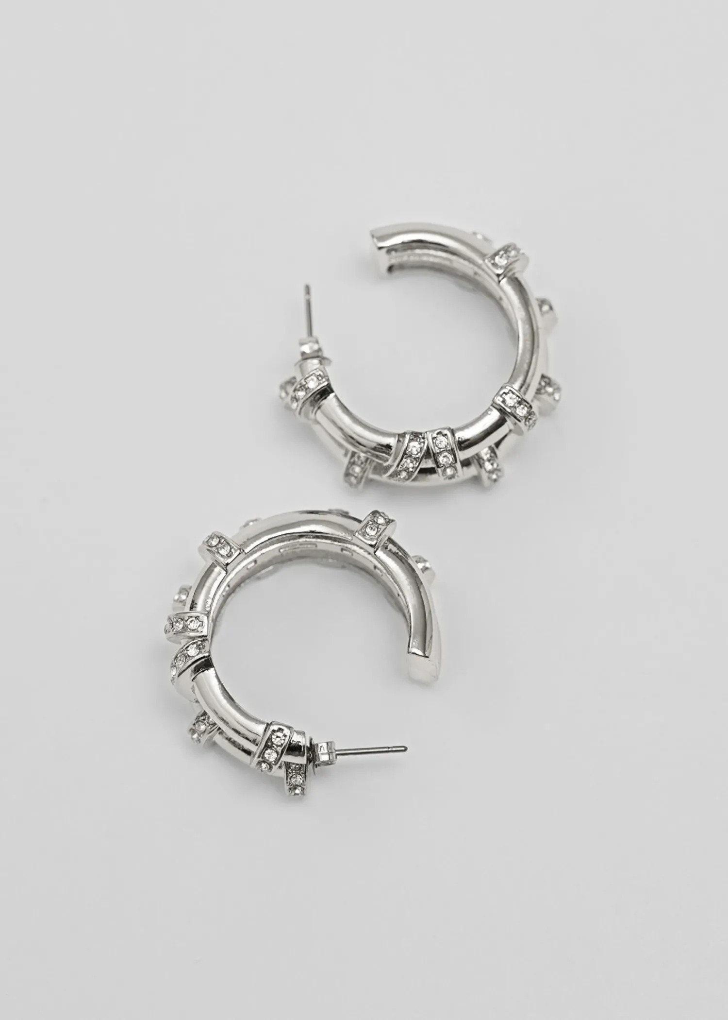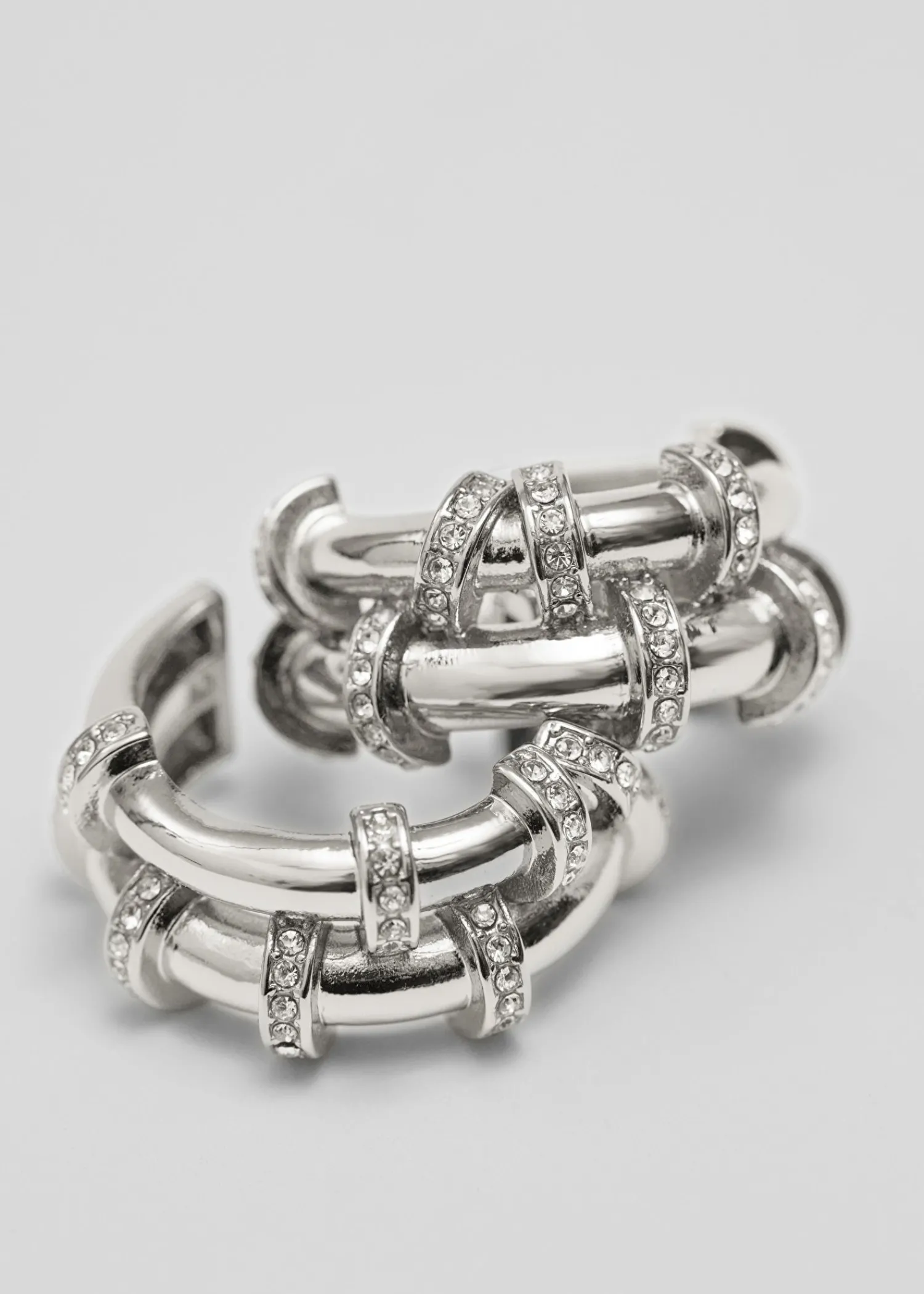 Bøjleøreringe Med Flettede Bånd Detaljeret Med Sarte Klare Glassten. Dimension: 3,2 Cm / 1,3″ Nikkeltestet
