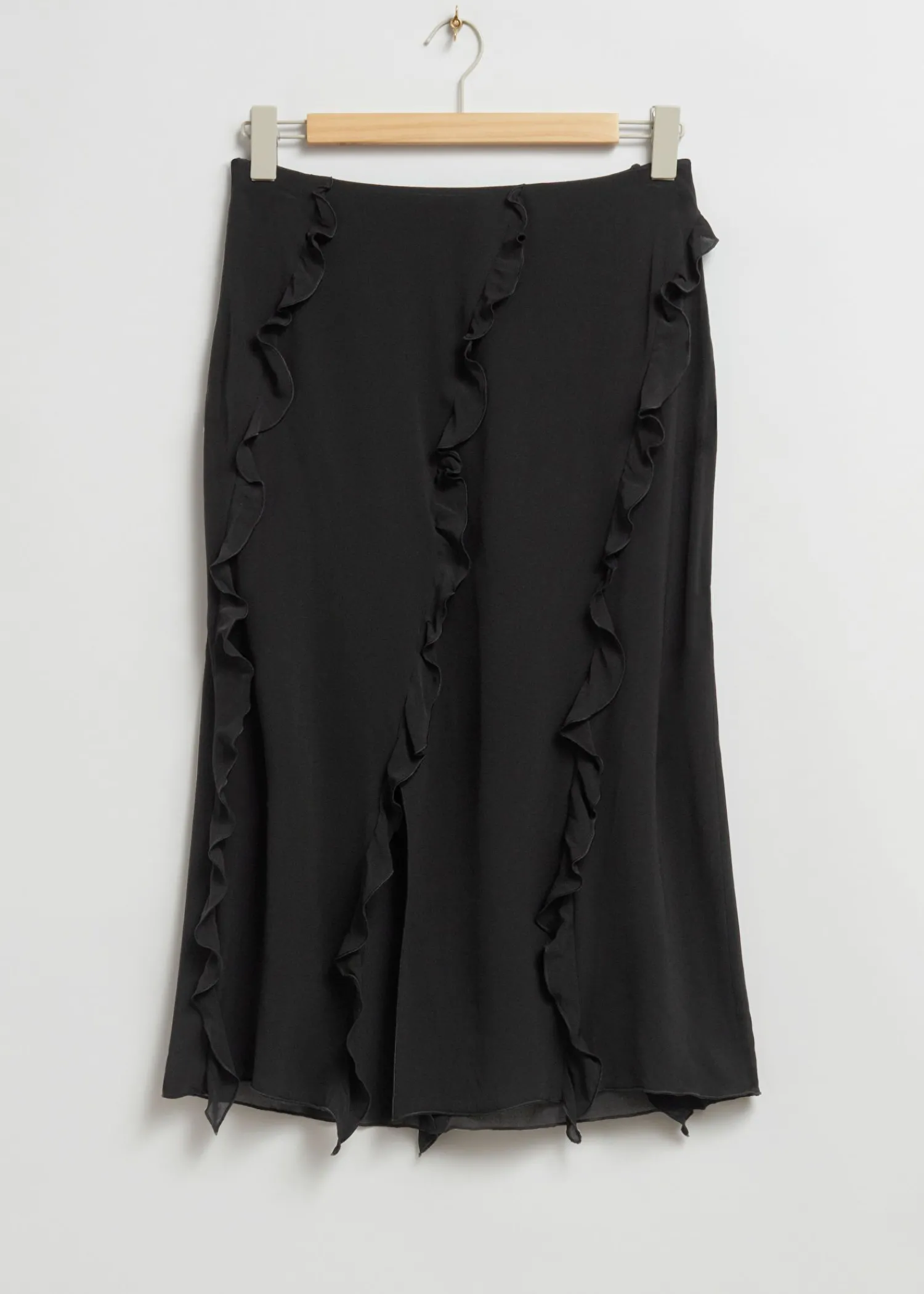 Frilled Midi-Nederdel Lavet Af Glat Silkelignende Stof. Designet Med Asymmetriske Flæselinjer I En Midi-Længde Silhuet. – Normal Pasform, Midi Længde – Skjult Sidelynlåslukning Med Krog Og Øje Længde På Nederdel: 80 Cm / 31,5″ (Eu 36 / Uk 8 / Us 4) Stockholm Er Hjemsted For Vores Mest Minimalistiske Stilarter.