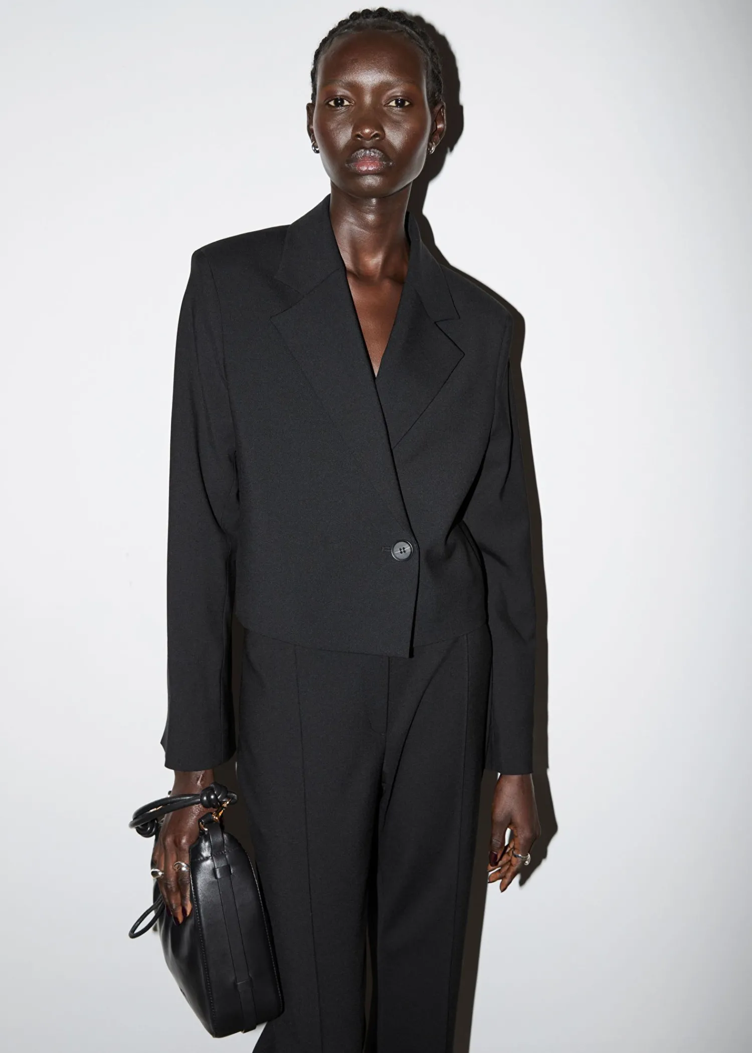 Beskåret Blazer Med En Overlappende Stolpe Med Enkelt Knap. Afsluttet Med Polstrede Skuldre. Udluftning Ved Manchetterne 45 % Rws Wool Certificeret Af Control Union 893290 Længde På Blazer: 46,5 Cm / 18,3″ (Eu 36 / Uk 8 / Us 4)