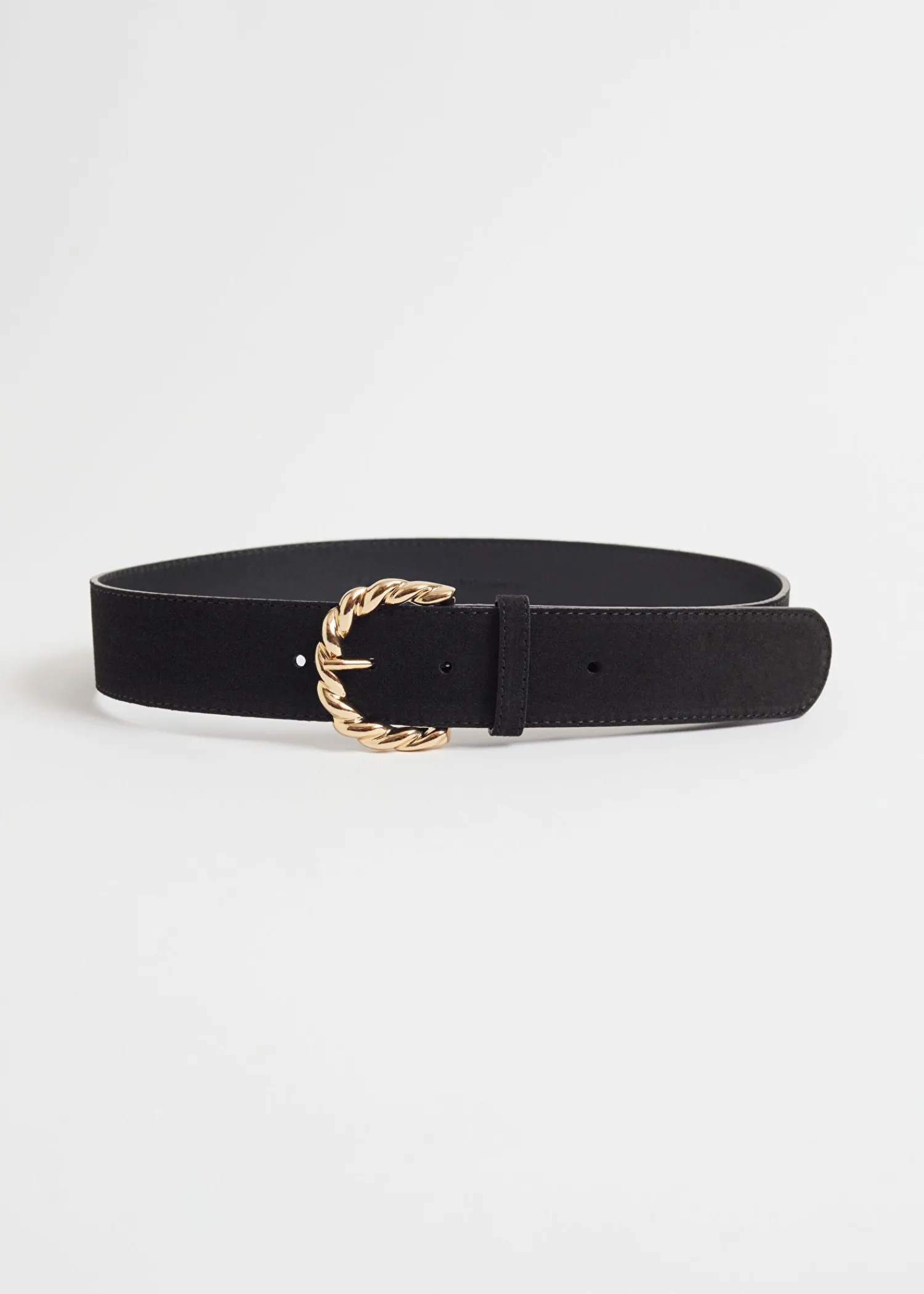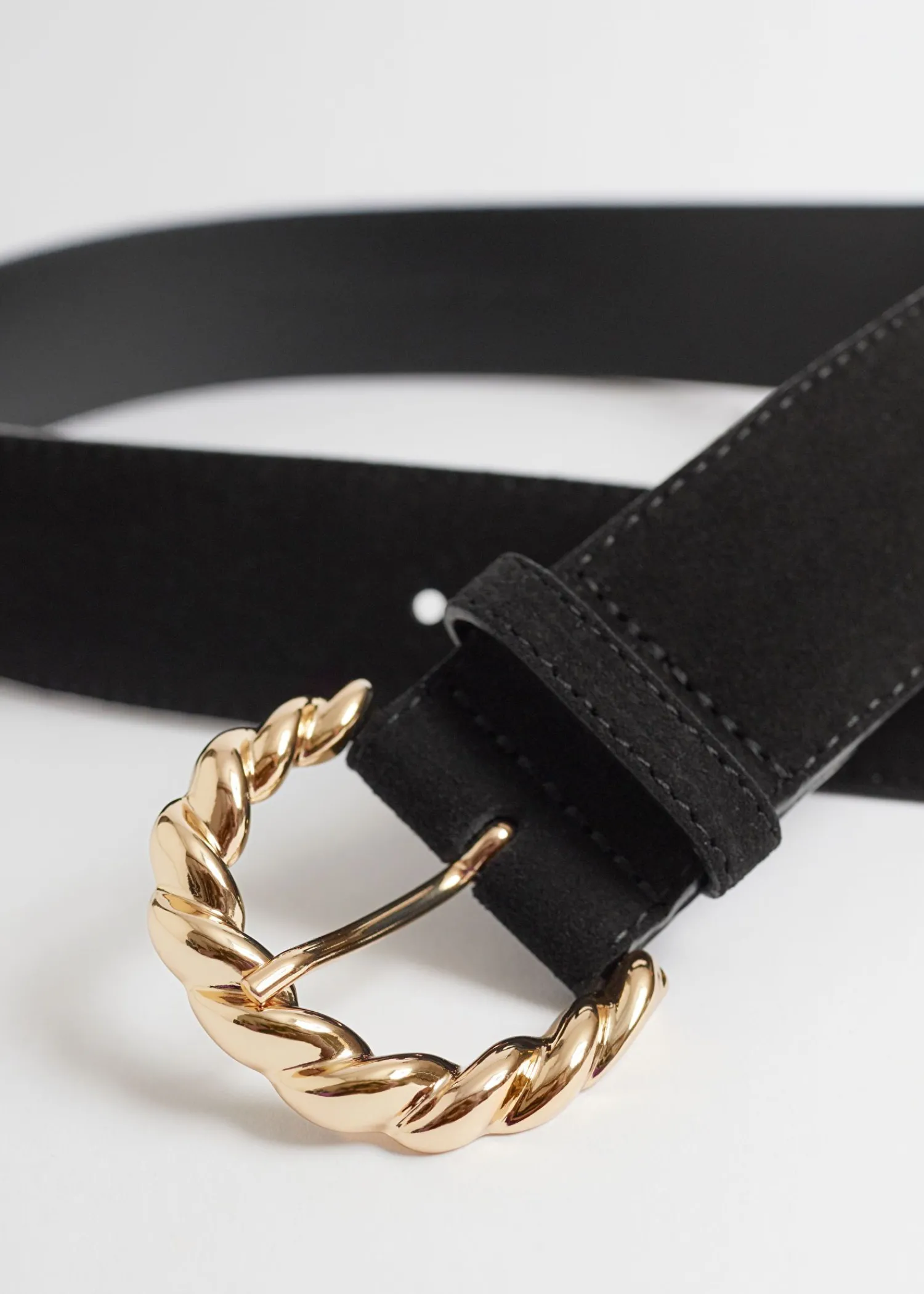 Læderbælte Med Guldfarvet, Cirkulært Fletspænde. Bredde: 5,5 Cm / 2,2″
