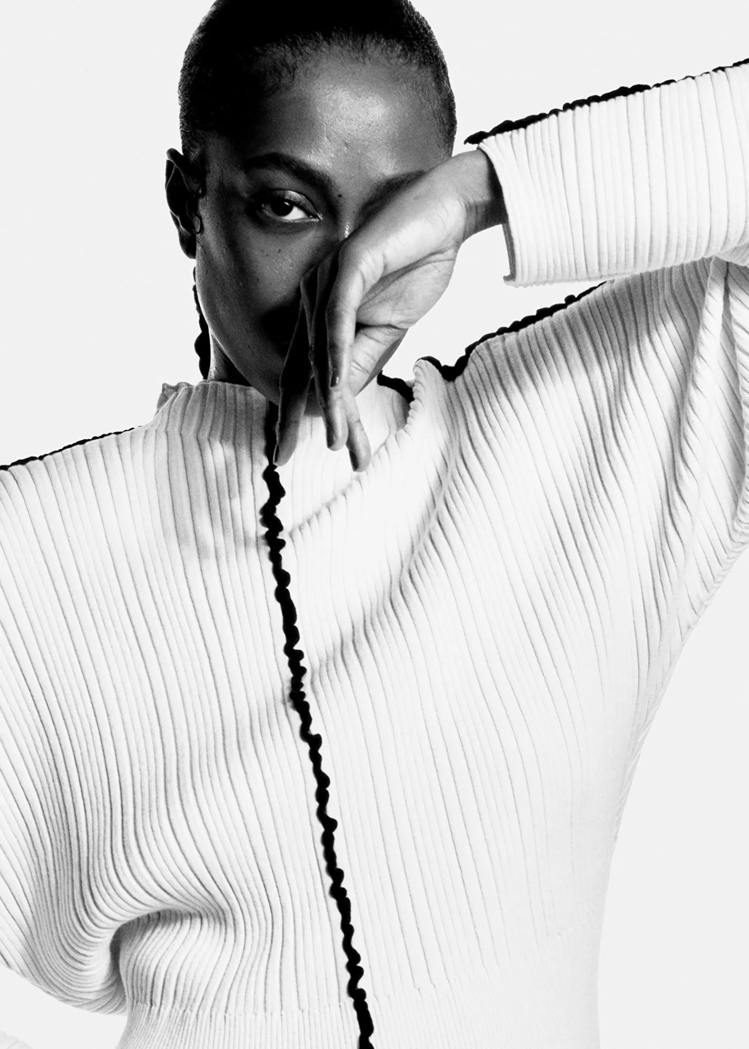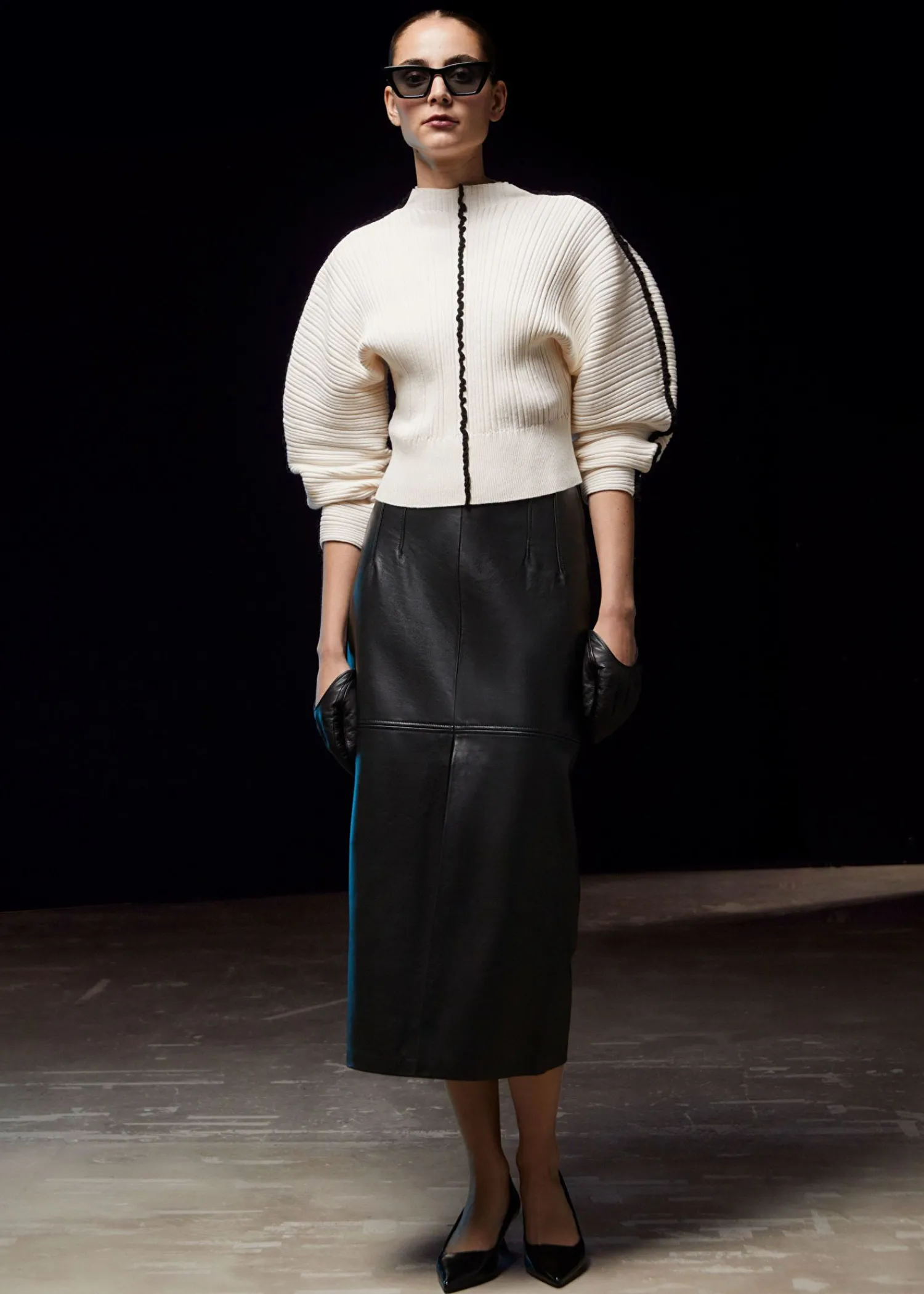 Strikstrikket Trøje Med Falsk Halsudskæring Med Kontrasterende, Flæsede Accenter Langs Ærmerne Og Kroppen. Let Afskåret Silhuet Skulpturelle Ærmer Ribbet Kant Certificeret I Henhold Til Responsible Wool Standard (Cu815571) Længde På Trøje: 49,5 Cm / 19,5″ (Størrelse S)
