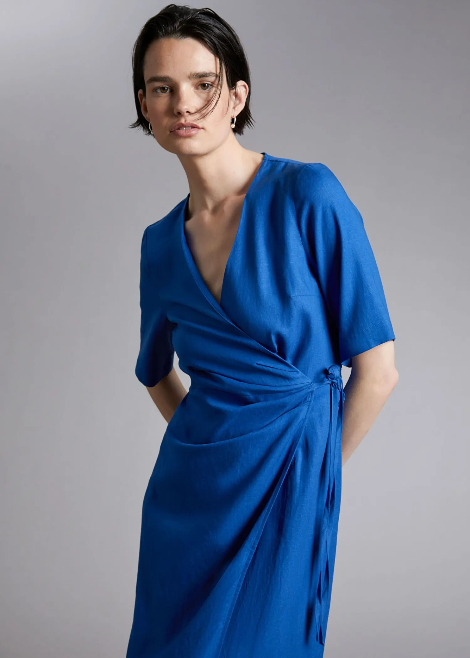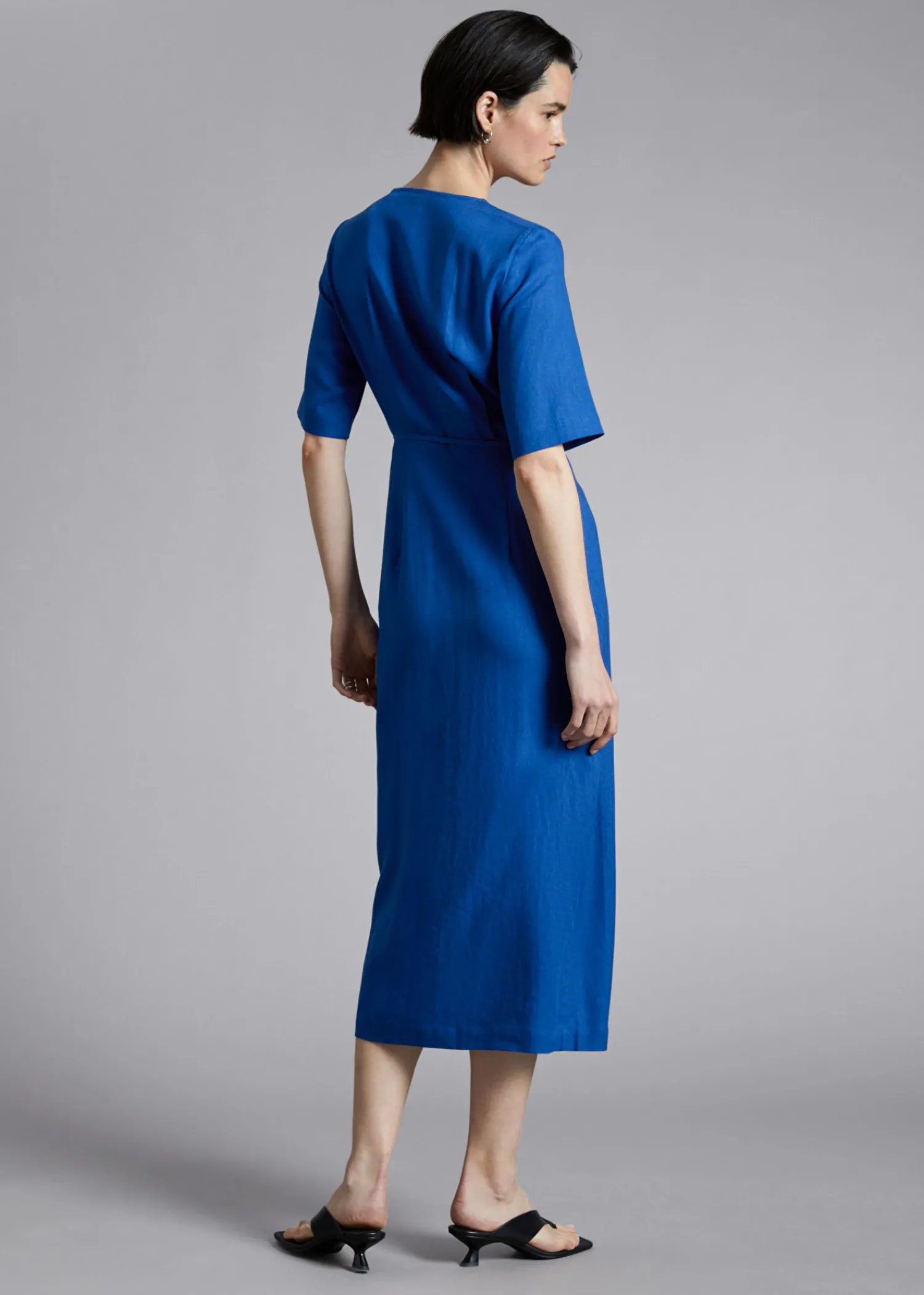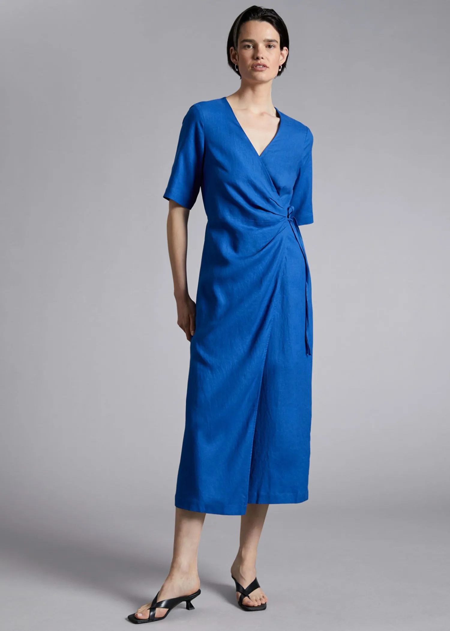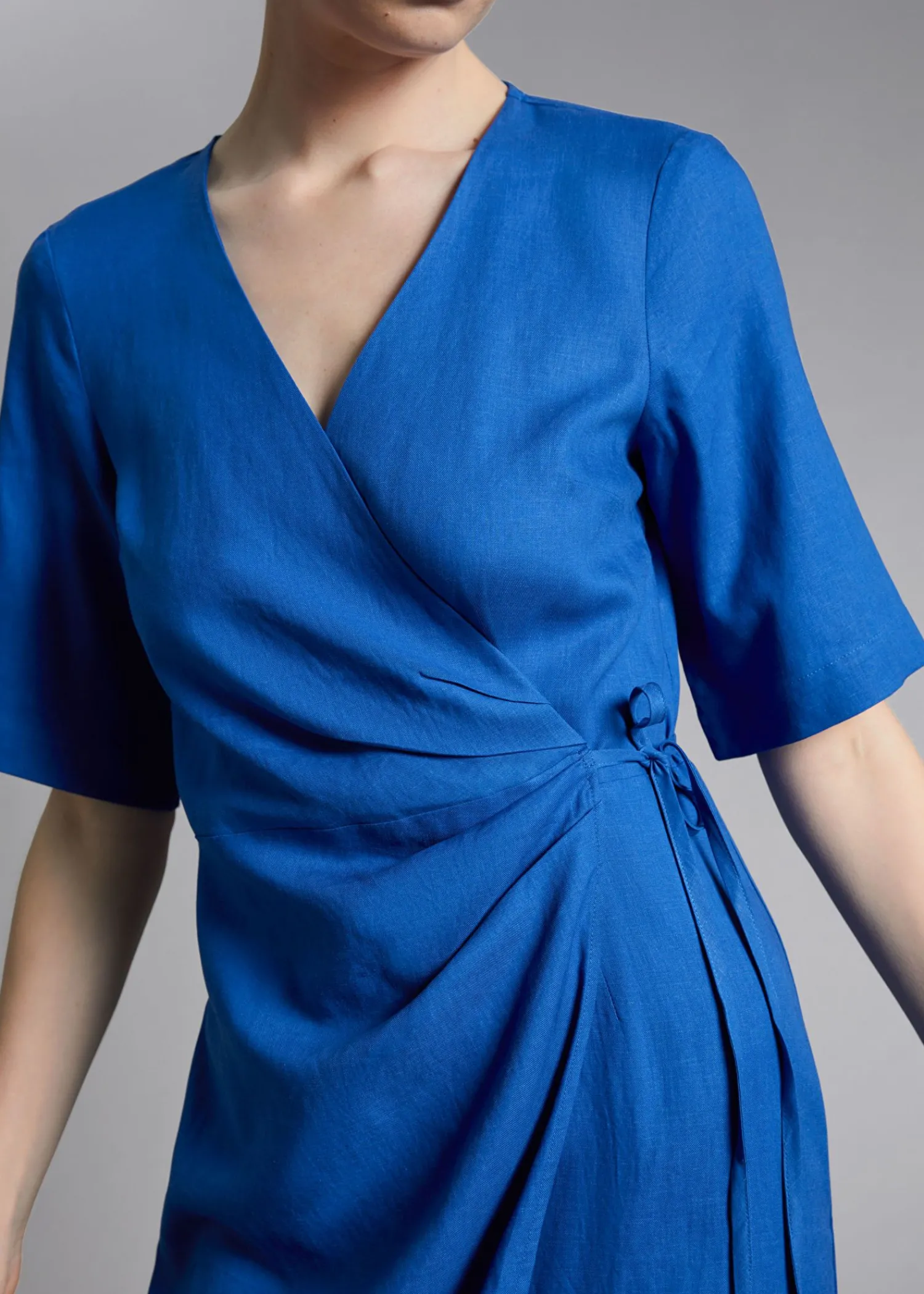 Midi Slå-Om-Kjole Designet Med Korte Ærmer, V-Udskæring Og En Slå-Om-Front, Der Er Bundet I Taljen, Fremhævet Med Plisserede Detaljer Med En Diagonal Slå-Om-Nederdel I En Midi-Længde Silhuet. – Regular Fit – Skjortekjole Længde På Kjole: 125 Cm / 49,2″ (Eu 36 / Uk 8 / Us 4)
