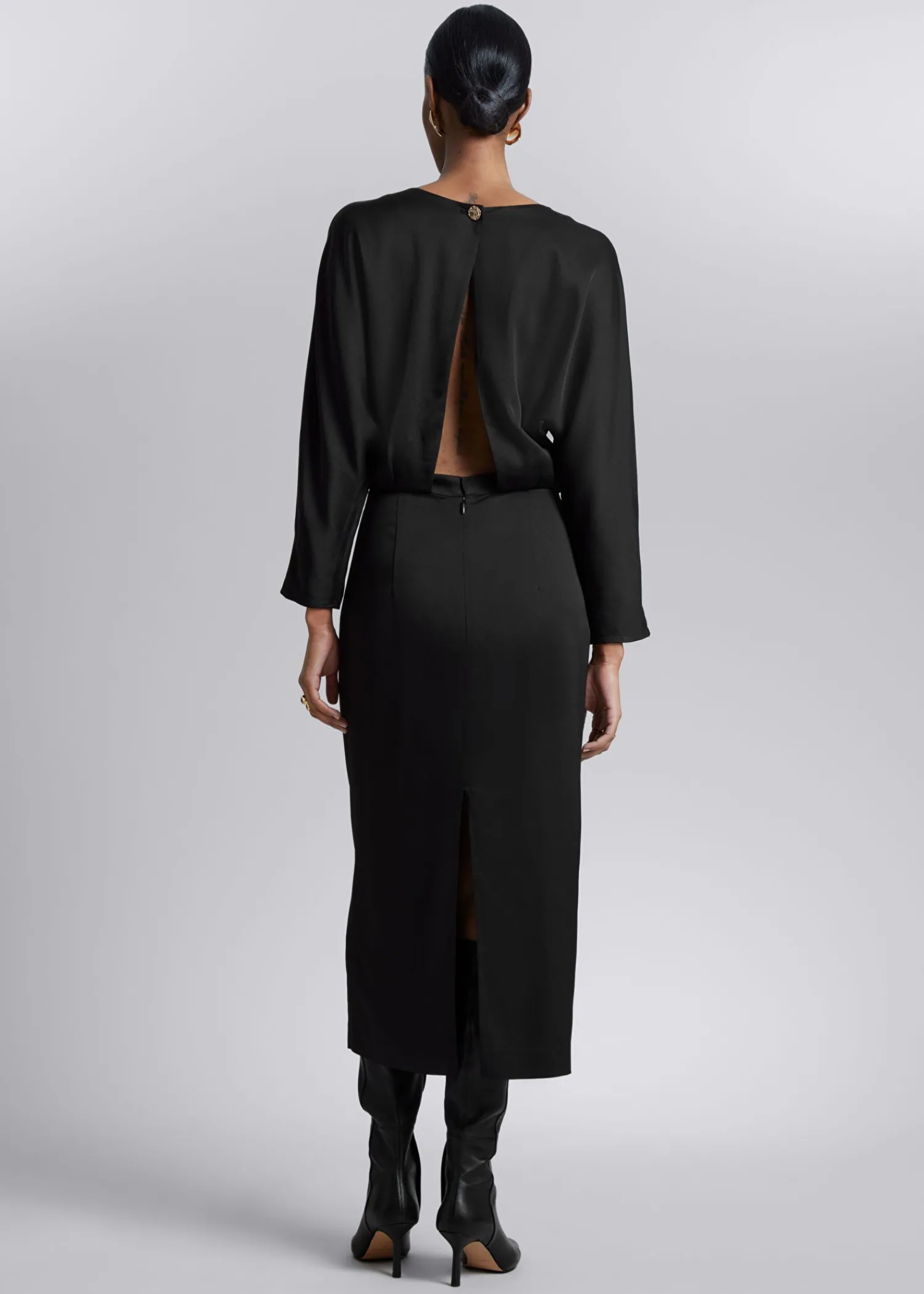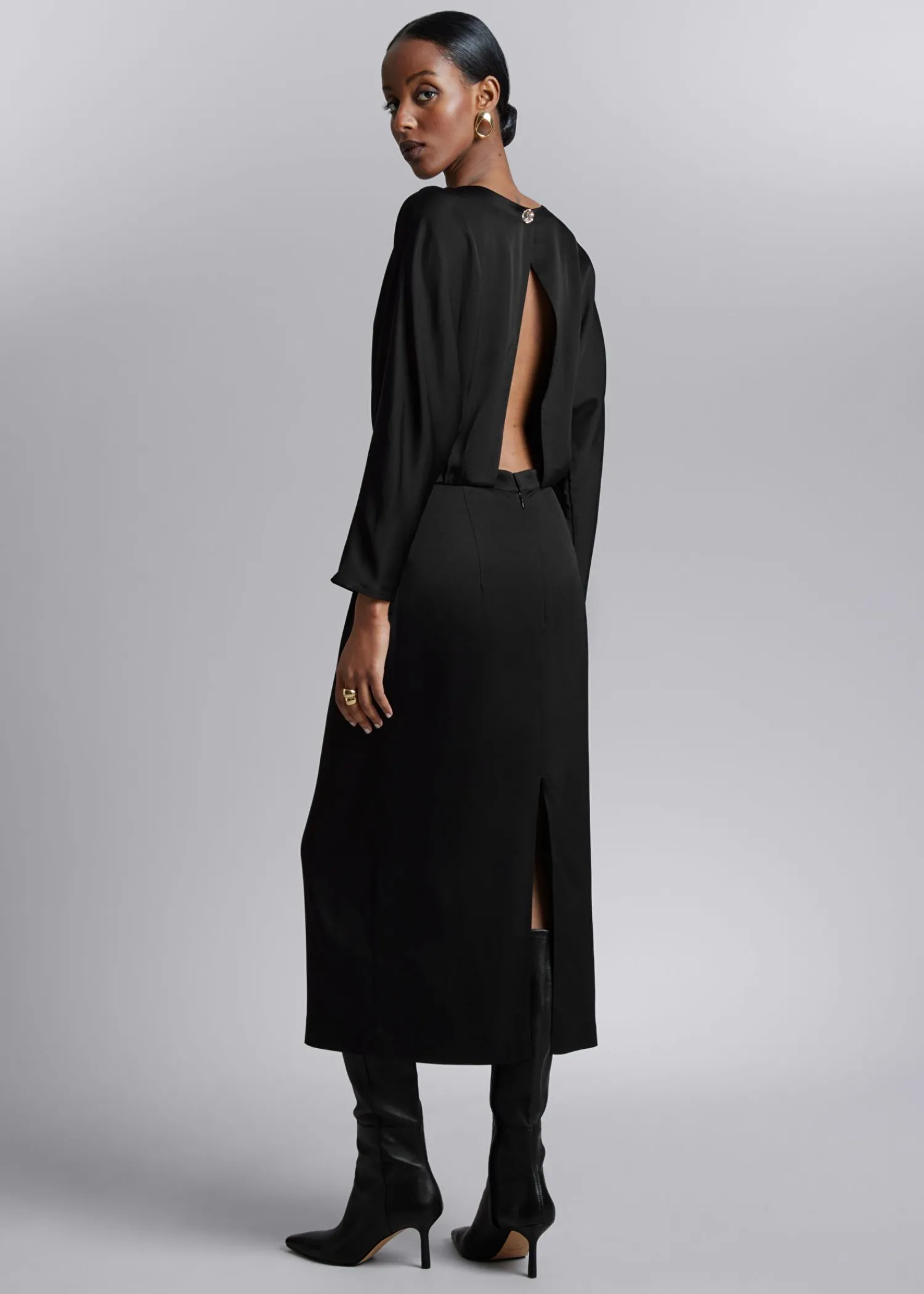 Midikjole Med Åben Ryg, Der Er Sikret Med En Knap, Og Slids Bagpå Nederdelen. Dolman-Ærmer Med Rund Hals Lynlås Med Hægte Og Stanglukning Bagpå Kjolens Længde: 122 Cm (Eu 36 / Uk 8 / Us 4)