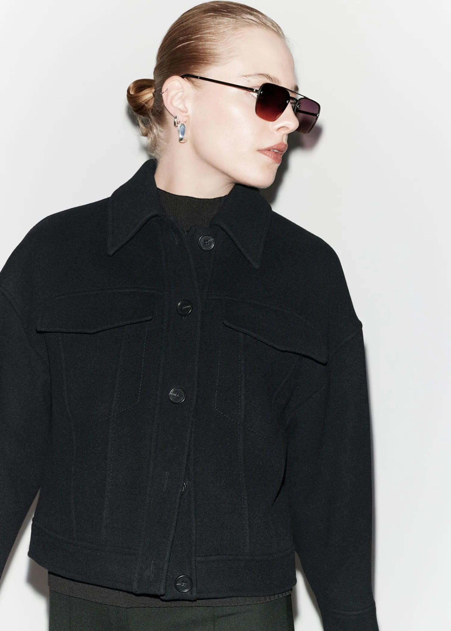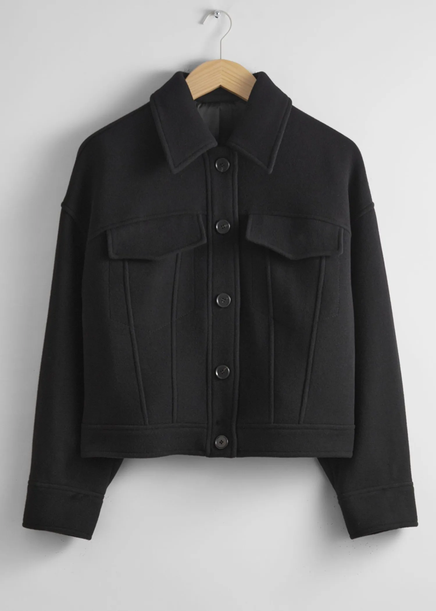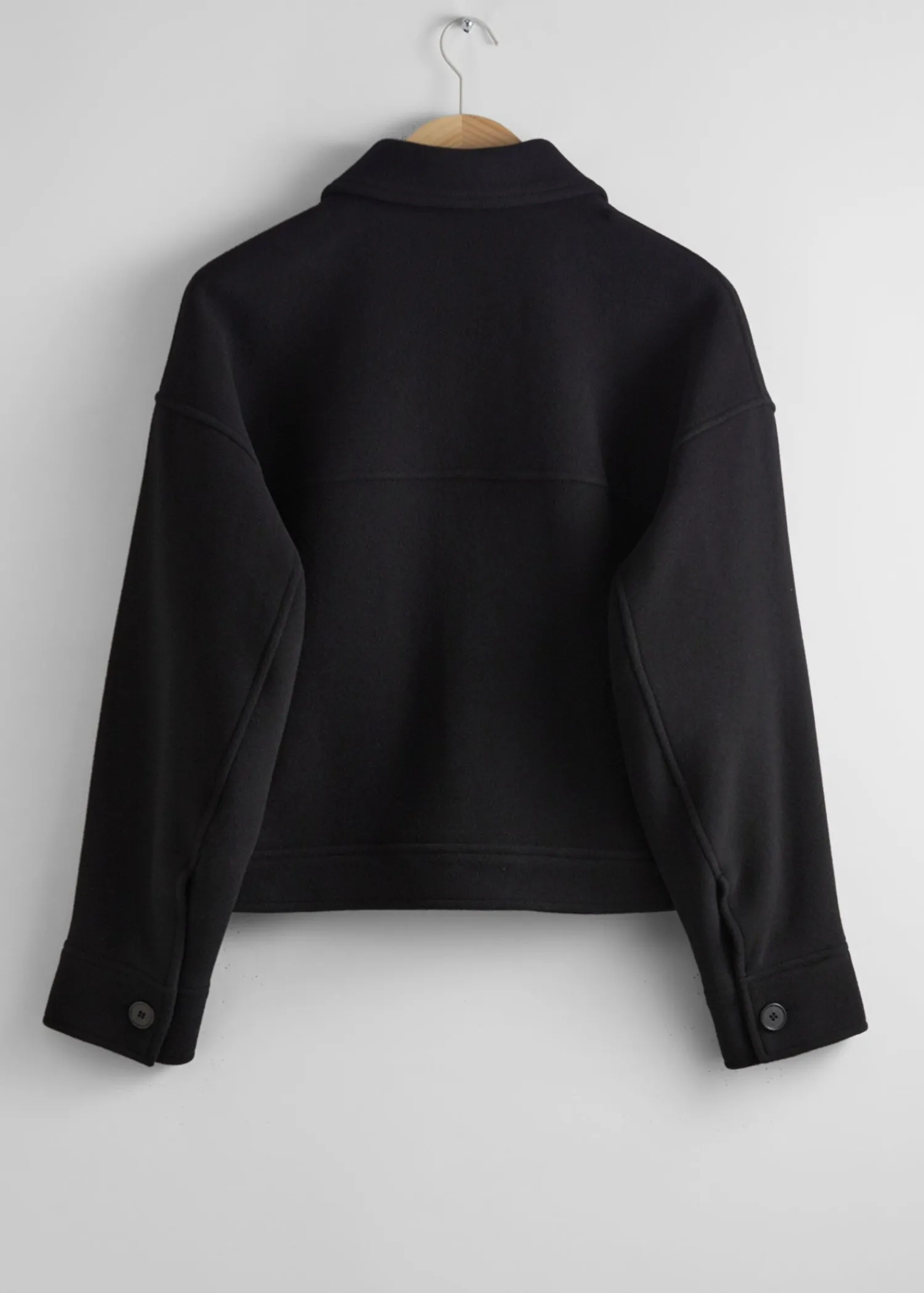 Oversized Jakke I Uldblanding Med Krave Med Duo-Brystlommer Og Syede Detaljer. Fem Knaplukninger Knappede Manchetter Længde På Jakken: 56,5 Cm / 22,2″ (Str. S)