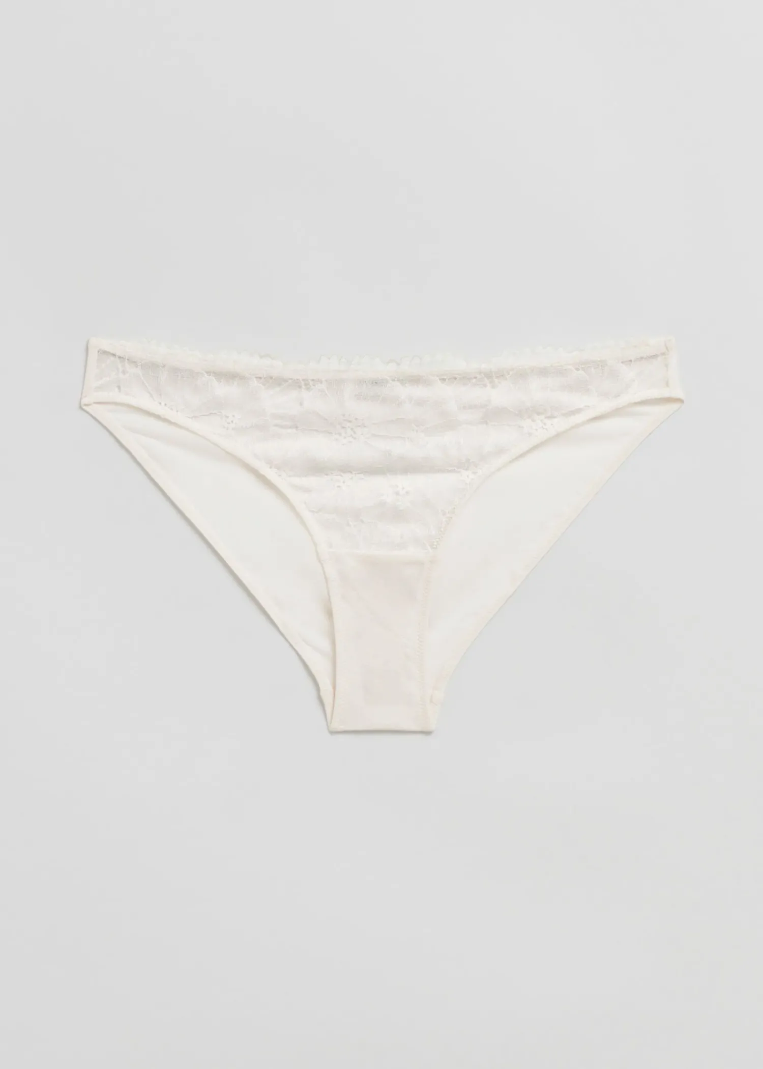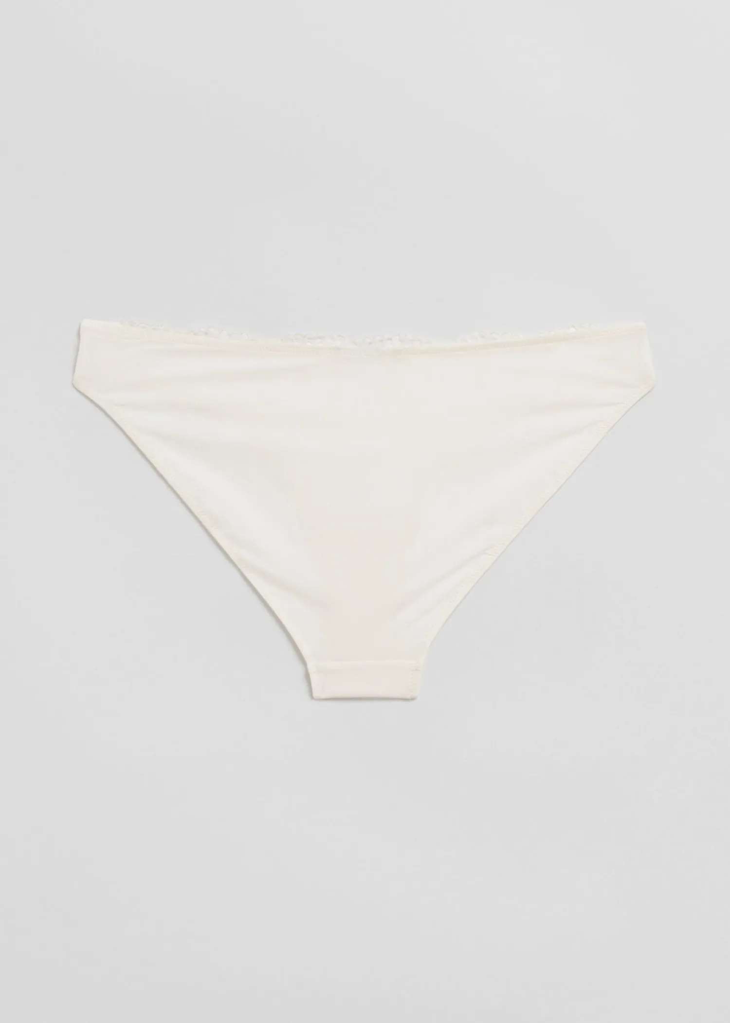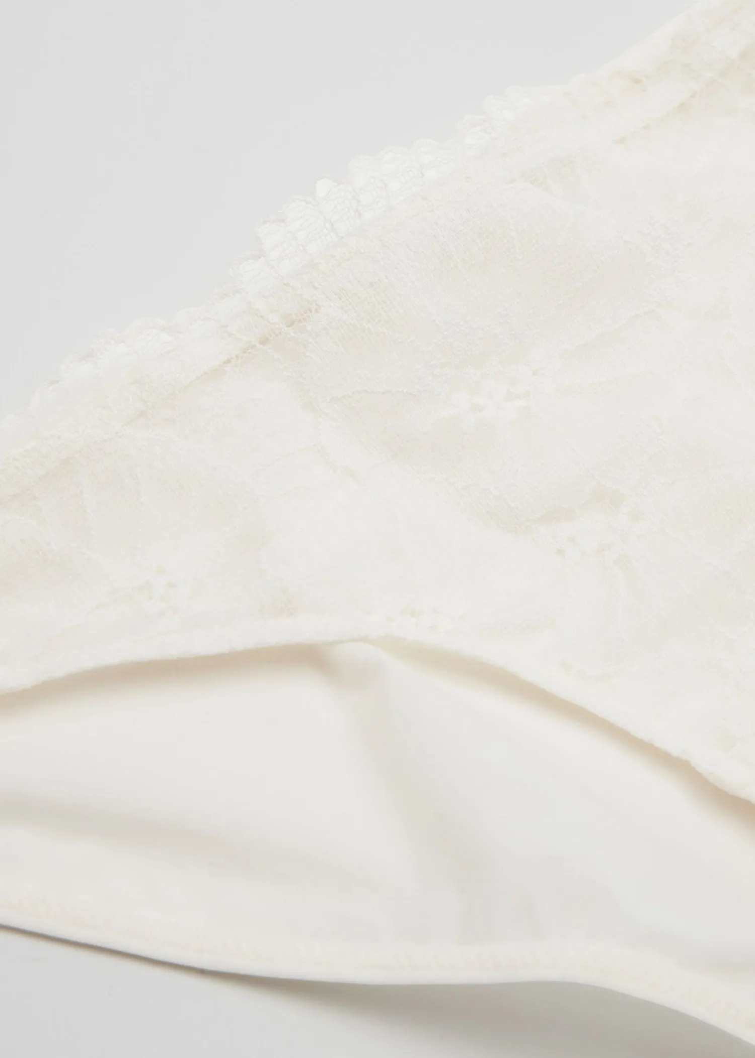 Trusser Fremstillet I Blød Jersey Og Fancy Elastisk Blonde Med Et Indviklet Blomstret Blondemønster, Flosset Kant Og En Bomuldsforet Kile. – Almindelig Talje