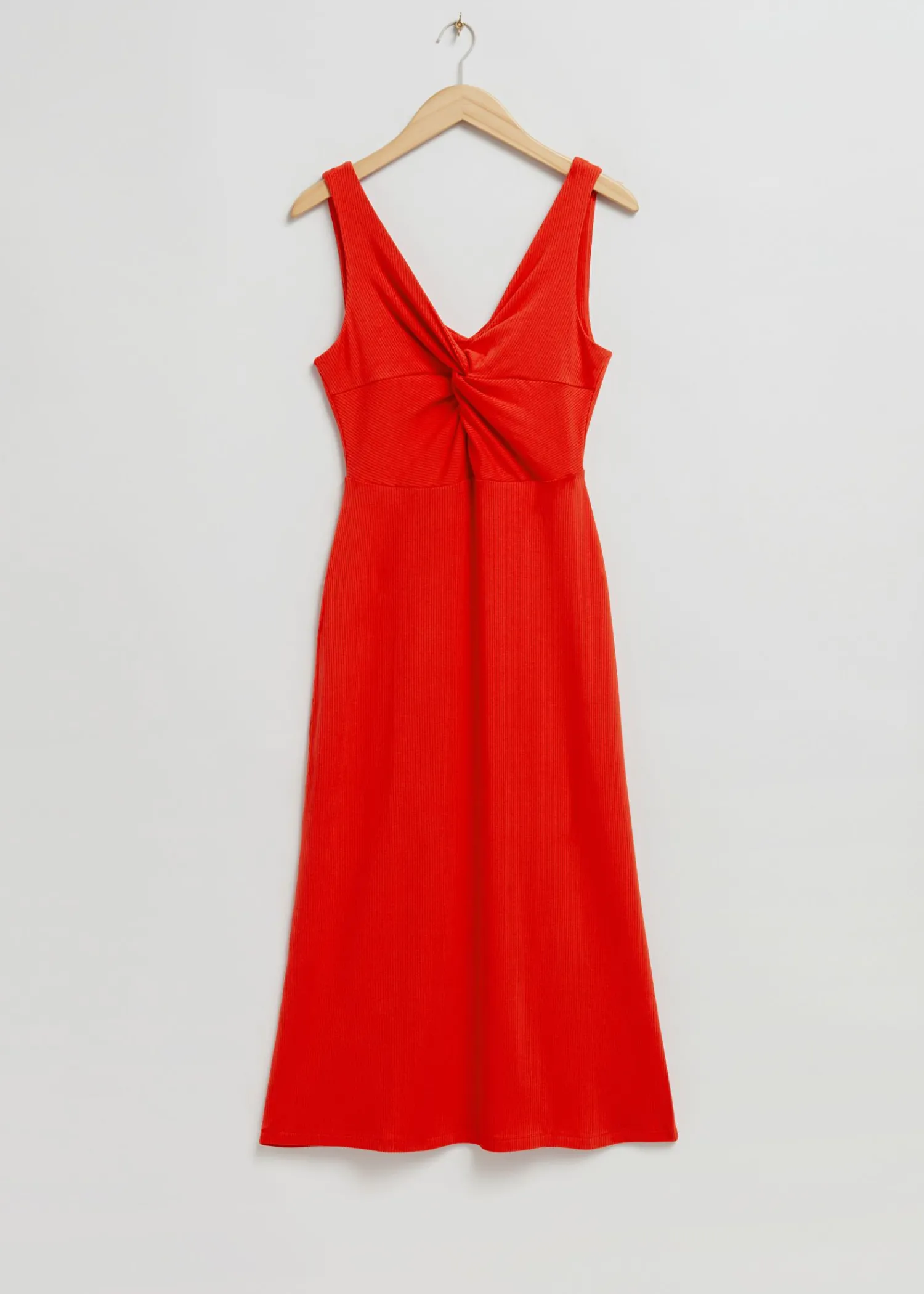 Ribstrikket Midikjole Foran, Lavet Af Stretchjersey. Designet Med En Ærmeløs, V-Udskæring For- Og Bagudskæring, Der Er Dygtigt Snoet For Facon Med En Søm I Midten Foran Og I Taljen Og En Let Udspilet Nederdel I Midi-Længde. – Regular Fit – Ribbet Jersey Længde På Kjolen: 123 Cm / 48,4″ (Størrelse S) Luksuriøst Og Tilbagelænet Opsummerer Vores Looks Fra Los Angeles.