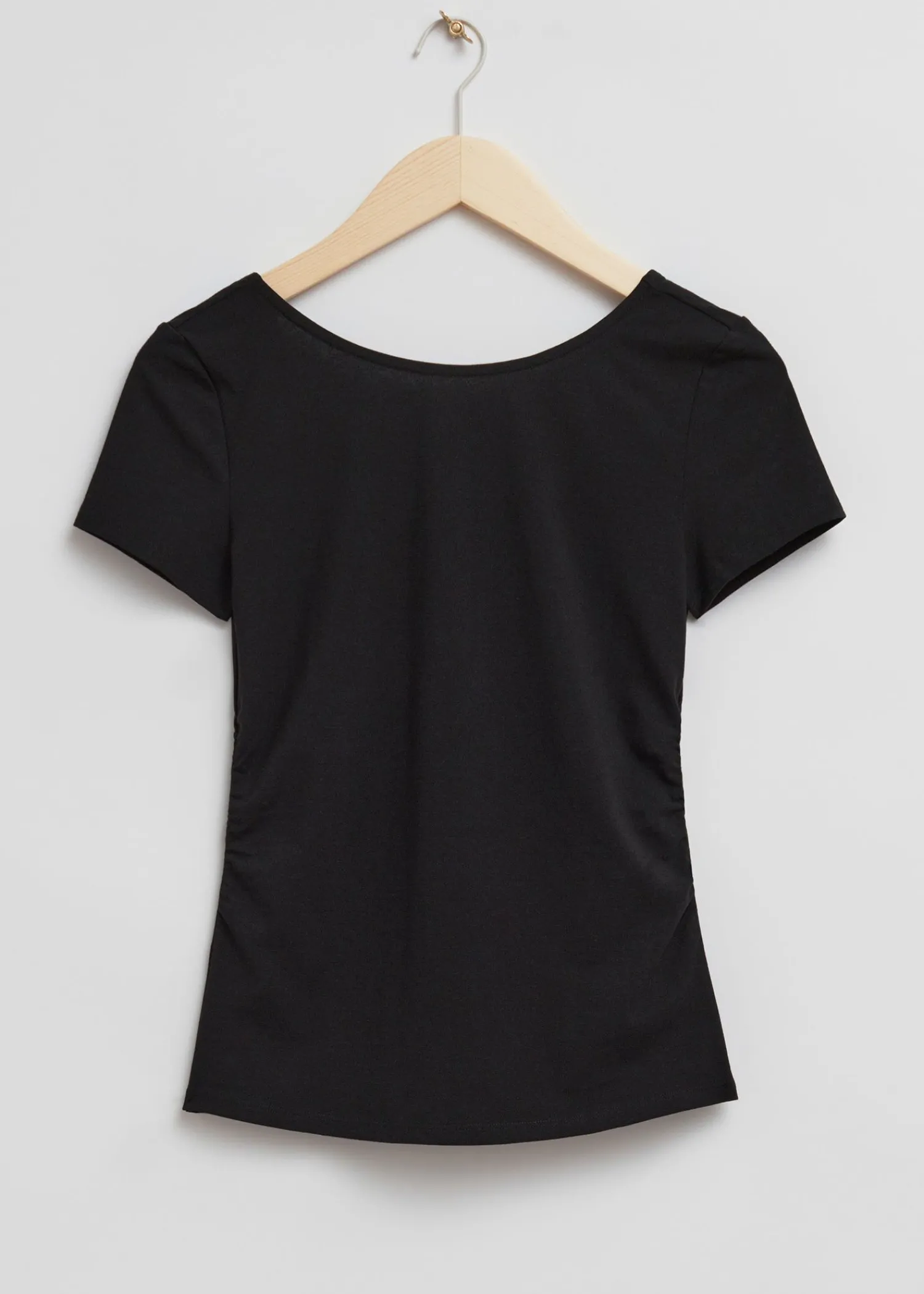Tætsiddende T-Shirt Med Ruchet Detalje Lavet Af Bomulds-Elastanjersey. Med Rynkede Sidesømme, En Bådskåret Halsudskæring, Scooped Ryg Og Korte Ærmer. Længde På Toppen: 57 Cm / 22,4″ (Eu 36 / Uk 8 / Us 4)