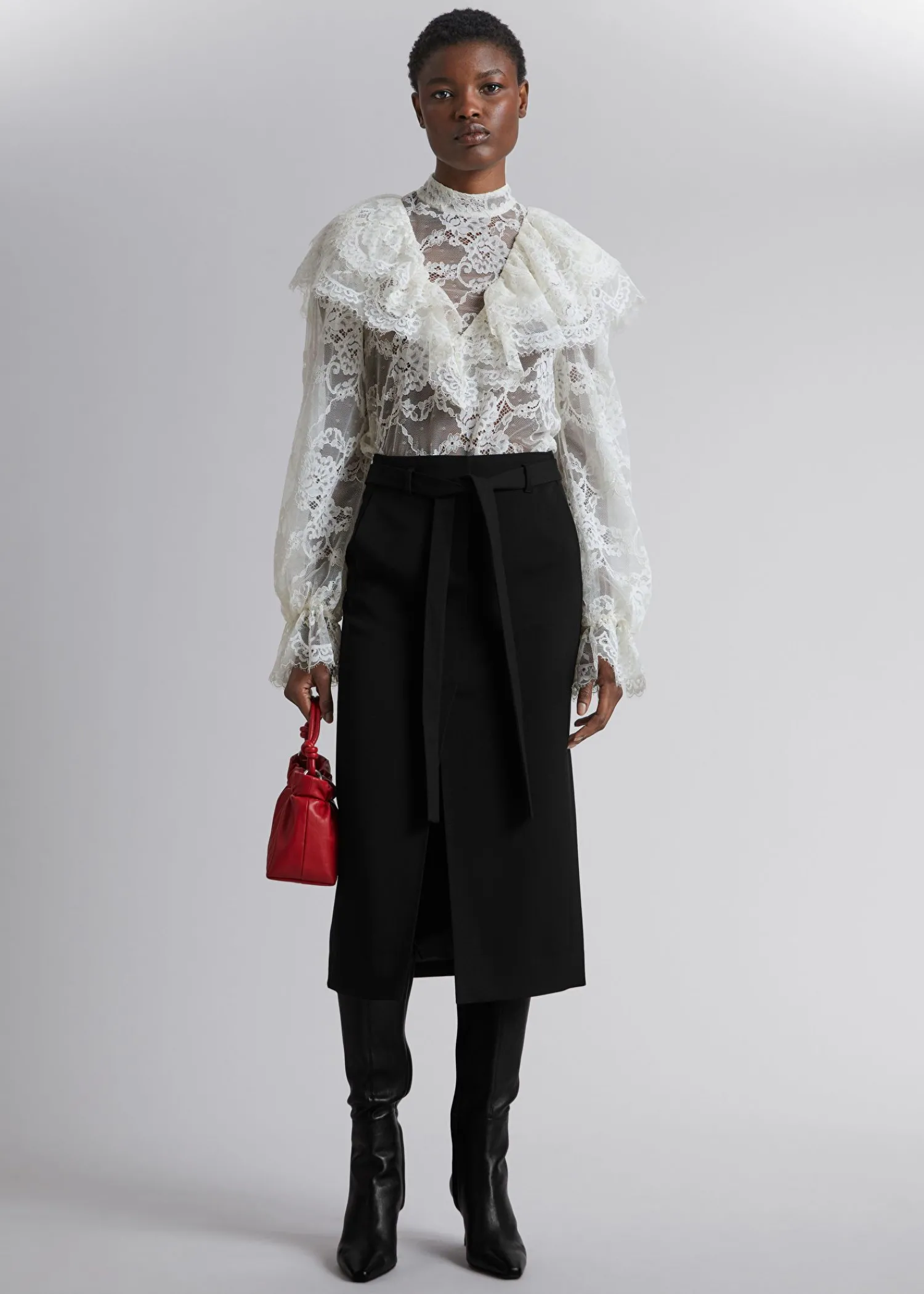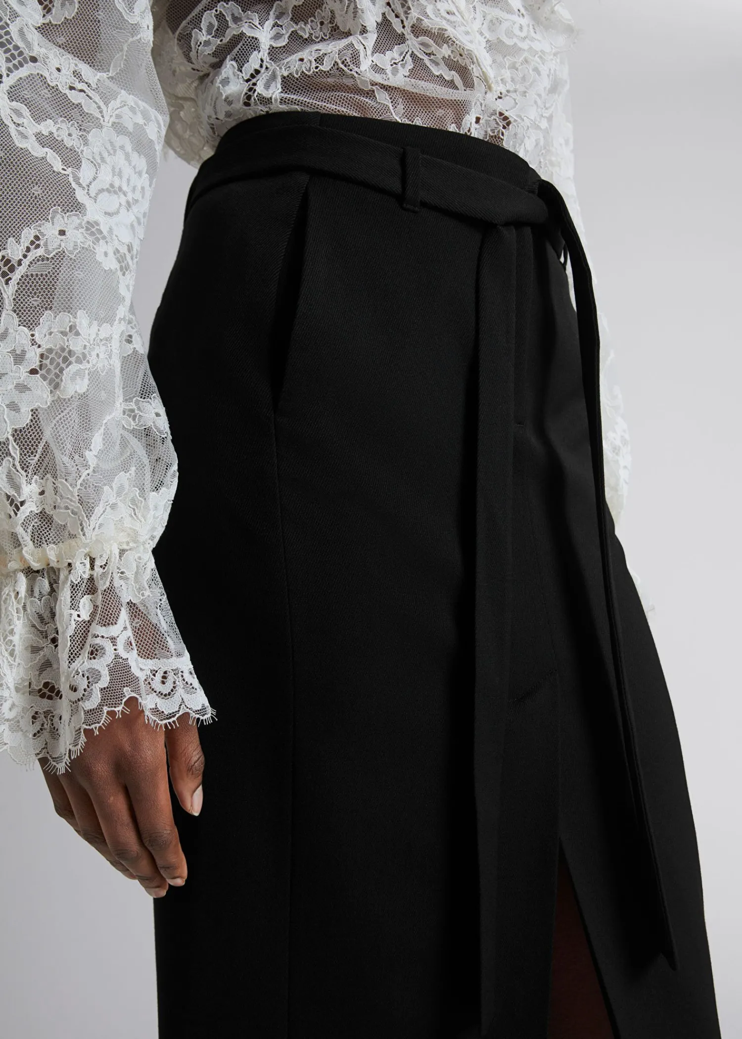 Monteret Højtaljet Midi-Nederdel Af Uldblanding Afsluttet Med Et Tyndt, Tonalt Selvbindende Bælte Og En Slids Midt Foran. Duo Sidesømslommer Duo Paspolerede Lommer Bagpå Bæltestropper Lynlåsgylp Med Krog- Og Stanglukning Certificeret I Henhold Til Responsible Wool Standard (Cu888809) Længde På Nederdel: 82,5 Cm / 32,5″ (Eu 36 / Uk 8 / Us 4)