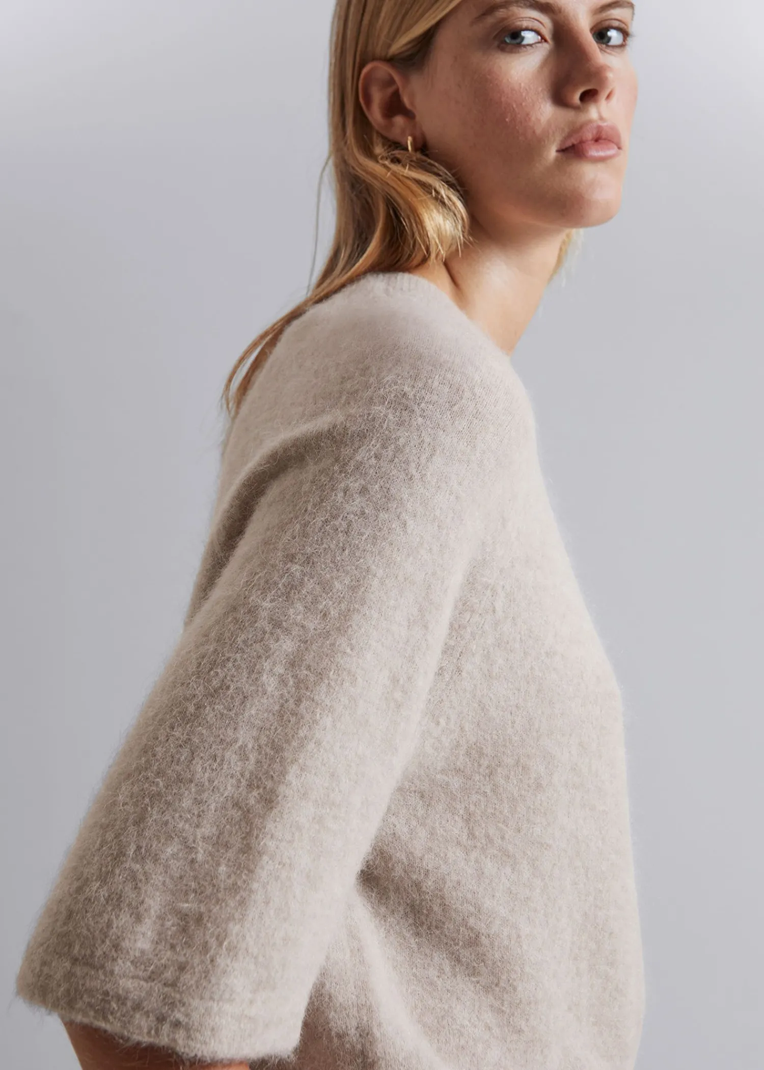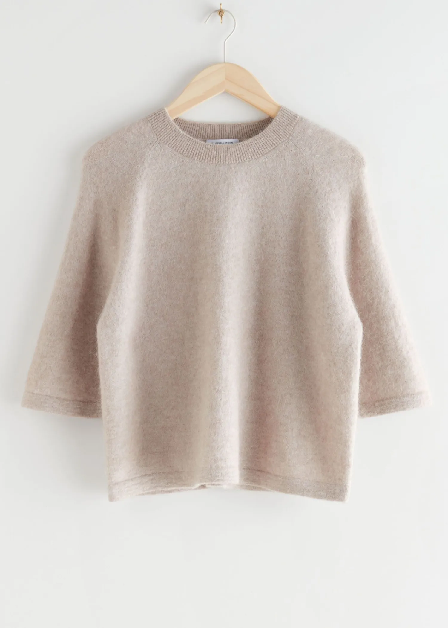 T-Shirt Med Rund Hals Strikket Af Alpaca Og Merinould. Raglanærmer 40% Ras Alpaca Certificeret Af Control Union 893290 32% Rws Uld Certificeret Af Control Union 893290 Længde På T-Shirt: 55,5 Cm / 21,9″ (Str. S)