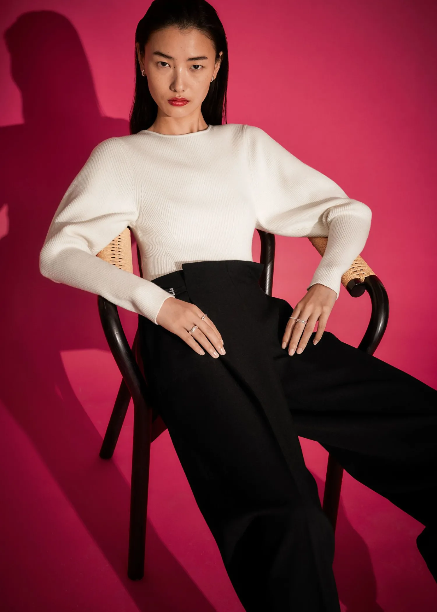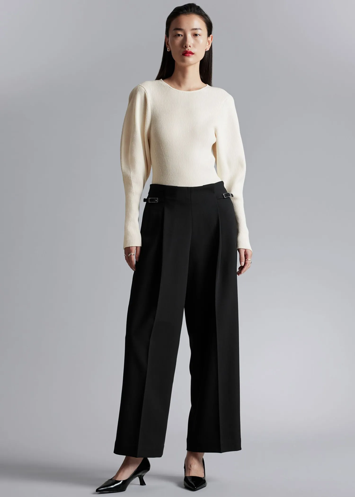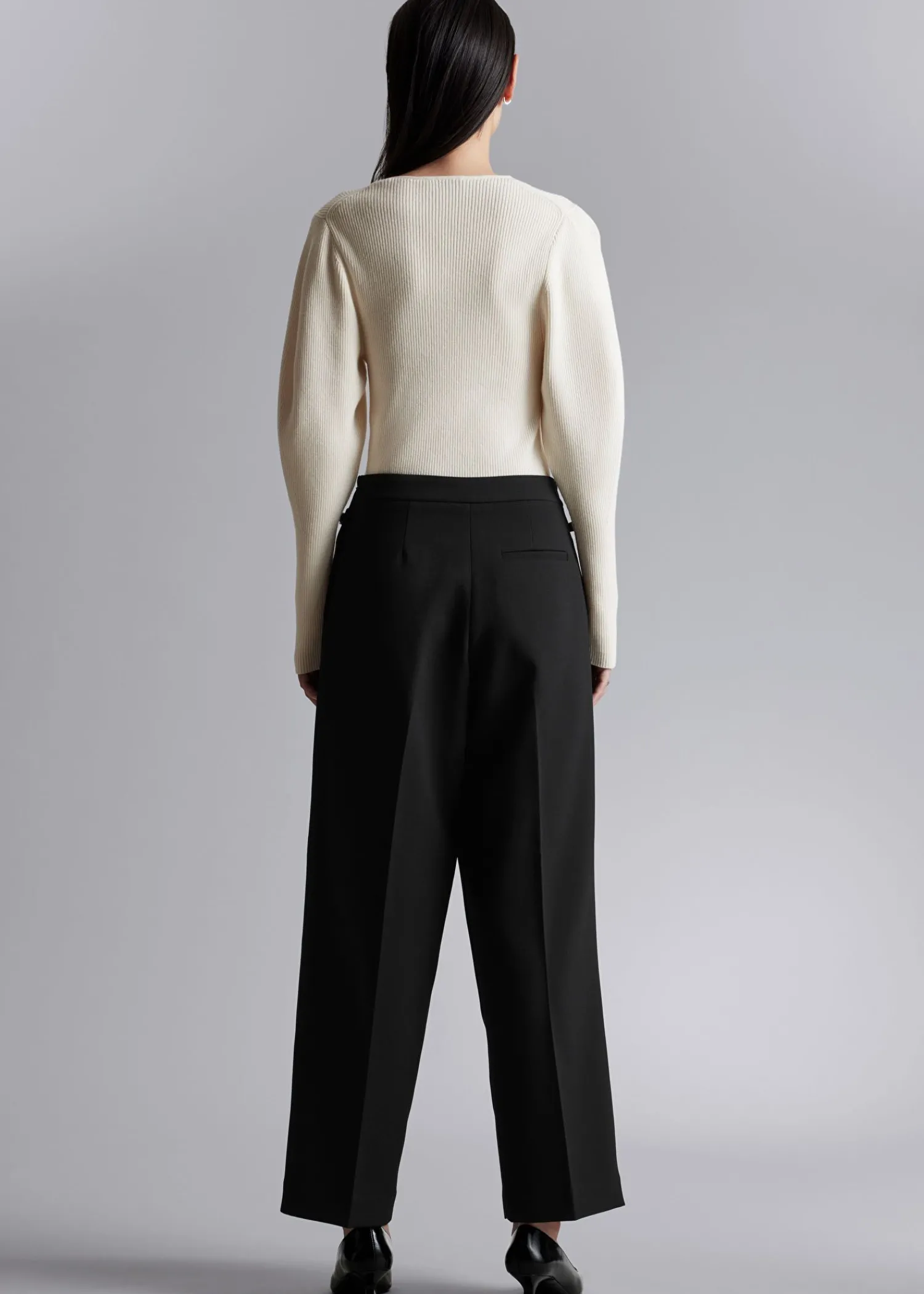 Ribstrikket Trøje Med Pufærmer Afsluttet Med Lange, Tætsiddende Manchetter. Slim Fit Rund Halsudskæring 37% Rws Uld Certificeret Af Control Union 893290 Længde På Trøje: 55 Cm / 21,7″ (Str. S)