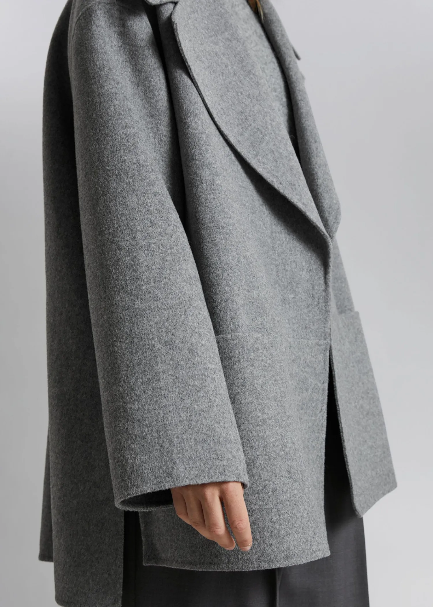 Enkeltradet Uldblandet Jakke Med En Boxy, Kappelignende Silhuet Med En Flydende Kant Og En Lidt Længere Ryg. Sikret Med En Skjult Knaplukning. Uforede Dropskuldre Duo Slidslommer Sideslidser Certificeret I Henhold Til Responsible Wool Standard (Cu888809) Længde På Jakke: 85 Cm / 33,5″ (Størrelse S)