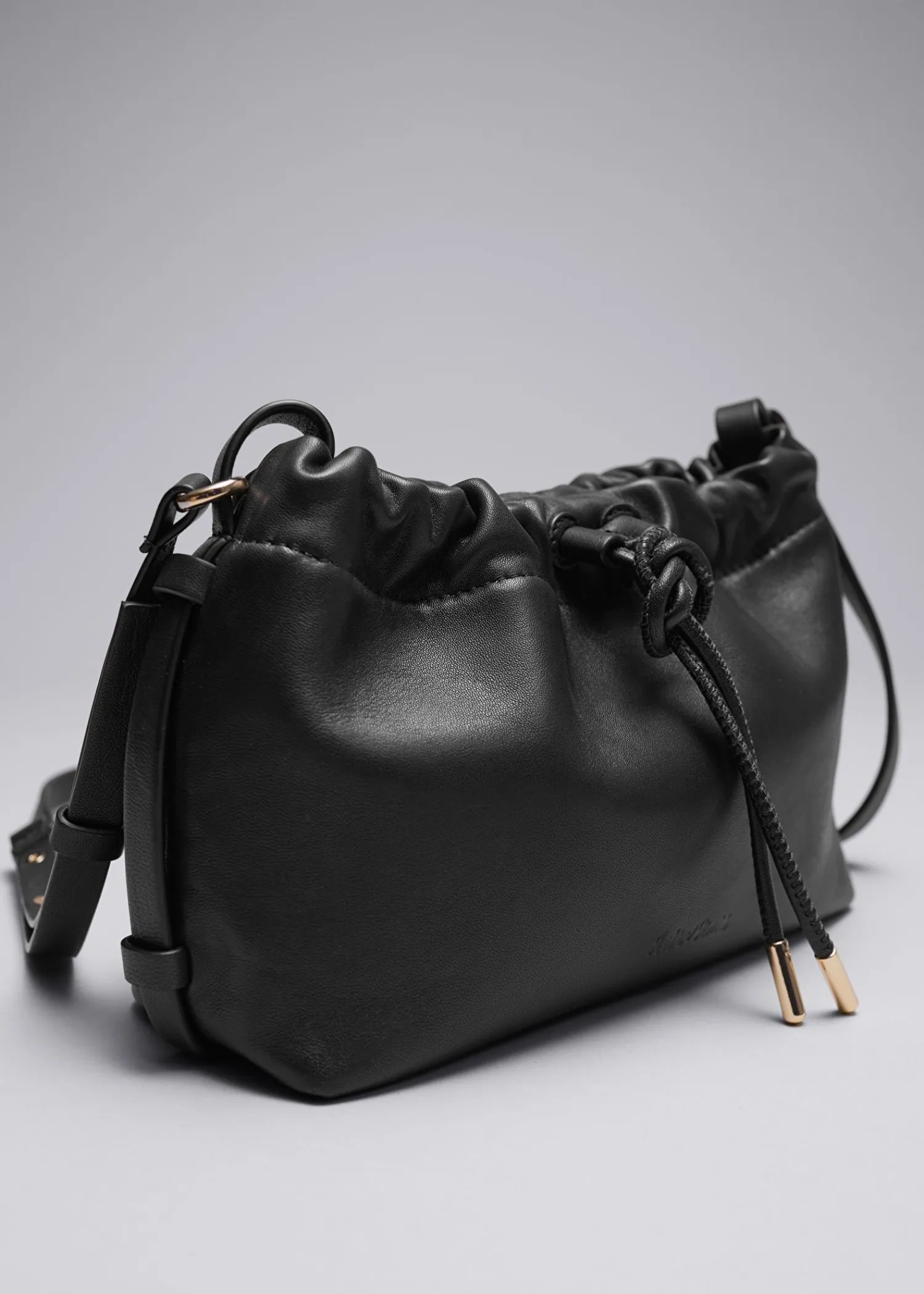 Skuldertaske Detaljeret Med Snørebånd, Der Skaber Kunstfærdige Folder. Den Er Lavet Af Smidigt Læder Og Har En Bomul…
