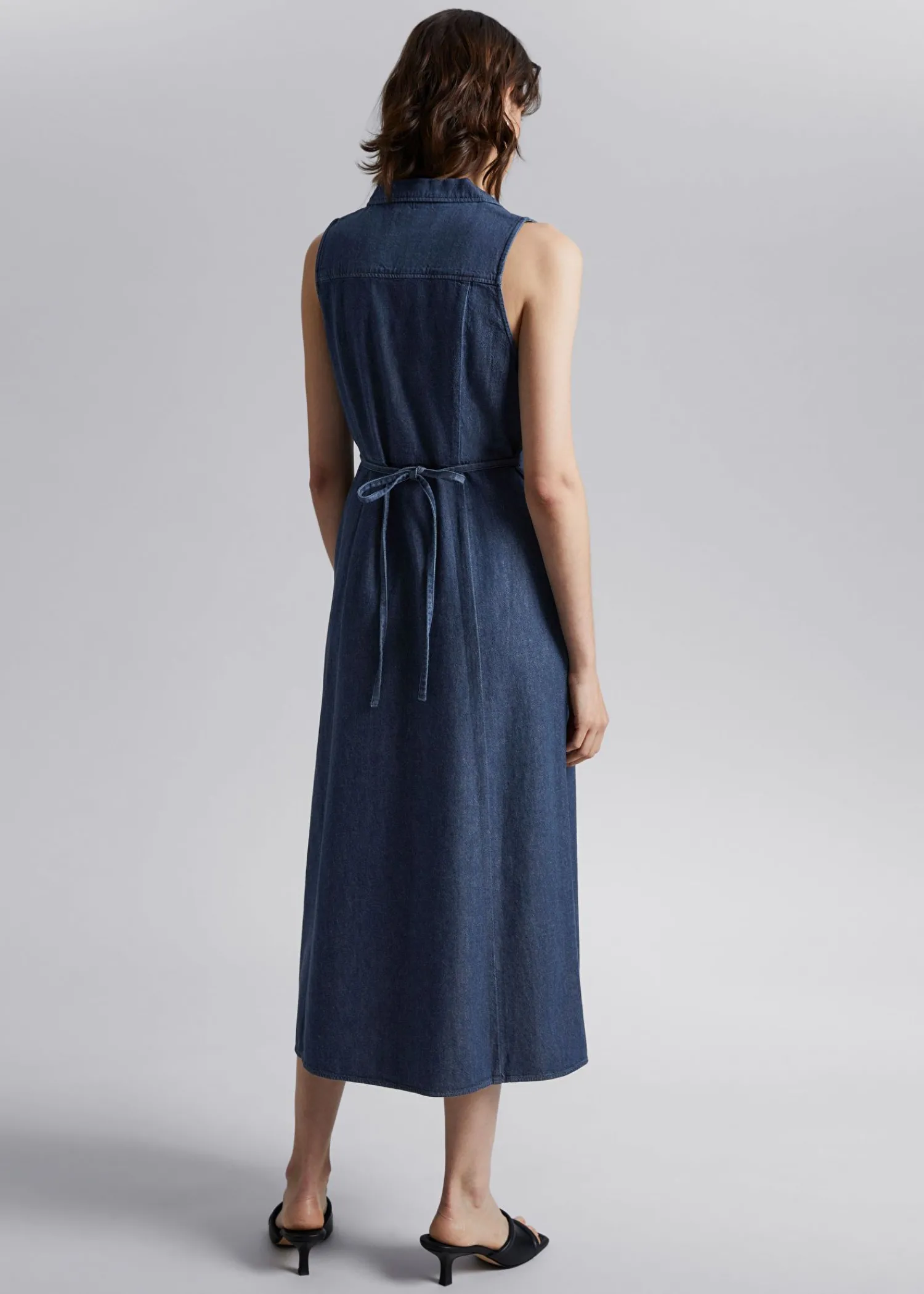 Midi-Skjortekjole Med Krave. Denne Kjole Er Designet Med En Figurnær Silhuet Og Har En Reverskrave Med Indhak Med En Dyb V-Udskæring, En Rynket Bryst Med En Knappet Stolpe Foran Og Bløde Bindebånd Bagpå. – Slim-Fit – Usynlig Lynlåslukning I Sidesømme Længde På Kjole: 128 Cm / 50,4″ (Eu 36 / Uk 8 / Us 4) Vores Designs Fra Paris Er Romantiske, Ubesværede Og Smarte.