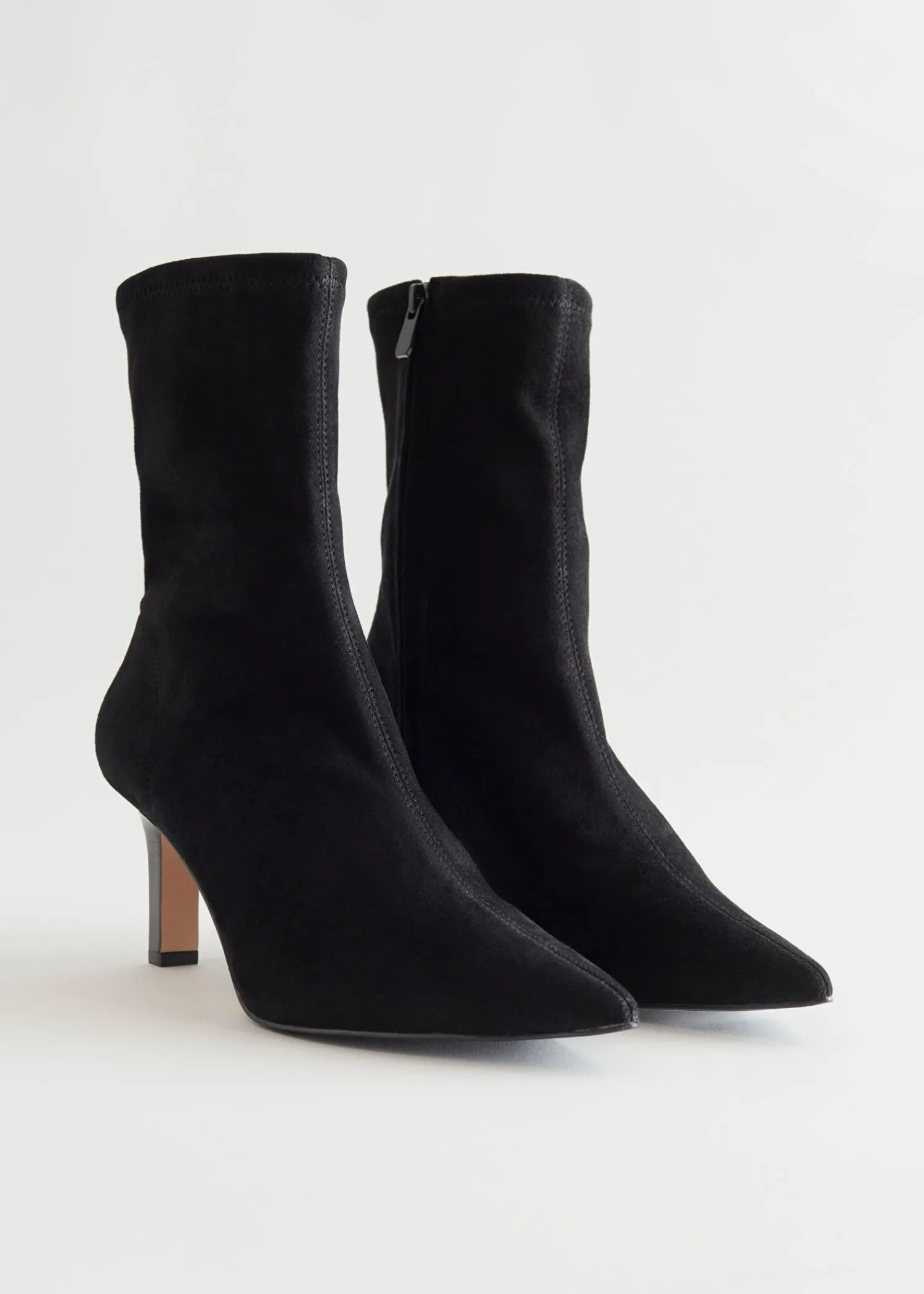 Spidse Sokkestøvler Med Topsyede Midtersømme, Firkantede Tynde Hæle Og Skjulte Lynlåse I Siden. Hælhøjde: 7 Cm / 2,8″
