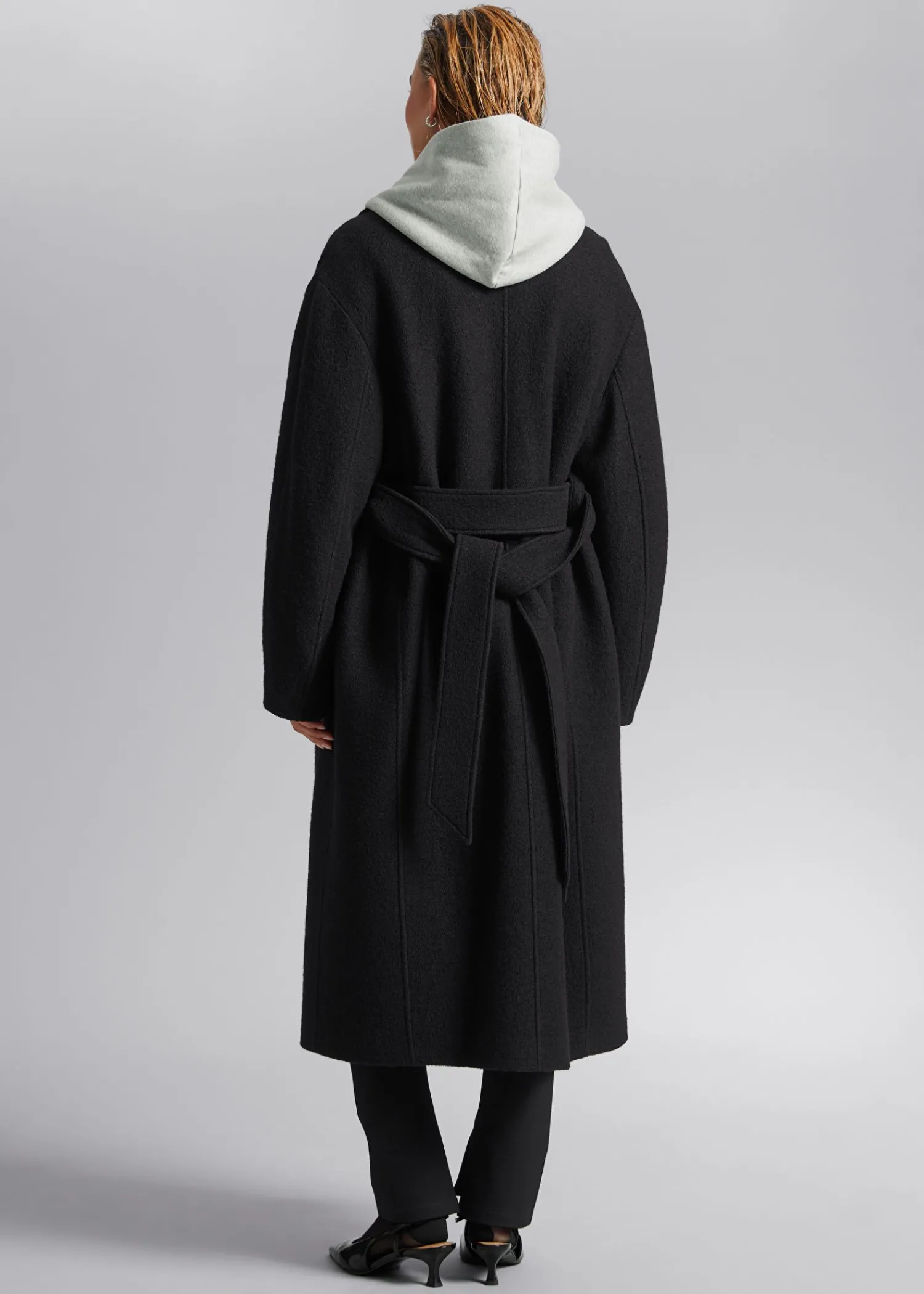 Voluminøs Uldfrakke Med Et Overlappende Revers. Afsluttet Med Et Tonalt Selvbindebælte. Duo Lommer Tre Skjulte Knaplukninger Certificeret I Henhold Til Responsible Wool Standard (Rw0063) Længde På Frakken: 116 Cm / 47,6″ (Størrelse S)