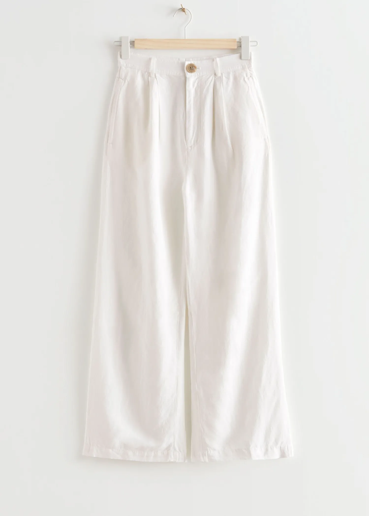 Højtaljede Bukser Lavet Af Hør Med En Bred Silhuet Og Plisserede Detaljer. – Løs Pasform – Duo Lommer – Bæltestropper Længde På Inderben: 74 Cm / 29,1″ (Eu 36 / Uk 10 / Us 4)