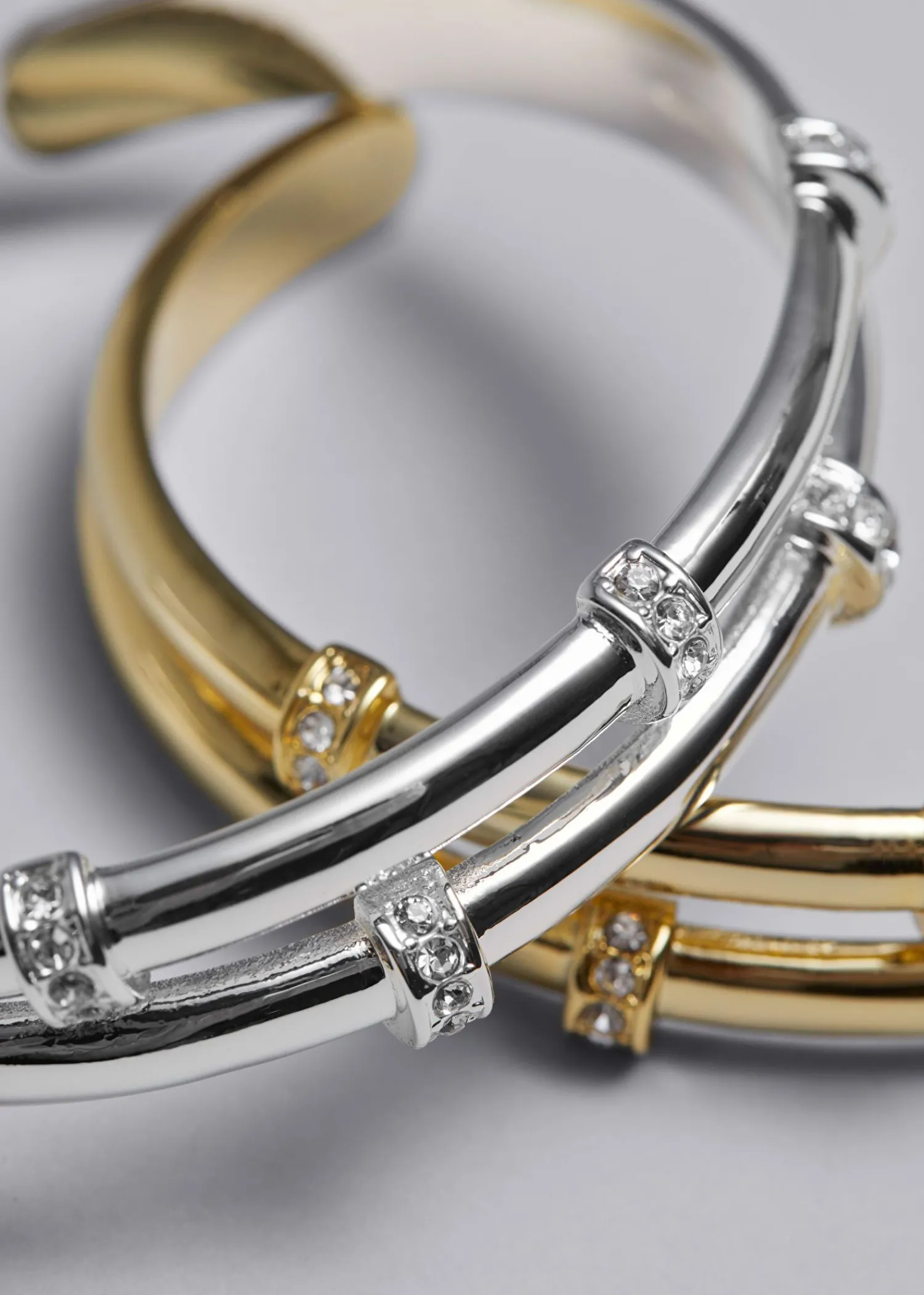 Denne Manchet Er Støbt Af Messing Og Har Flettede Bånd Detaljeret Med Sarte Klare Glassten. Nikkel Testet