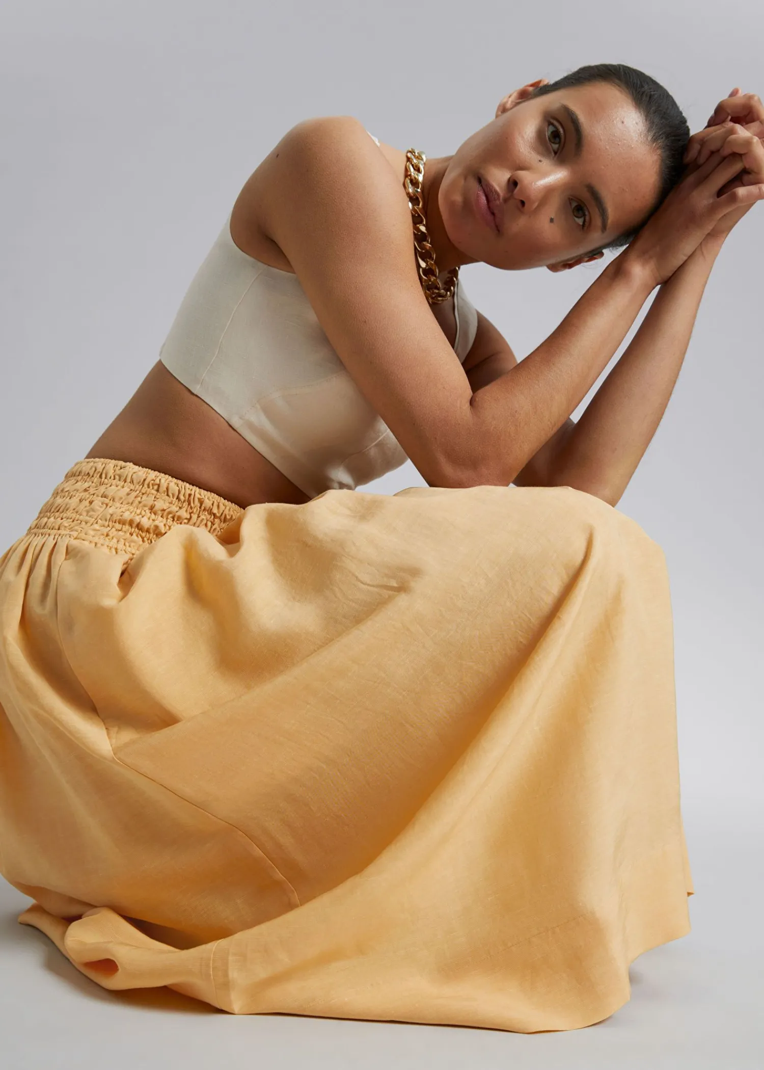 Midi-Nederdel Med Smocket Talje Lavet Af Vævet Voile. Designet Med Et A-Linjesnit Med En Rynket Linning, Der Falder Til…