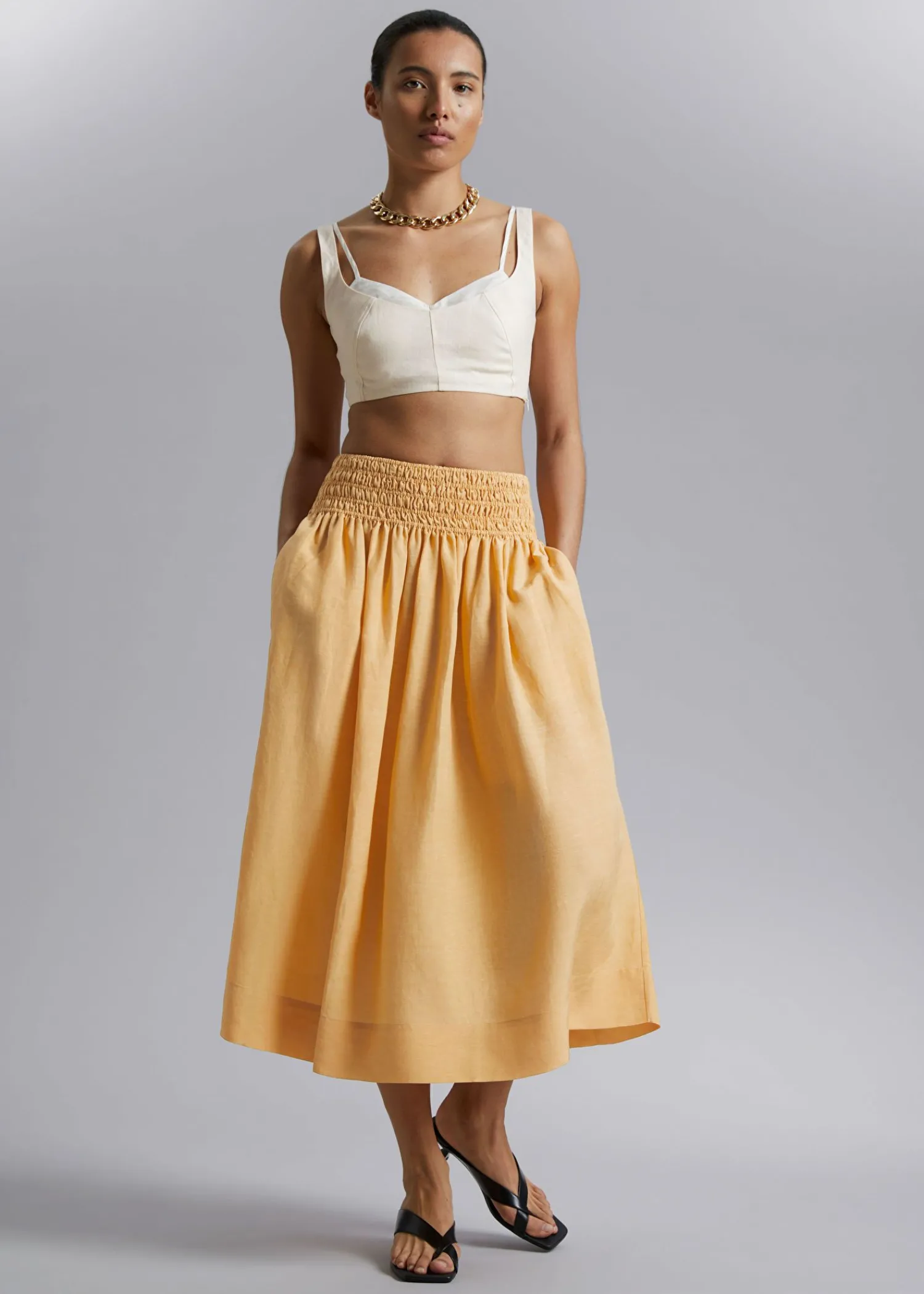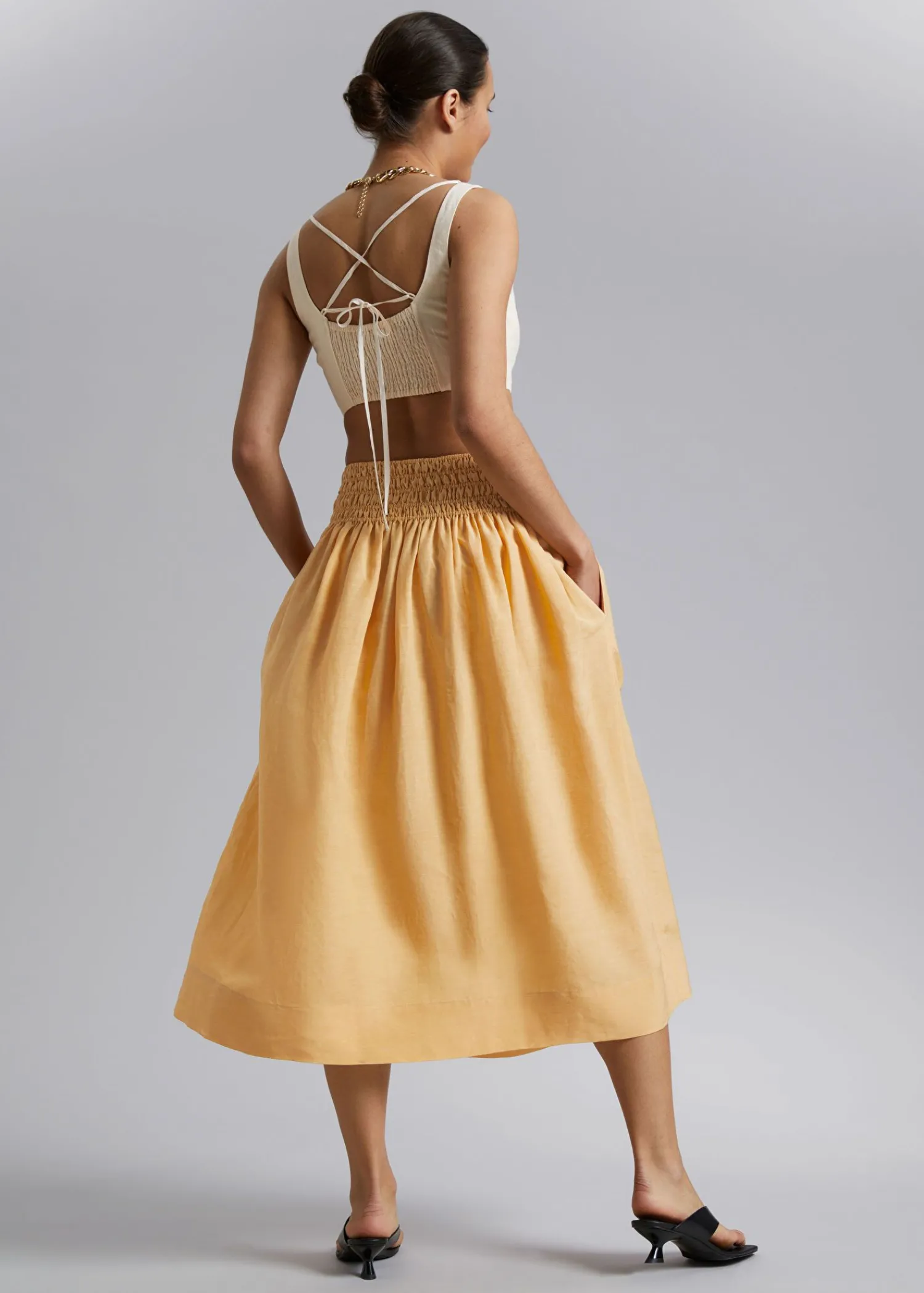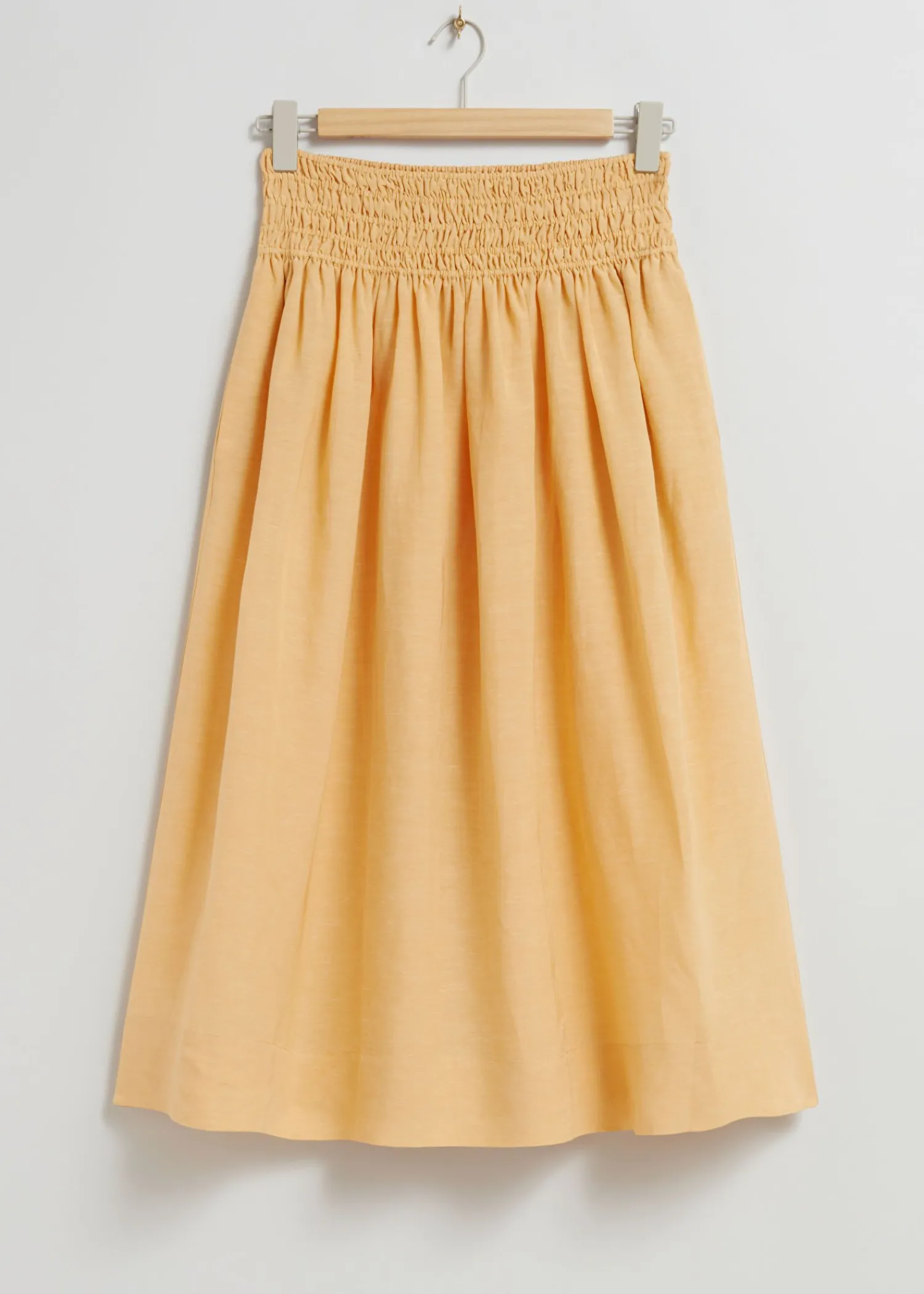 Midi-Nederdel Med Smocket Talje Lavet Af Vævet Voile. Designet Med Et A-Linjesnit Med En Rynket Linning, Der Falder Til En Afslappet Midi-Nederdel. – Normal Pasform – Indvendige Lommer – Del Af Et Matchende Sæt Længde På Nederdel: 85 Cm / 33,5″ (Eu 36 / Uk 8 / Us 4)