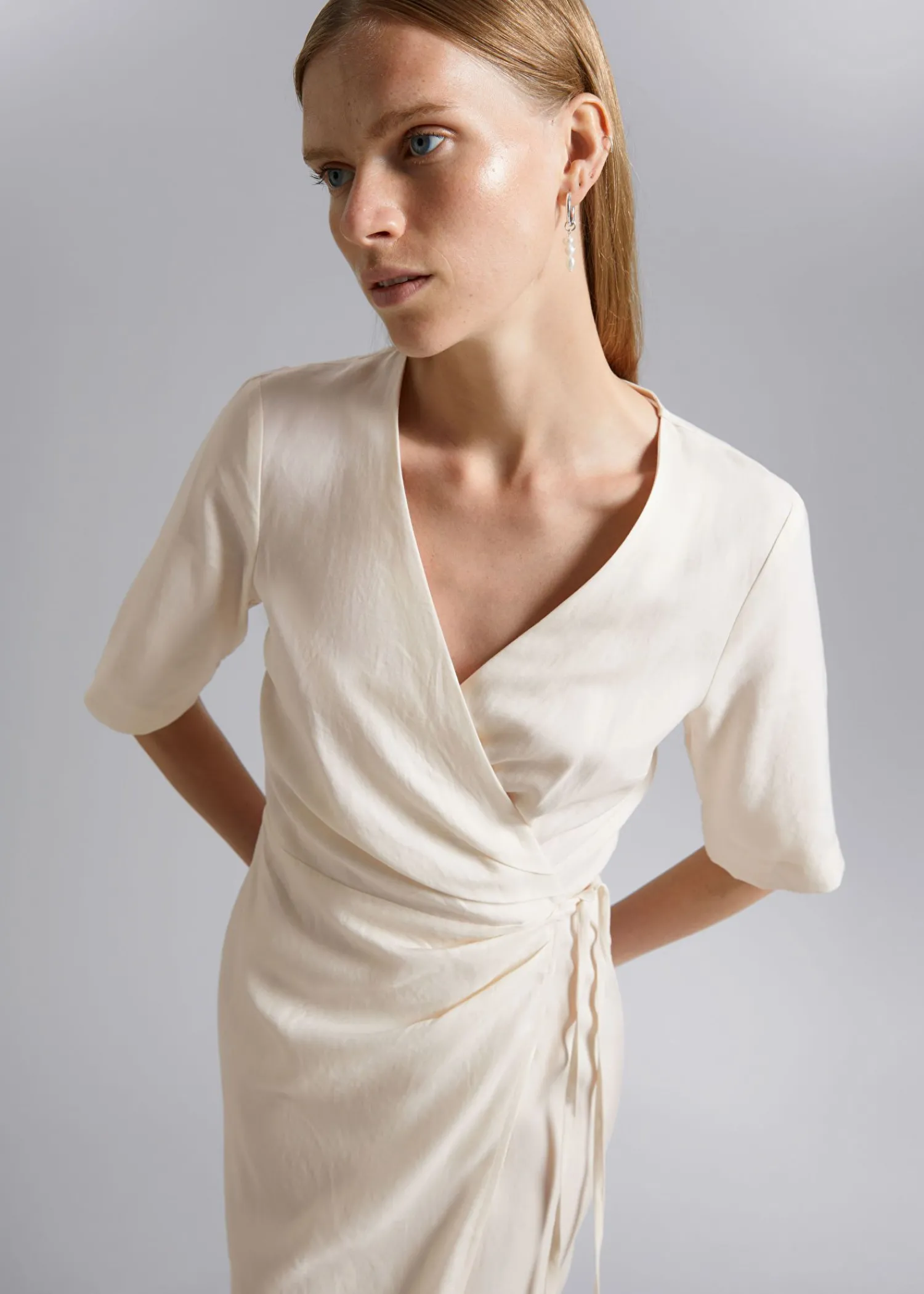 Midi Slå-Om-Kjole Designet Med Korte Ærmer, V-Udskæring Og En Slå-Om-Front, Der Er Bundet I Taljen, Fremhævet Med Plisserede Detaljer Med En Diagonal Slå-Om-Nederdel I En Midi-Længde Silhuet. – Regular Fit – Skjortekjole Længde På Kjole: 125 Cm / 49,2″ (Eu 36 / Uk 8 / Us 4)