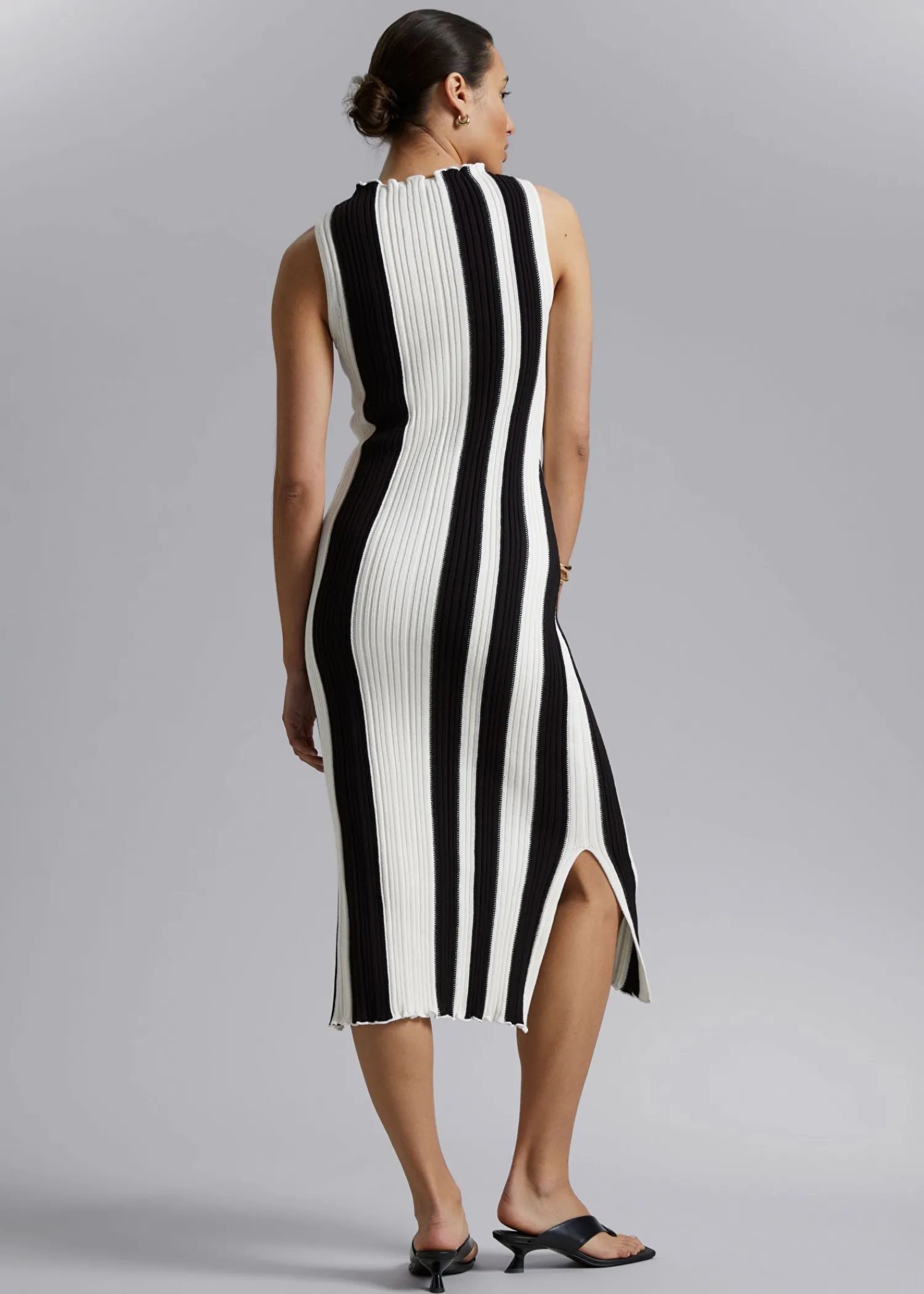 Ribbet Midikjole Lavet Af Strikket Bomuld. Designet Med En Ærmeløs, Bådskåret Halsudskæring Med En Flæsekant I Lige, Figursyet Silhuet. – Slim Pasform, Lige – Allover Ribbet Finish Længde På Kjolen: 121 Cm / 47,6″ (Størrelse S) Luksuriøs Og Tilbagelænet Opsummerer Vores Looks Fra Los Angeles.