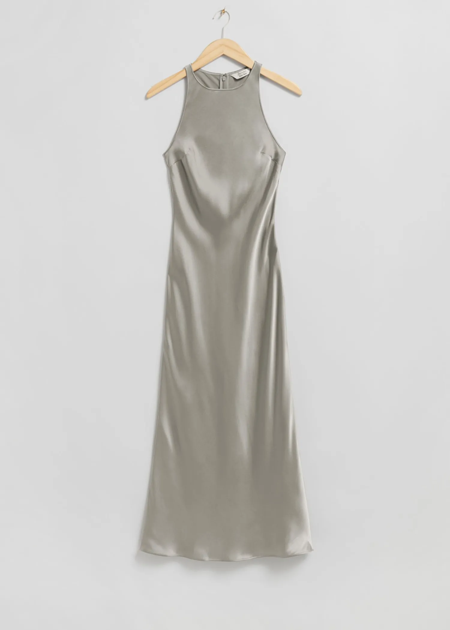 Midikjole I Satin Uden Ærmer Afsluttet Med Brystpile. Slim Fit Skjult Lynlåslukning Midt Bagpå. Kjolens Længde: 123 Cm / 48,4″ (Eu 36 / Uk 8 / Us 4)