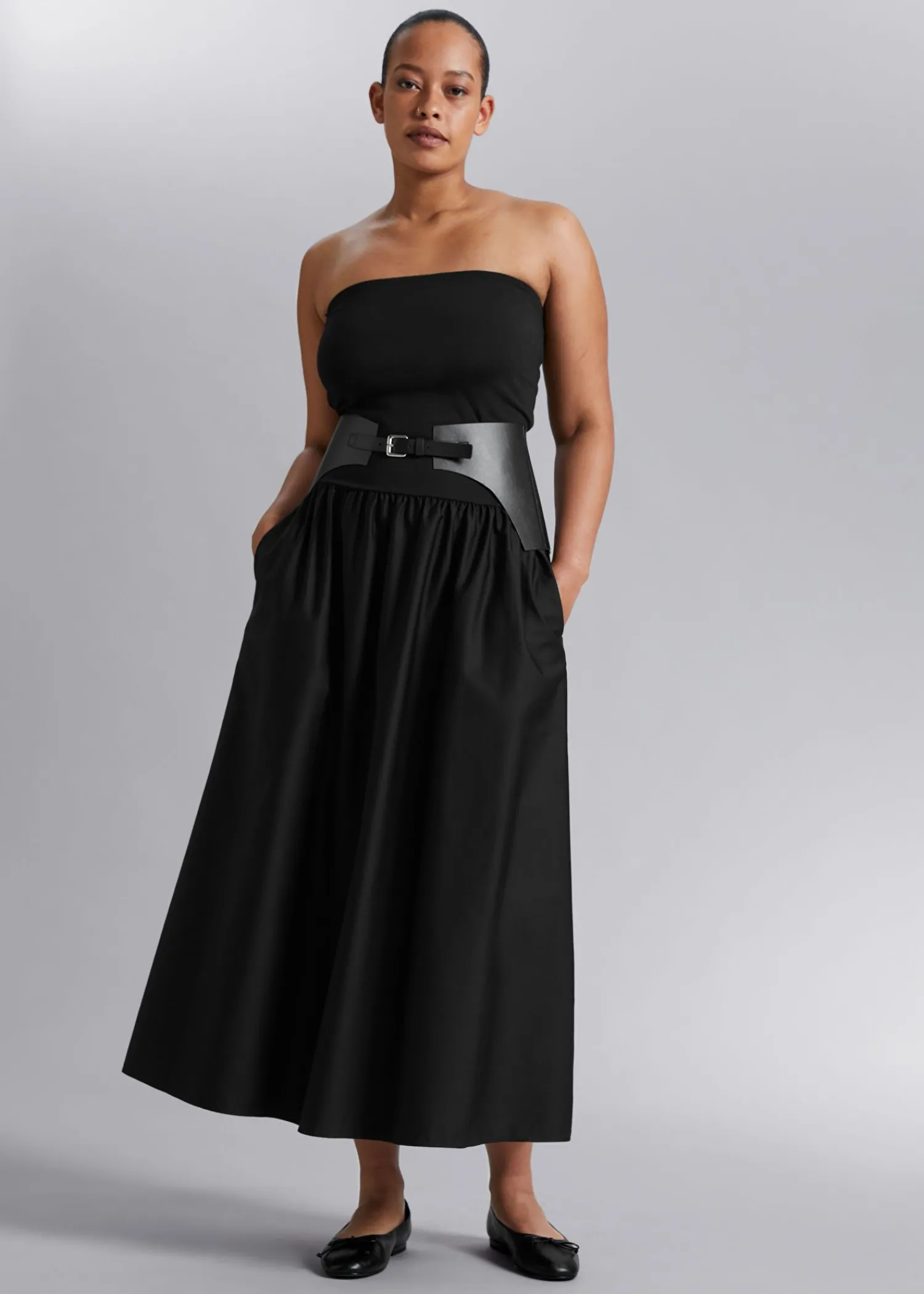 Tætsiddende Tube Midi-Kjole Med En Flanket Nederdel. Afsluttet Med En Elastisk, Rynket Talje Og Sidelommer. Kjolens Længde: 121 Cm / 47,6″ (Størrelse S)