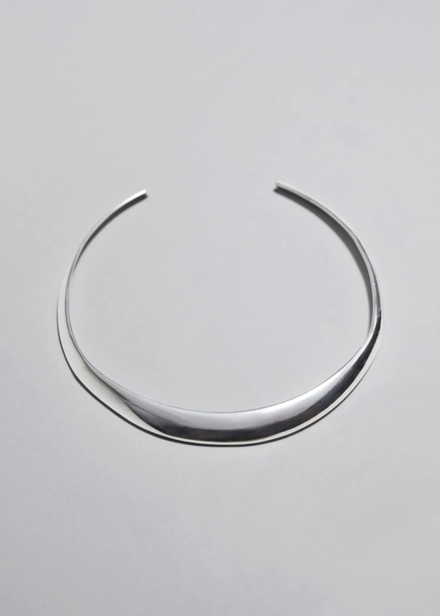 Designet Til At Hvile Mod Kravebenene, Denne Skulpturelle Halskæde Er Kunstfærdigt Designet I En Minimalistisk Afrundet Form Med En Åben Ryg. Udført I Messing. Nikkel Testet