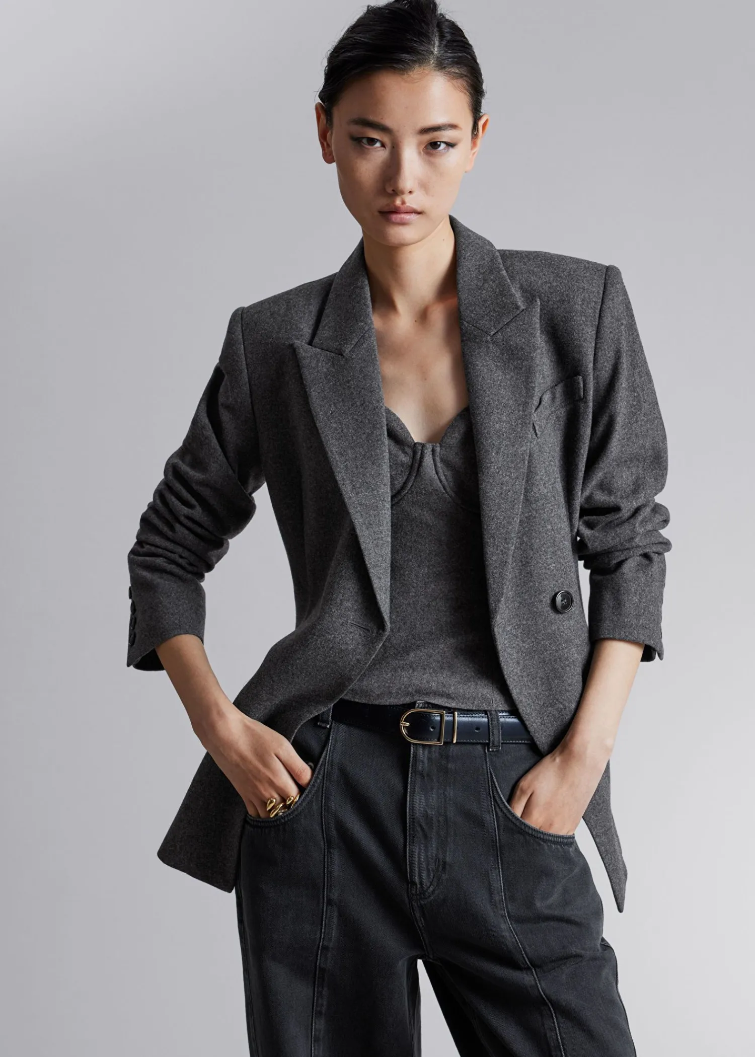 Skræddersyet Uldblazer Med Et Overlappende, Asymmetrisk Revers Med En Enkelt Knaplukning. Bøjleløkke Duo Paspolerede …