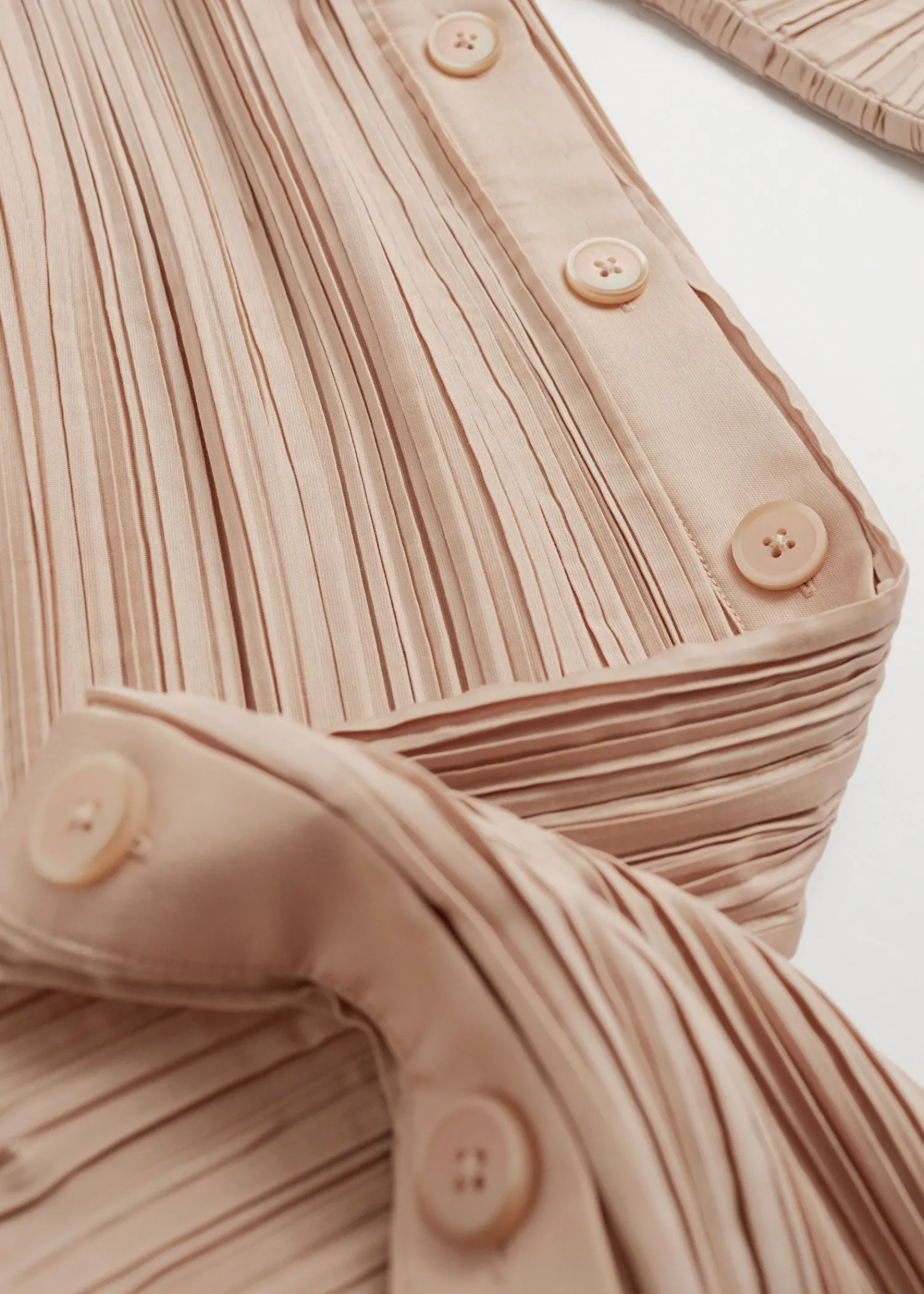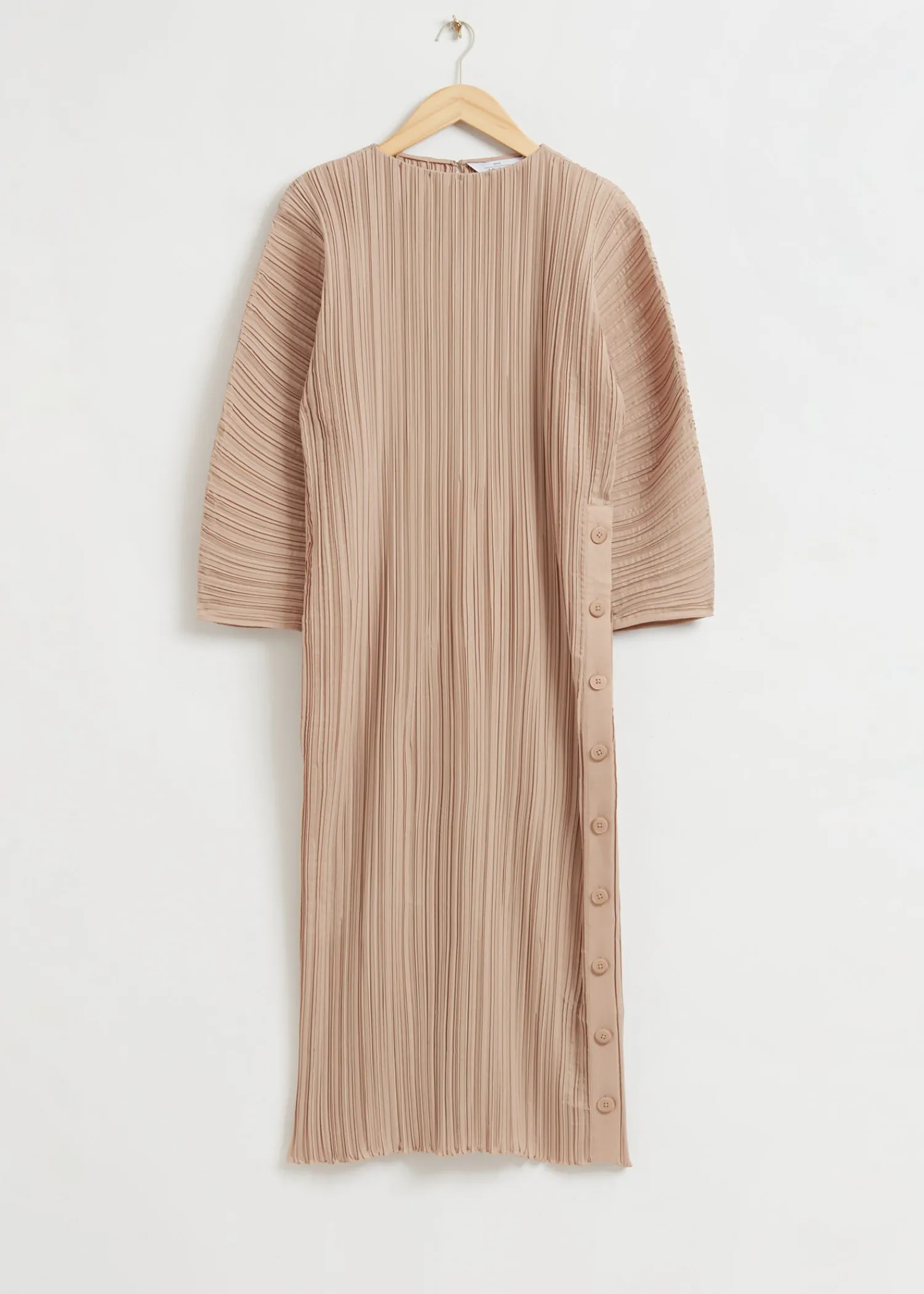 Skulpturel Kjole I Plissé-Stil Lavet Af Krøllet Plissé-Stof Skåret I En Struktureret Silhuet Med Voluminøse Afrundede Trekvartlange Ærmer I En Lige Krop, Sporet Med En Knappet Stolpesøm I Siden. Afsluttet Med Taping Langs Indersiden Af Halsudskæringen Og Laserskårne Ærmer Og Kant. Kjolens Længde: 121 Cm / 47,6″ (Eu 36 / Uk 8 / Us 4)