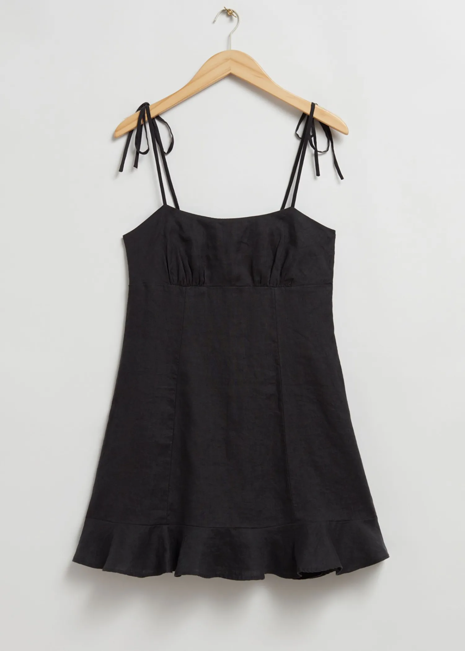 Printet Minikjole Afsluttet Med Selvbindende Spaghettistropper Og Et Smocket Bagpanel. Kjolens Længde: 63 Cm / 24,8″ (E…