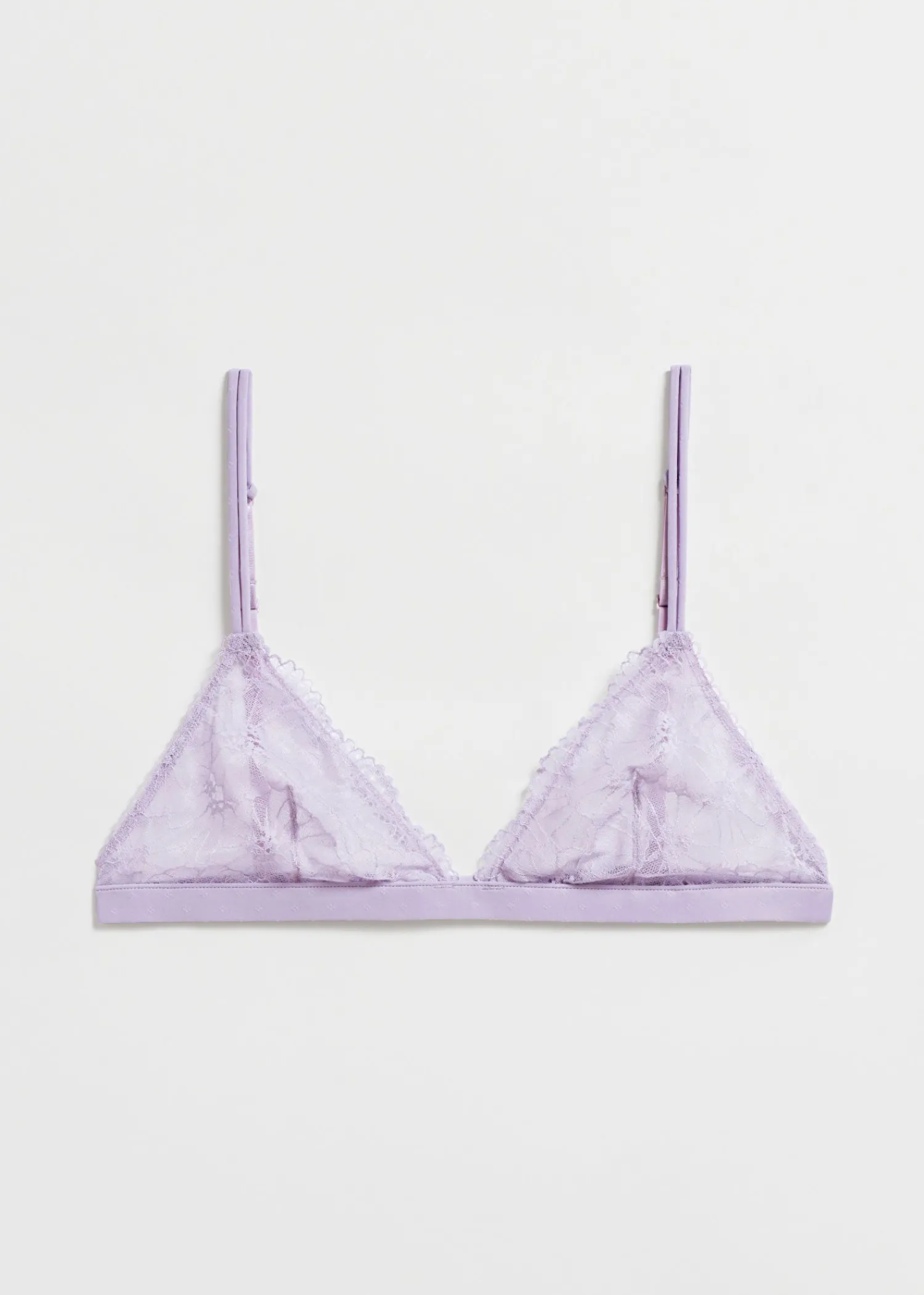 Trekantet Blød Bh Skåret Af Blød, Fancy Elastisk Blomstret Blonde Prydet Med Flossede Blonder. Afsluttet Med Justerbare Skulderstropper Og Kroglukning Bagpå.