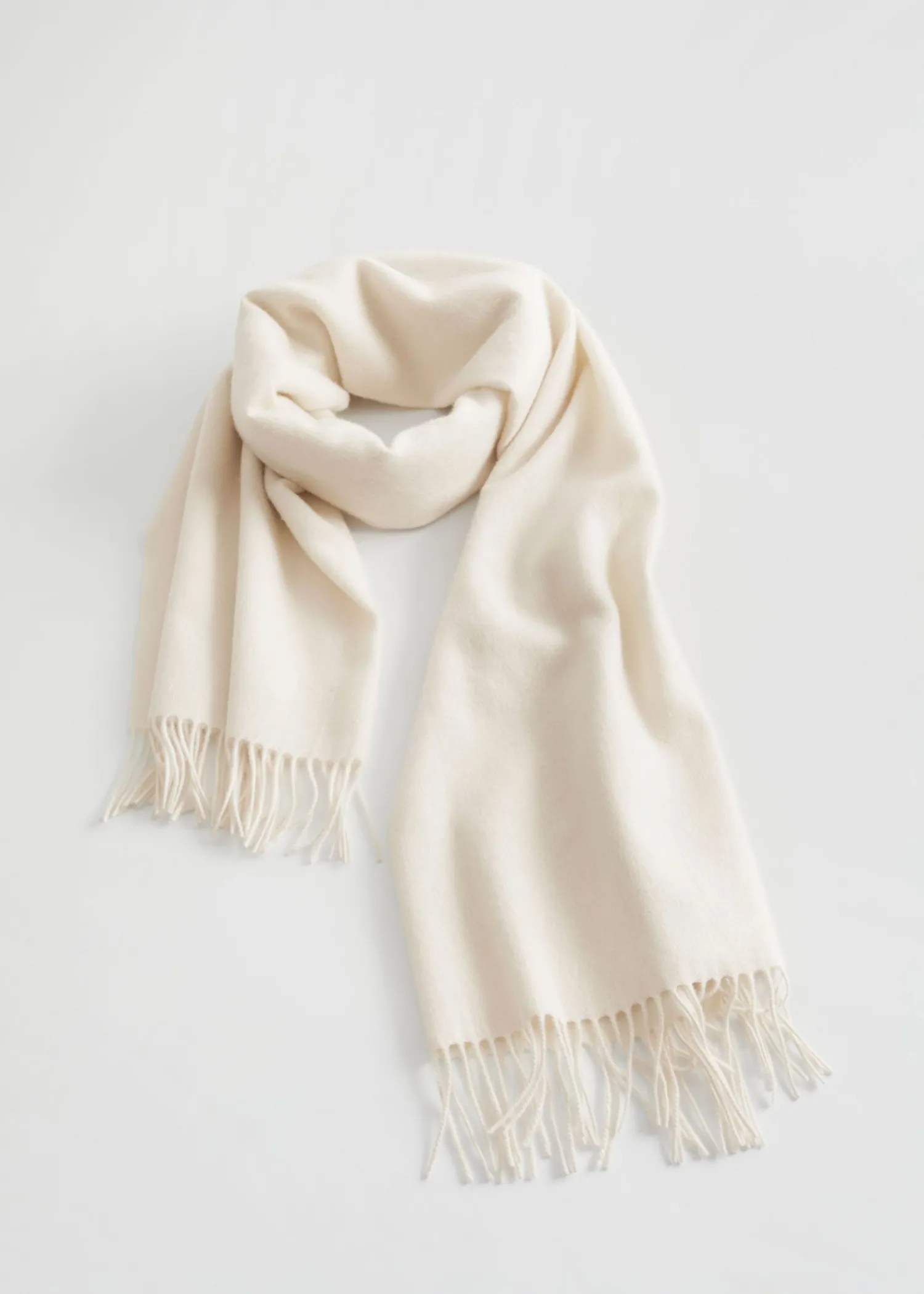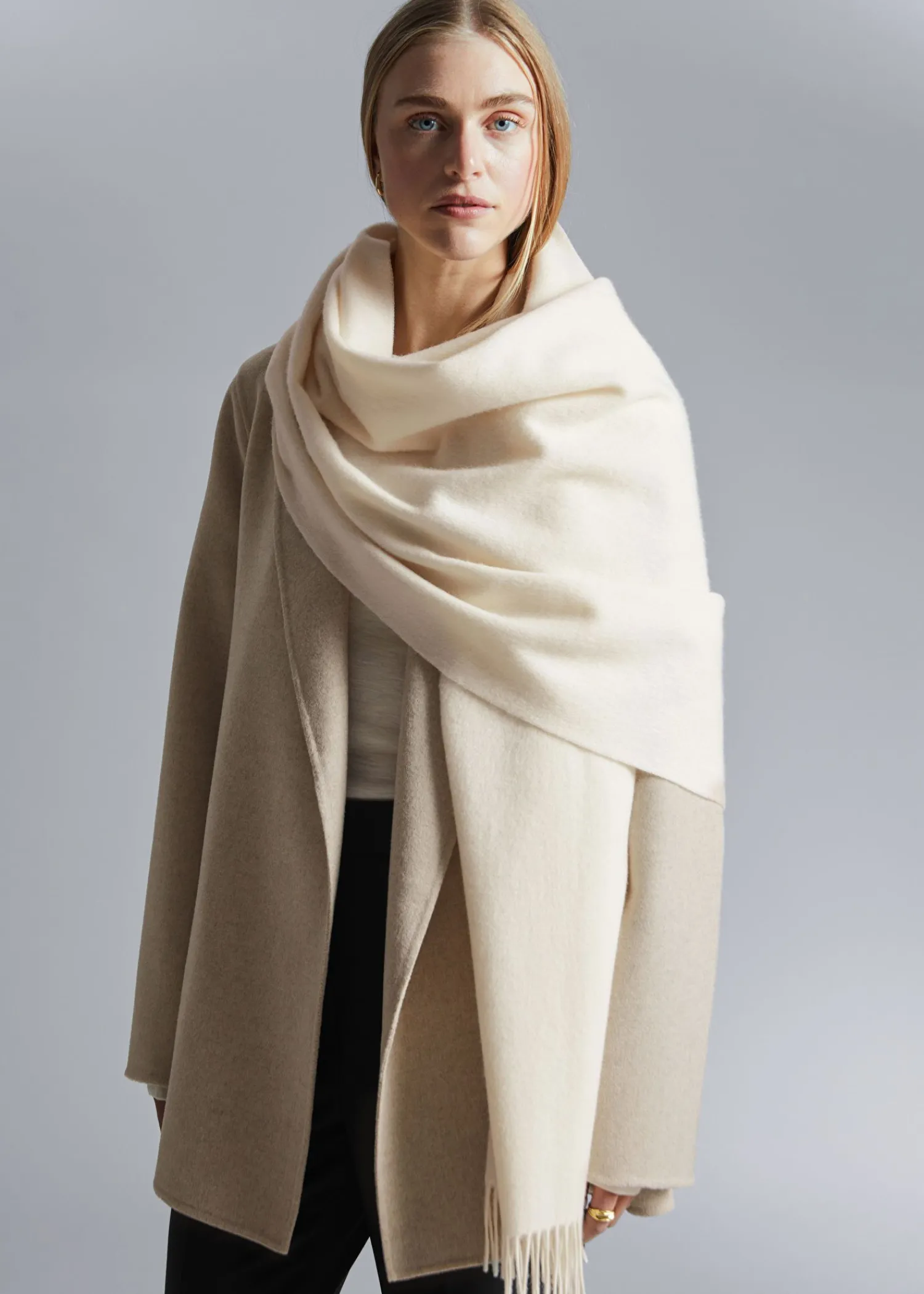 Stort Uldtæppe Tørklæde Med Frynser. Mål På Tørklæde: 200 Cm X 60 Cm 78″ X 23,6″ 78,7″ X 23,6″ Certificeret I Henhold Til Responsible Wool Standard (Cu847862)