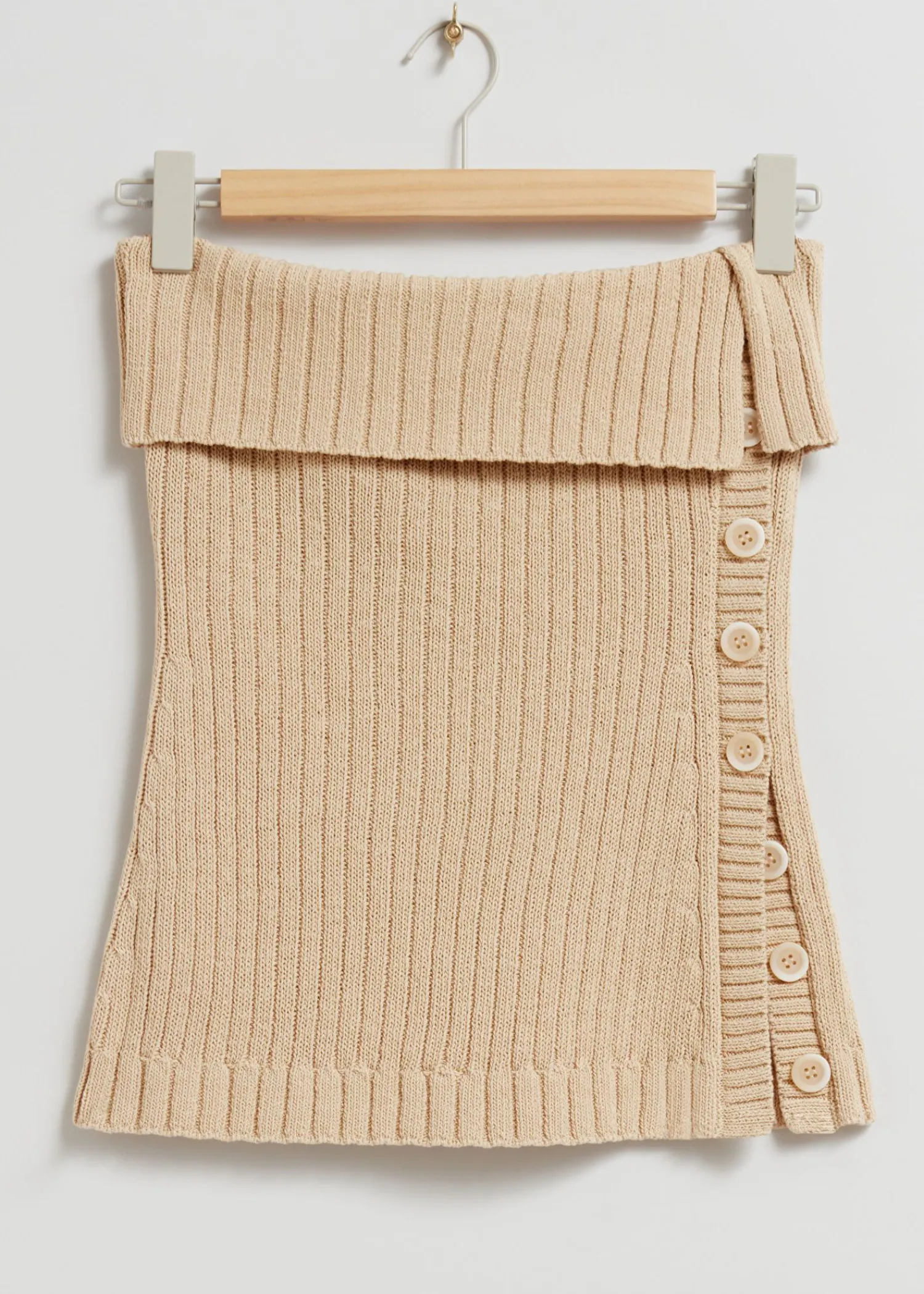 Rørtop Med Knapper Lavet Af Strikket Bomuld. Designet Med En Bandeau-Udskæring Med Et Foldet Panel. Kroppen Er Sporet …