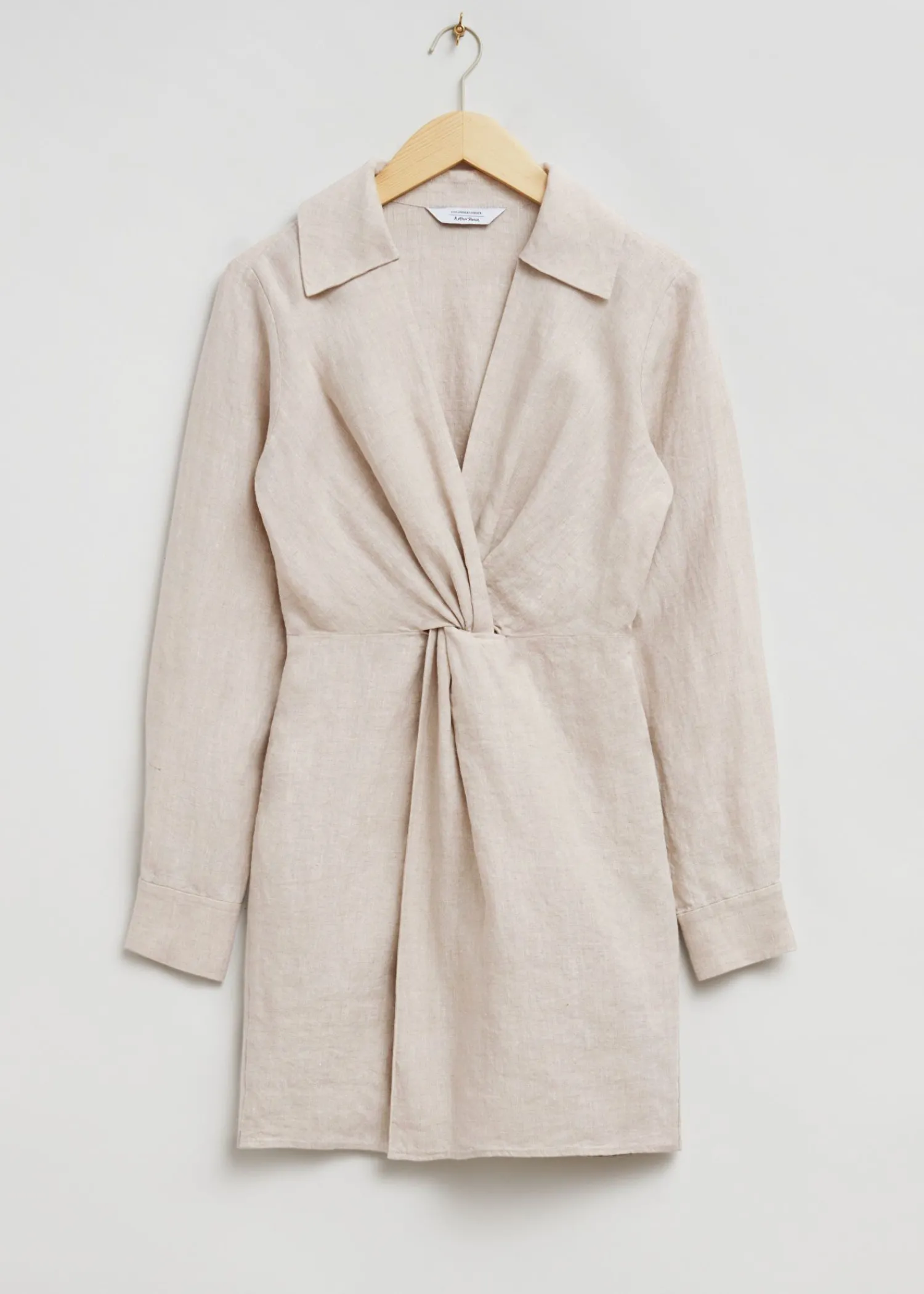 Skjortekjole I Hør Foran Med Knude Lavet Af Hør Med Bomuldsfor. Skåret I En Afslappet, Mini-Stil, Er Denne Kjole Fremhævet Med En Knudedetalje Foran, Der Skaber En Elegant Snoet Effekt. Den Har En Dybtgående V-Udskæring Og Bred Krave, Afsluttet Med En Usynlig Lynlåslukning I Siden Og Manchetter Med Knapper. Kjolens Længde: 84 Cm / 33″ (Eu 36 / Uk 8 / Us 4)