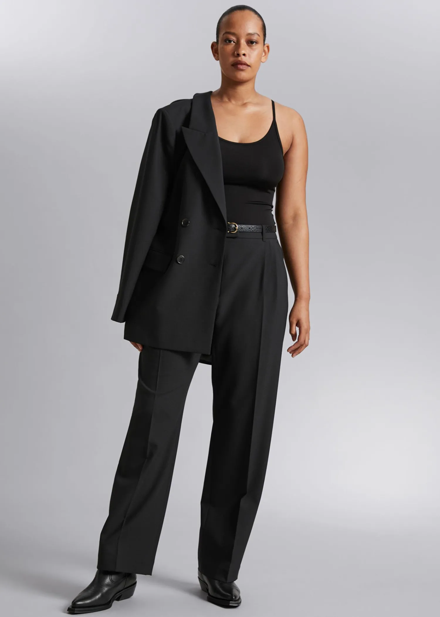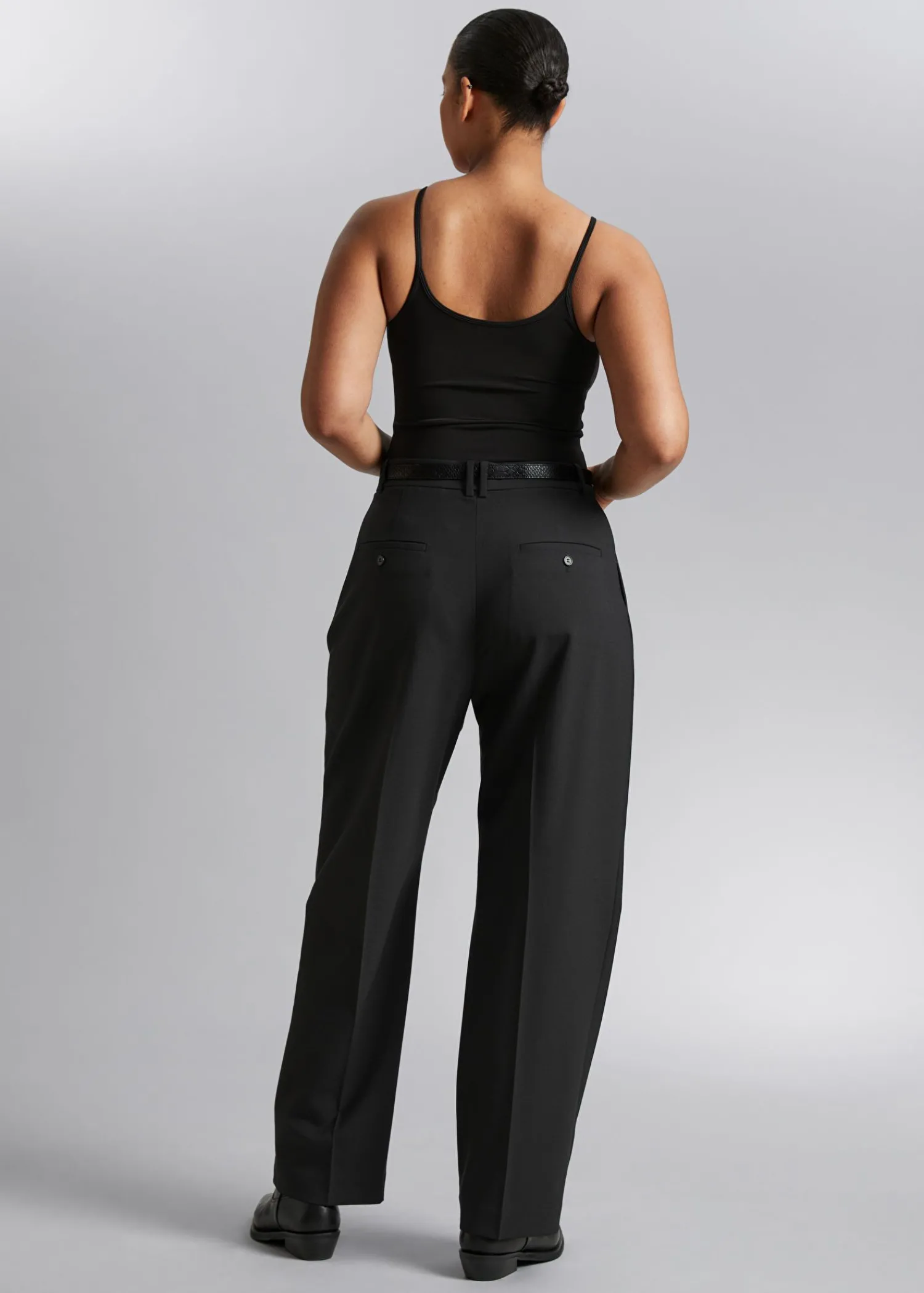 Afslappede Skræddersyede Bukser Med Høj Talje, Lige Ben Og Trykfolder. Duo Stiklommer Duo Paspolerede Lommer Bagpå Bæltestropper Certificeret I Henhold Til Responsible Wool Standard (Cu888809) Indersømslængde: 78 Cm / 30,7″ ((Eu 36 / Uk 8 / Us 4)