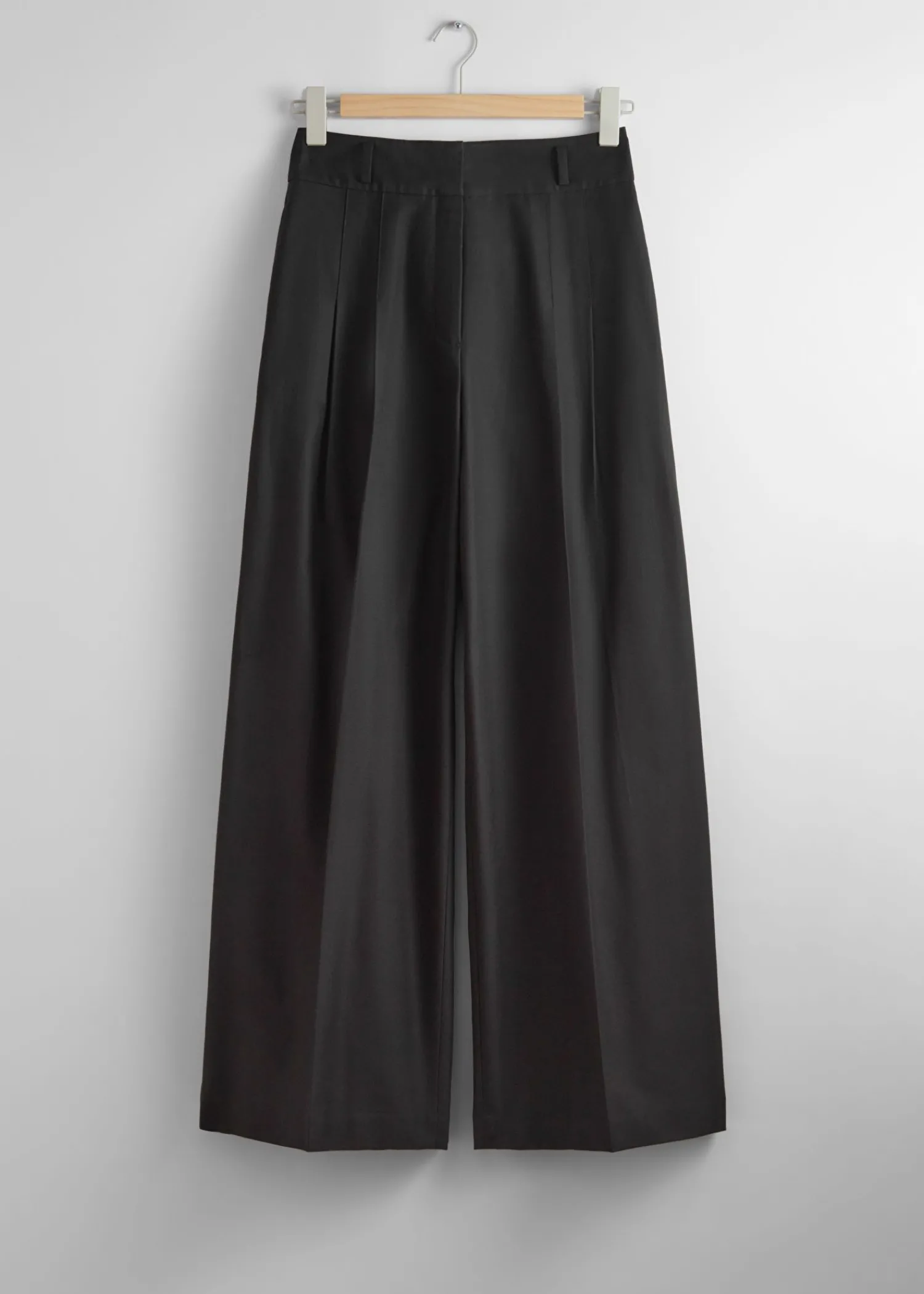 Skræddersyede Højtaljede Bukser Med Bred Silhuet Og Trykfolder. Bæltestropper Lynlåsgylp Med Krog- Og Stanglukning Duo Sidesømmelommer Duo Paspolerede Lommer Bagpå 53% Rws Uld Certificeret Af Control Union 893290 Længde På Inderside: 78,5 Cm / 30,9″ (Eu 36 / Uk 8 / Us 4)