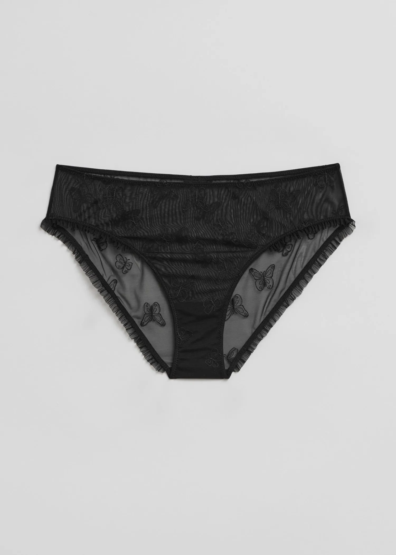 Gennemsigtige Trusser Med Broderede Dekorative Sommerfugle. Accentueret Med Rå Kantfræsning.