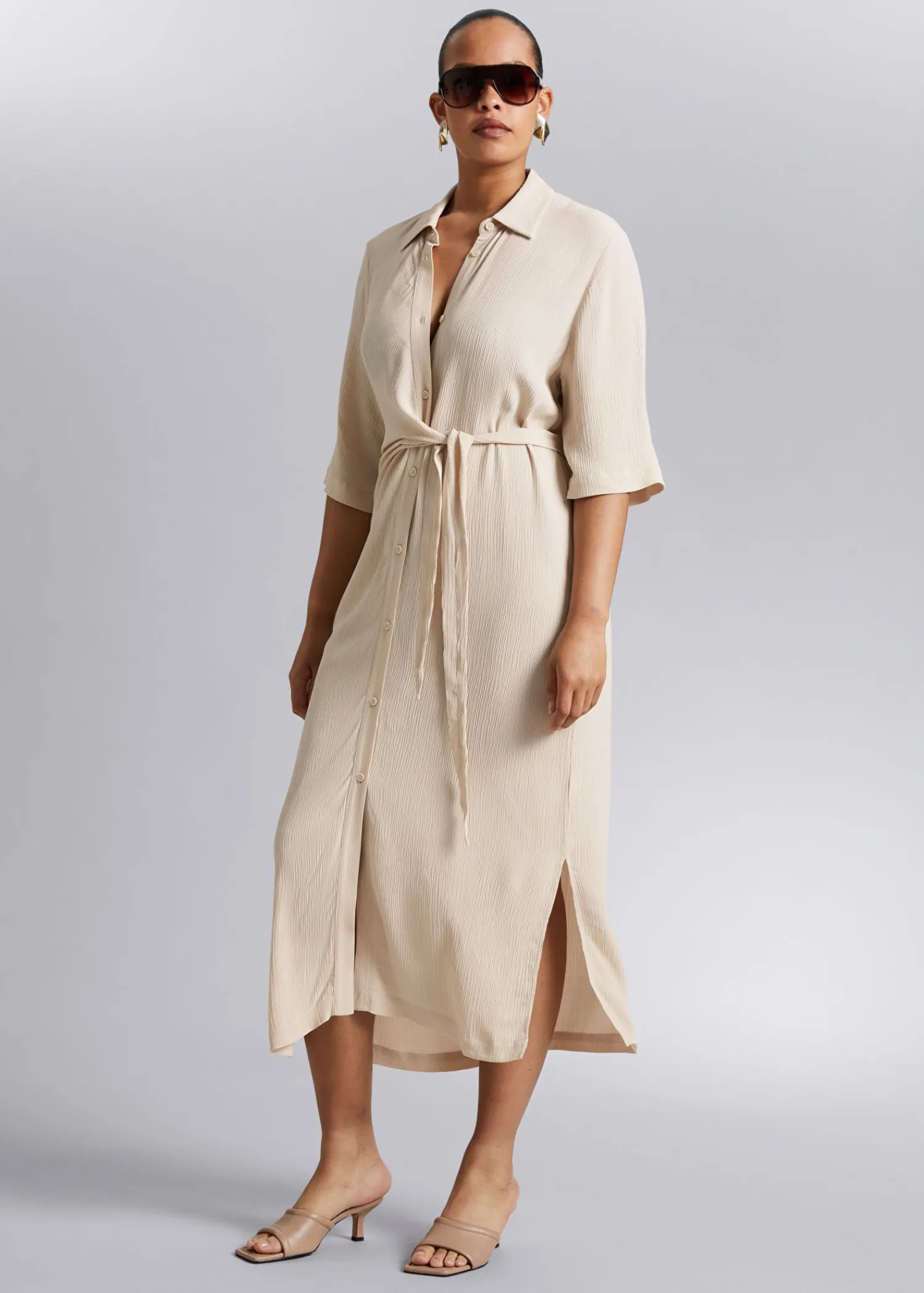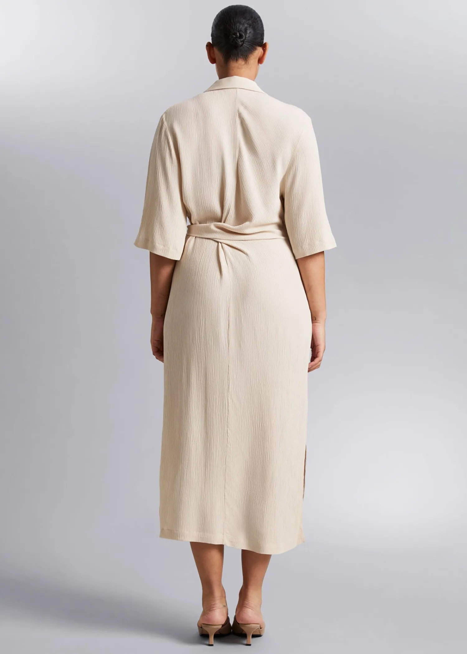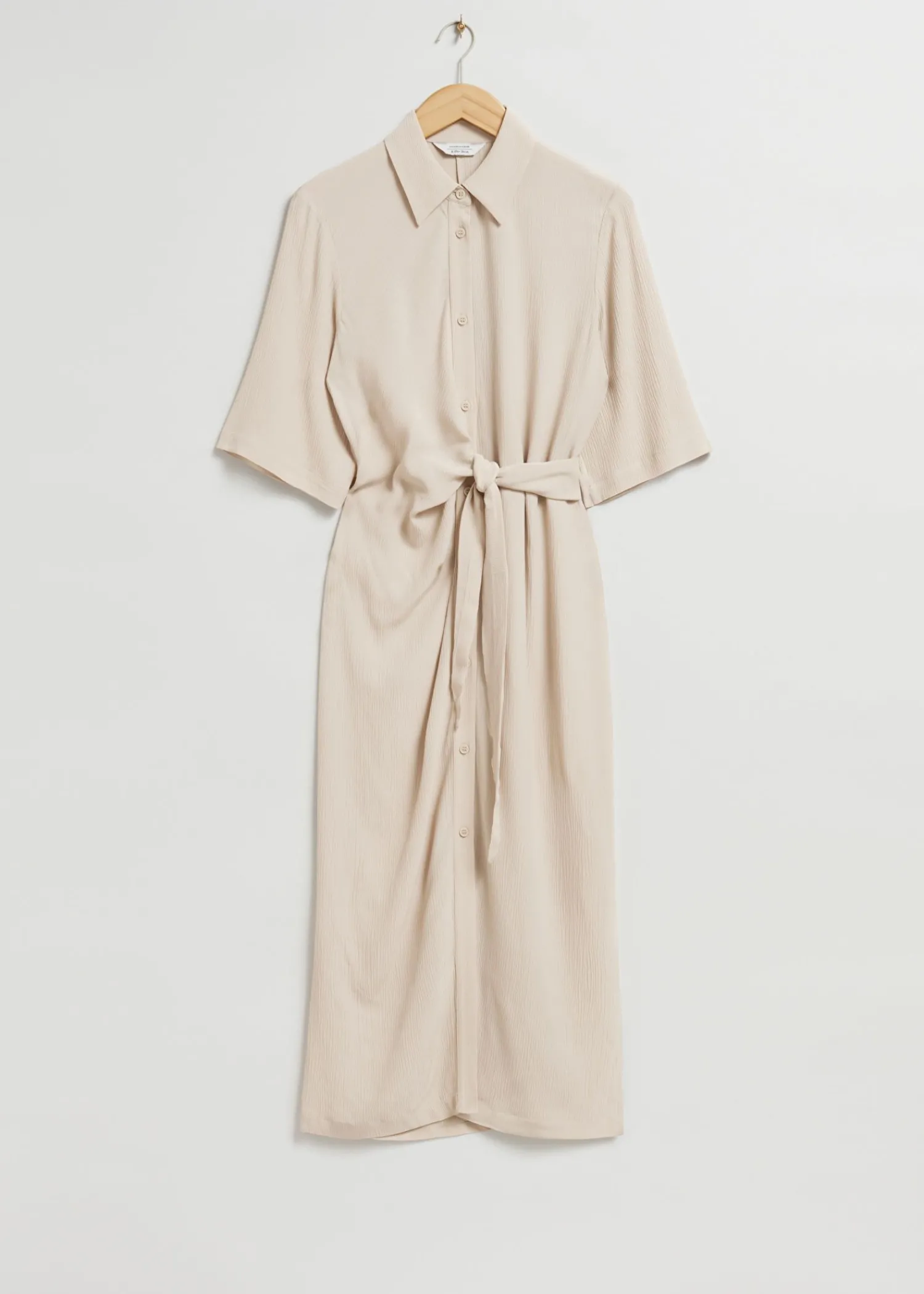 Skjortekjole Med Knudedetalje Lavet Af Silkelignende Vævet Stof. Designet Med Dobbelt-Lags Omslag, Bundet I Siden Af Taljen Med En Knappet Stolpe Foran Og Korte Trekvartlange Ærmer. – Normal Pasform – Lige – Centerslids Længde På Kjolen: 123 Cm / 48,4″ (Eu 36 / Uk 8 / Us 4)