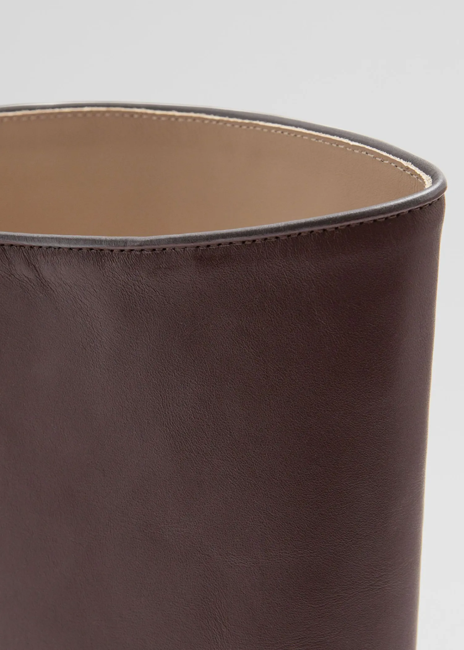 Tidløse Ridestøvler I Læder I En Poleret Glat Finish, Med En Afrundet Tå, Lavt Stablede Hæle Og Et Klassisk Buet Skaft. Højde: 41 Cm / 16,1″ Omkreds: 39 Cm / 15,4