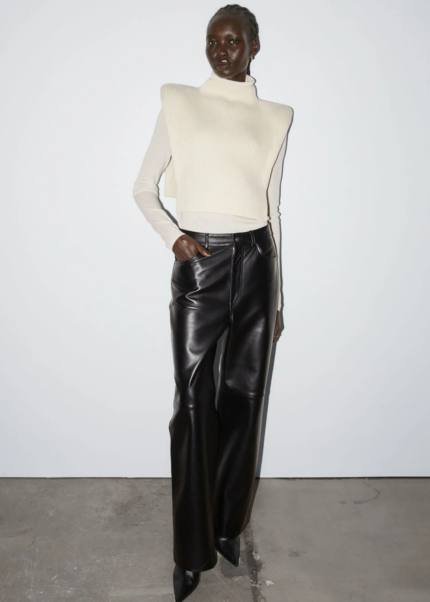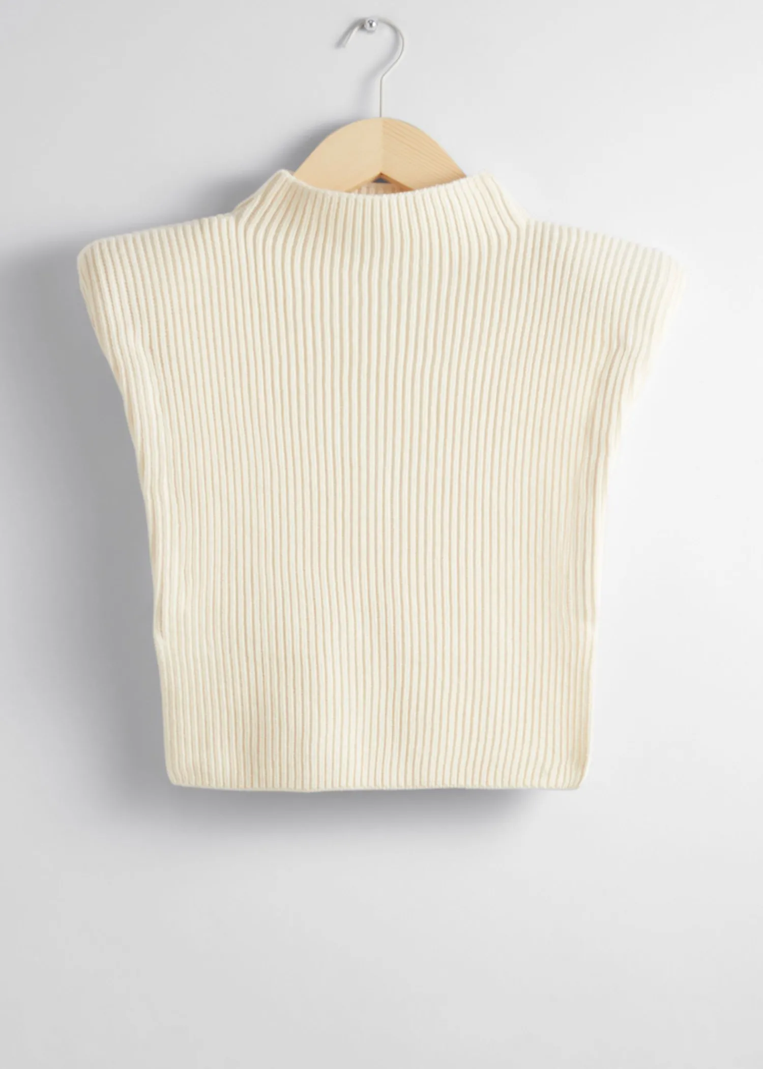 Mock-Neck Uldstrikket Hagesmæk Med Ribbet Finish, Forstærket Af Let Polstrede Skuldre. Skulderpuder 100% Rws Wool Certificeret Af Control Union 893290 Længde På Hagesmæk: 40,5 Cm / 15,9″