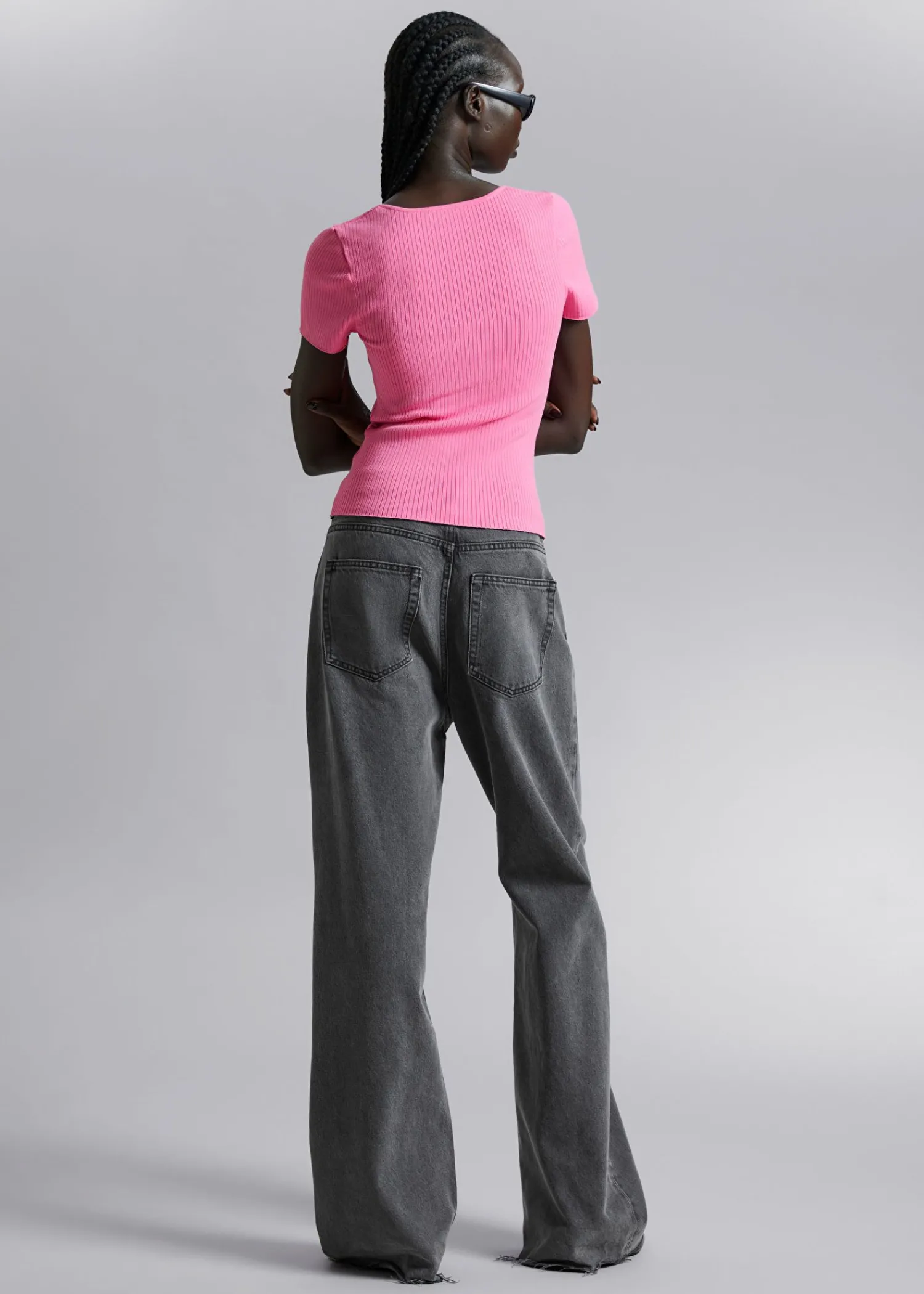 Strikket Sweetheart-Neck Top Lavet Af En Strikket Blanding Af Materialer. Med En Allover Rib Finish, En Sweetheart Halsudskæring Afsluttet Med En Rørformet Kant, Bustier Detalje Og Korte Raglanærmer. Længde På Toppen: 54 Cm / 21,3″ (Eu 36 / Uk 8 / Us 4)