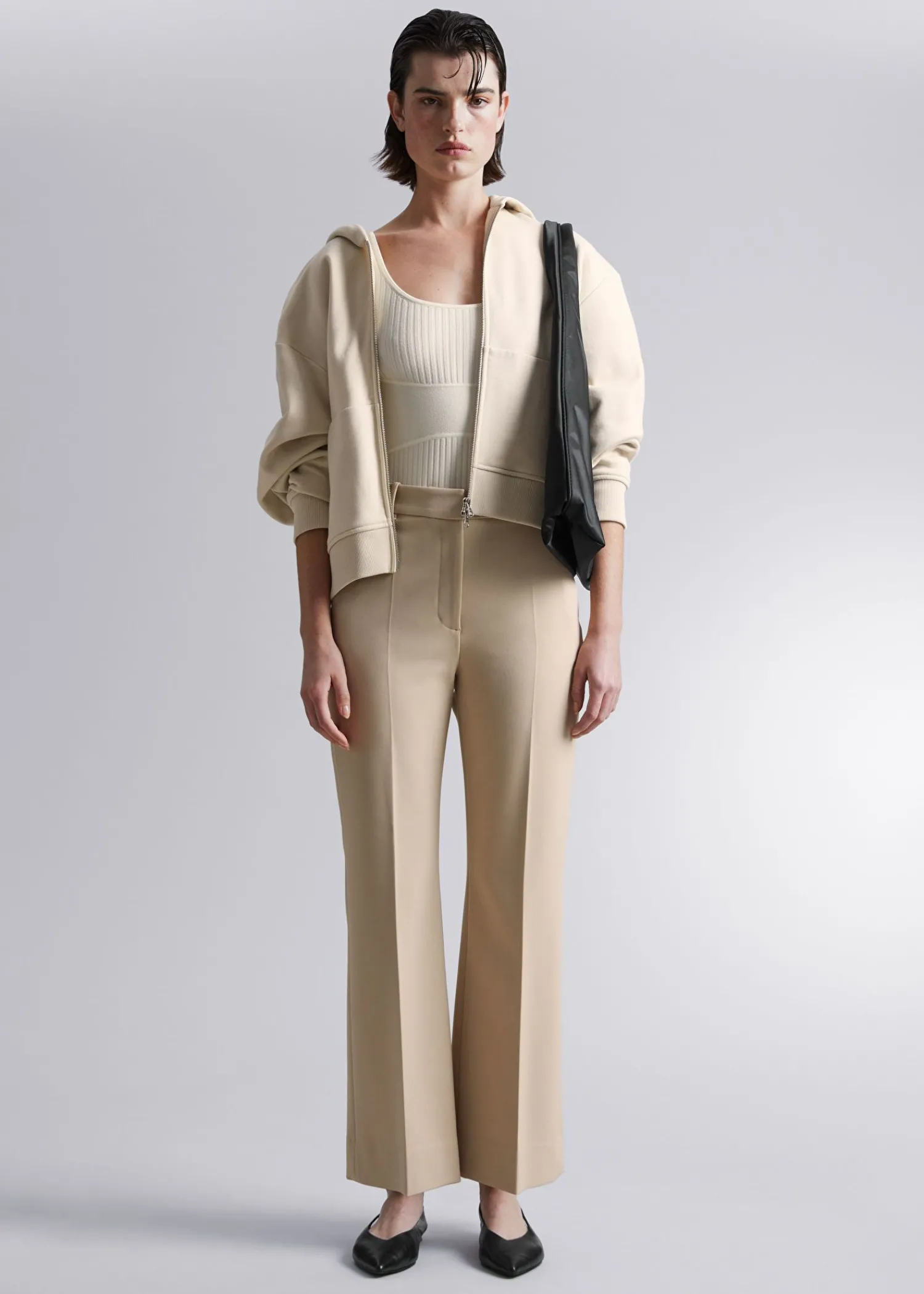 Højtaljede Bukser Med En Kick-Flare, Vinkel-Længde Silhuet. Afsluttet Med Pressefolder. Lynlåsgylp Med Knaplukning Sk…